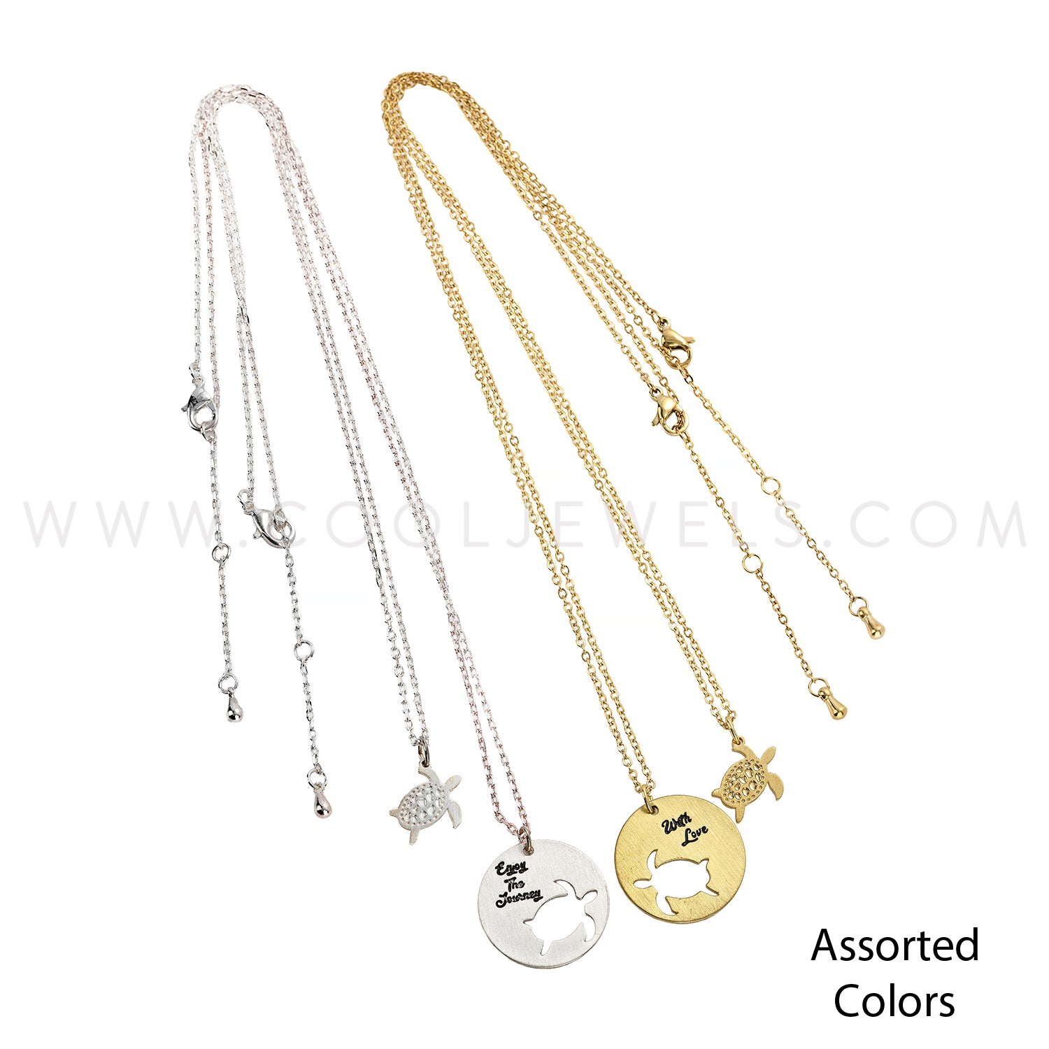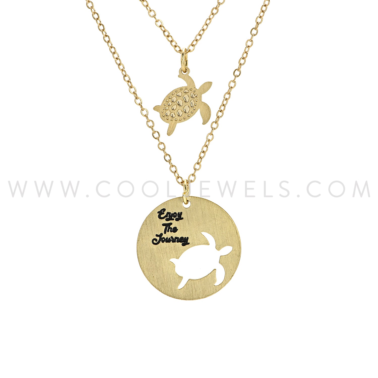 (SET OF 2) TWO LINK CHAIN NECKLACE WITH DISC & TURTLE