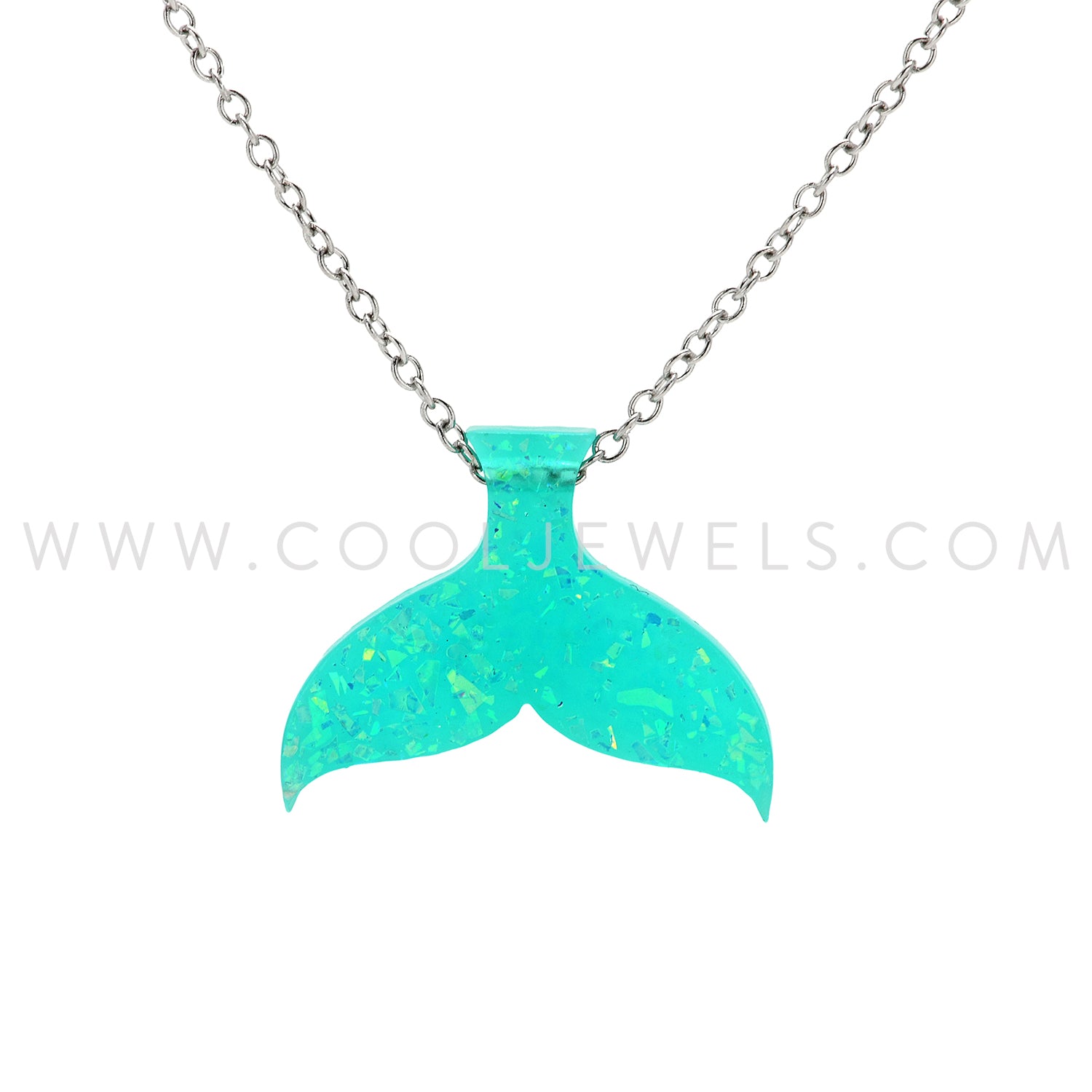 SILVER NECKLACE WITH IMITATION OPAL WHALE TAIL CARDED - ASSORTED COLORS