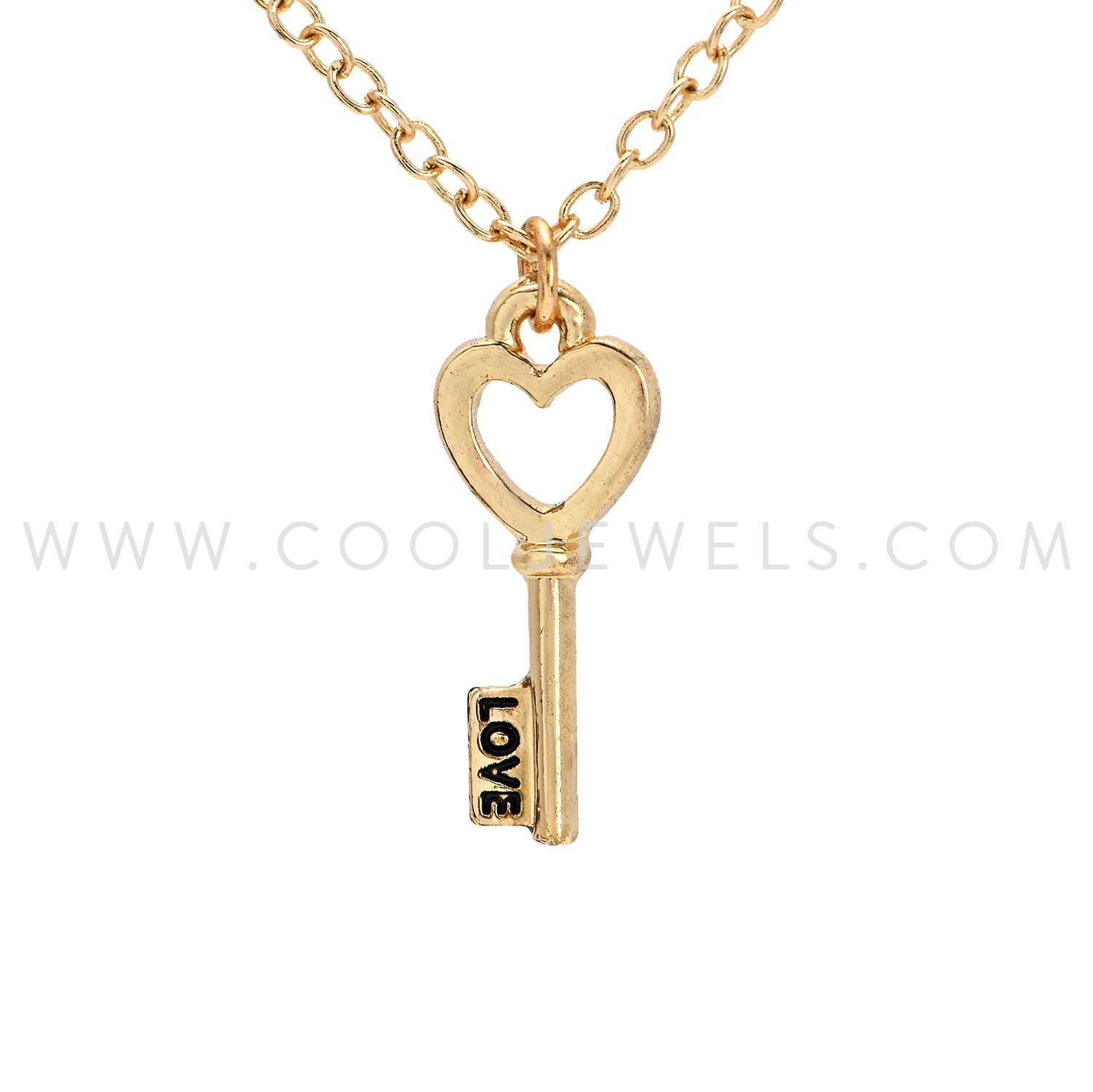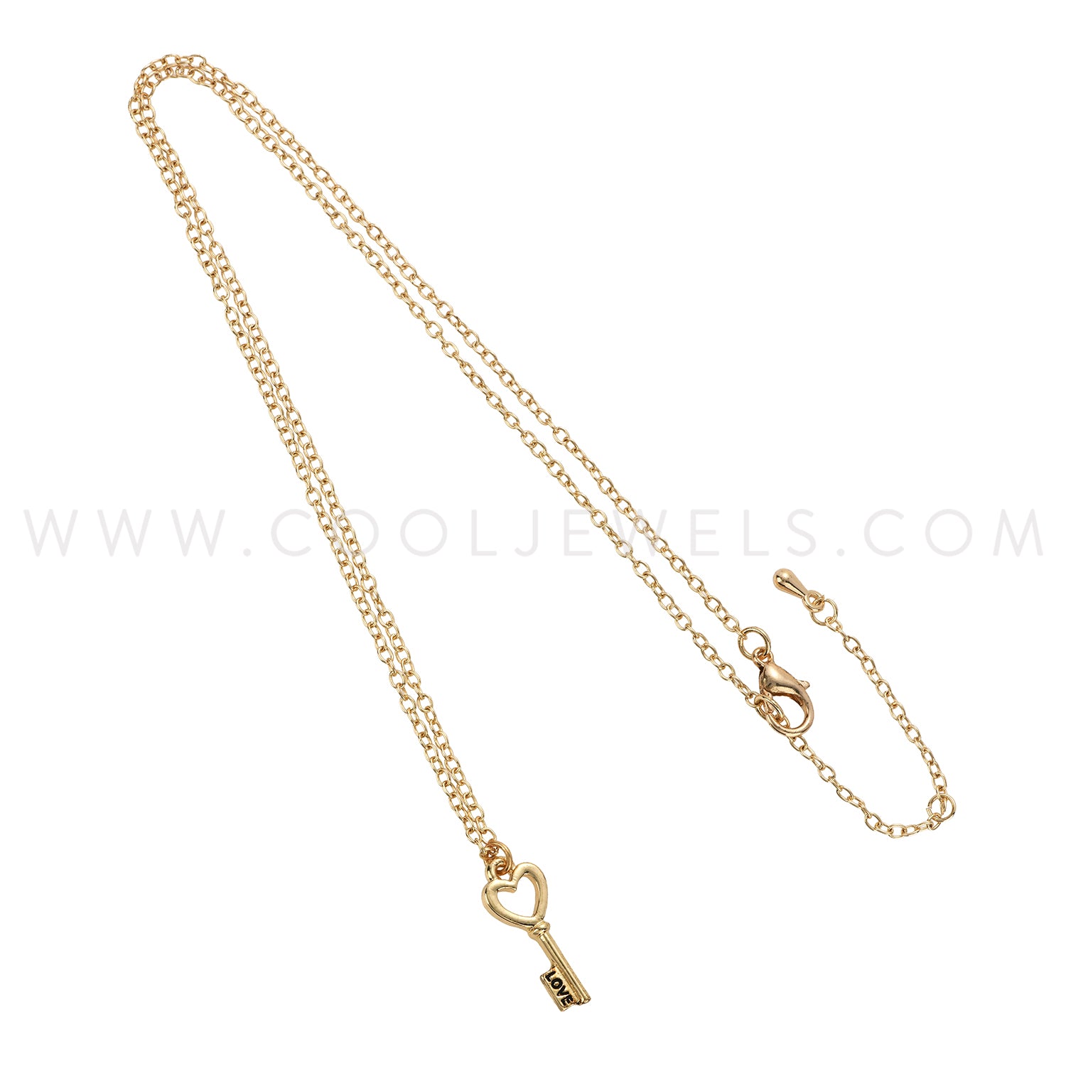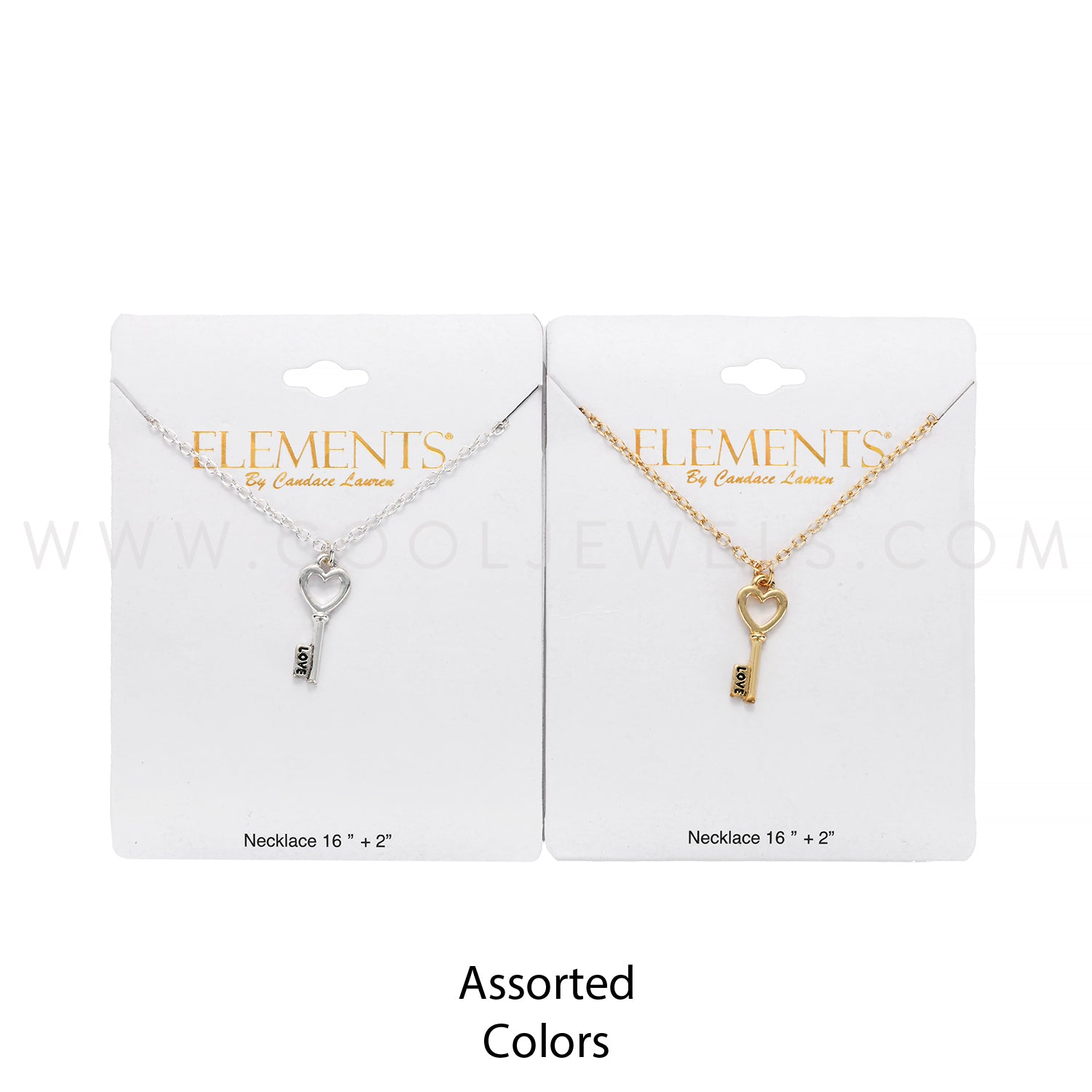 LINK CHAIN NECKLACE WITH HEART KEY PENDANT ASSORTED - CARDED