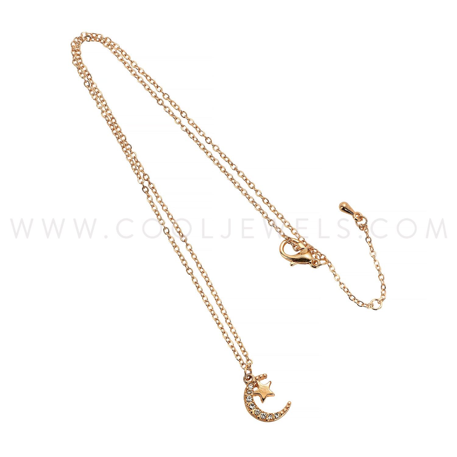 GOLD LINK CHAIN NECKLACE WITH RHINESTONE MOON & STAR PENDANT