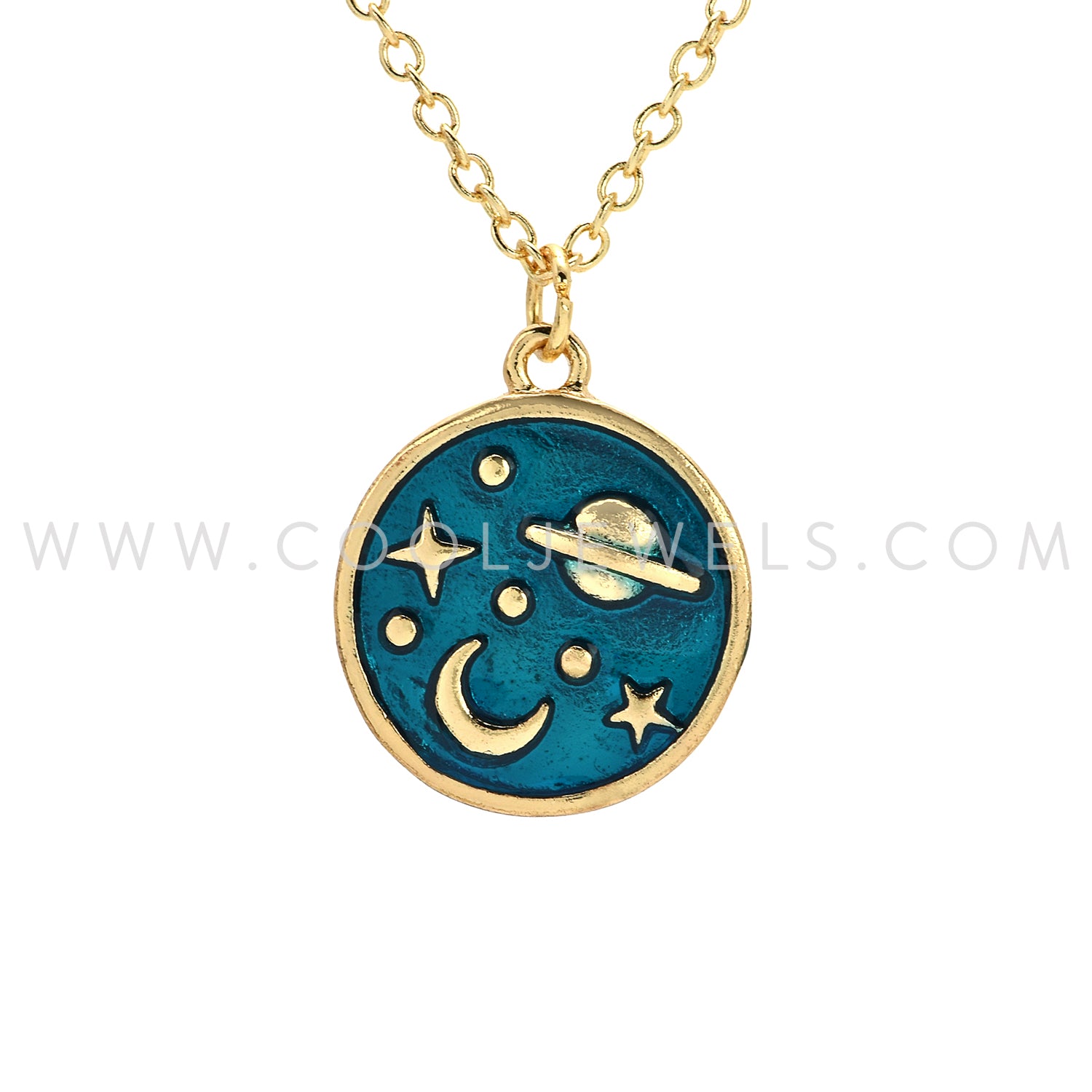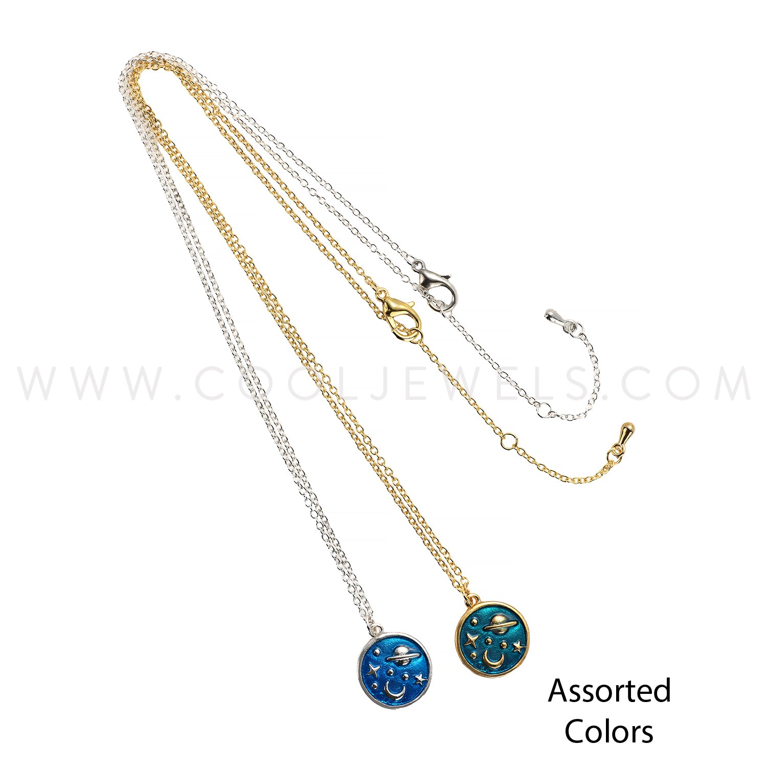 LINK CHAIN NECKLACE WITH ROUND BLUE IRIDESCENT SPACE PENDANT ASSORTED - CARDED