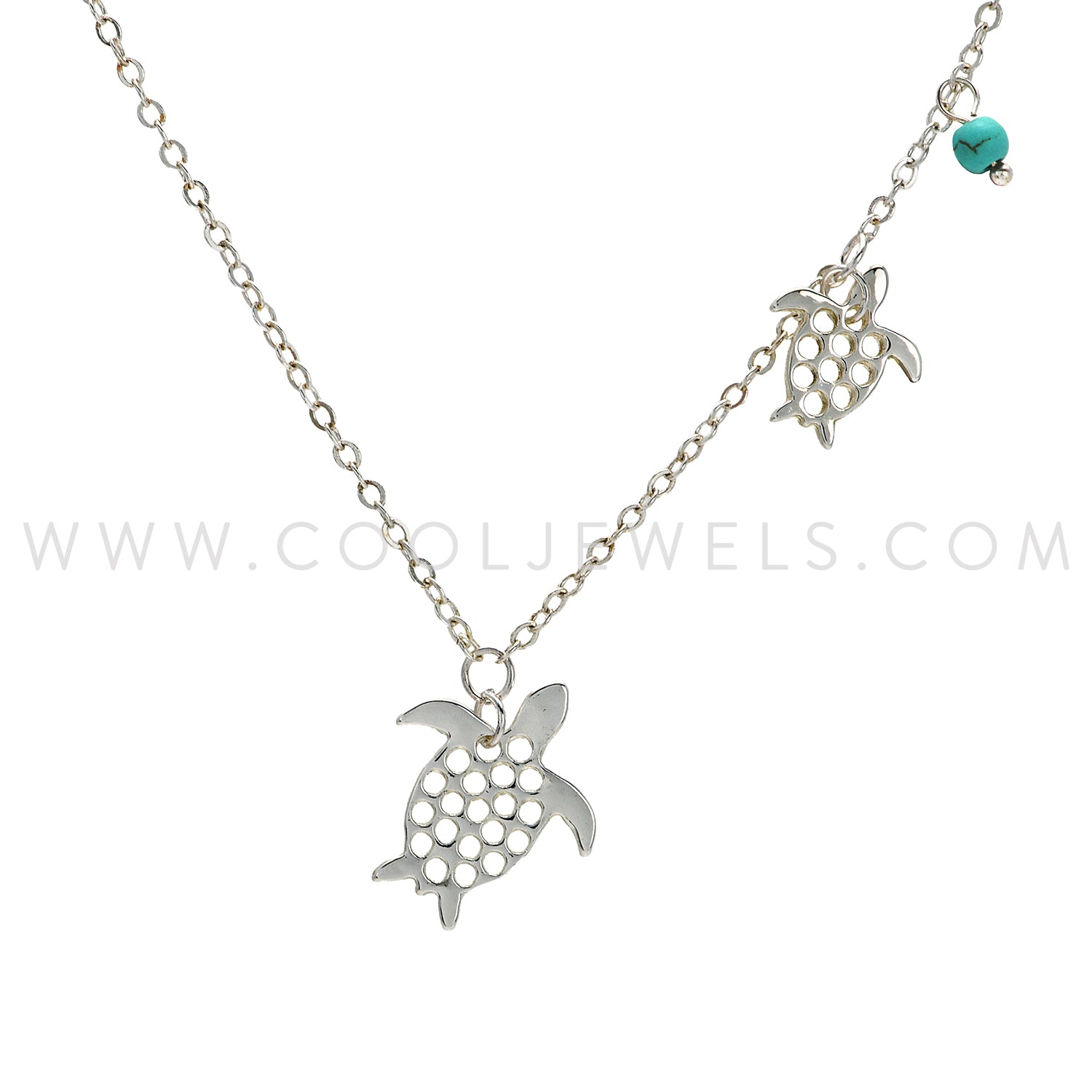 LINK CHAIN NECKLACE WITH TWO (2) TURTLE PENDANTS - CARDED