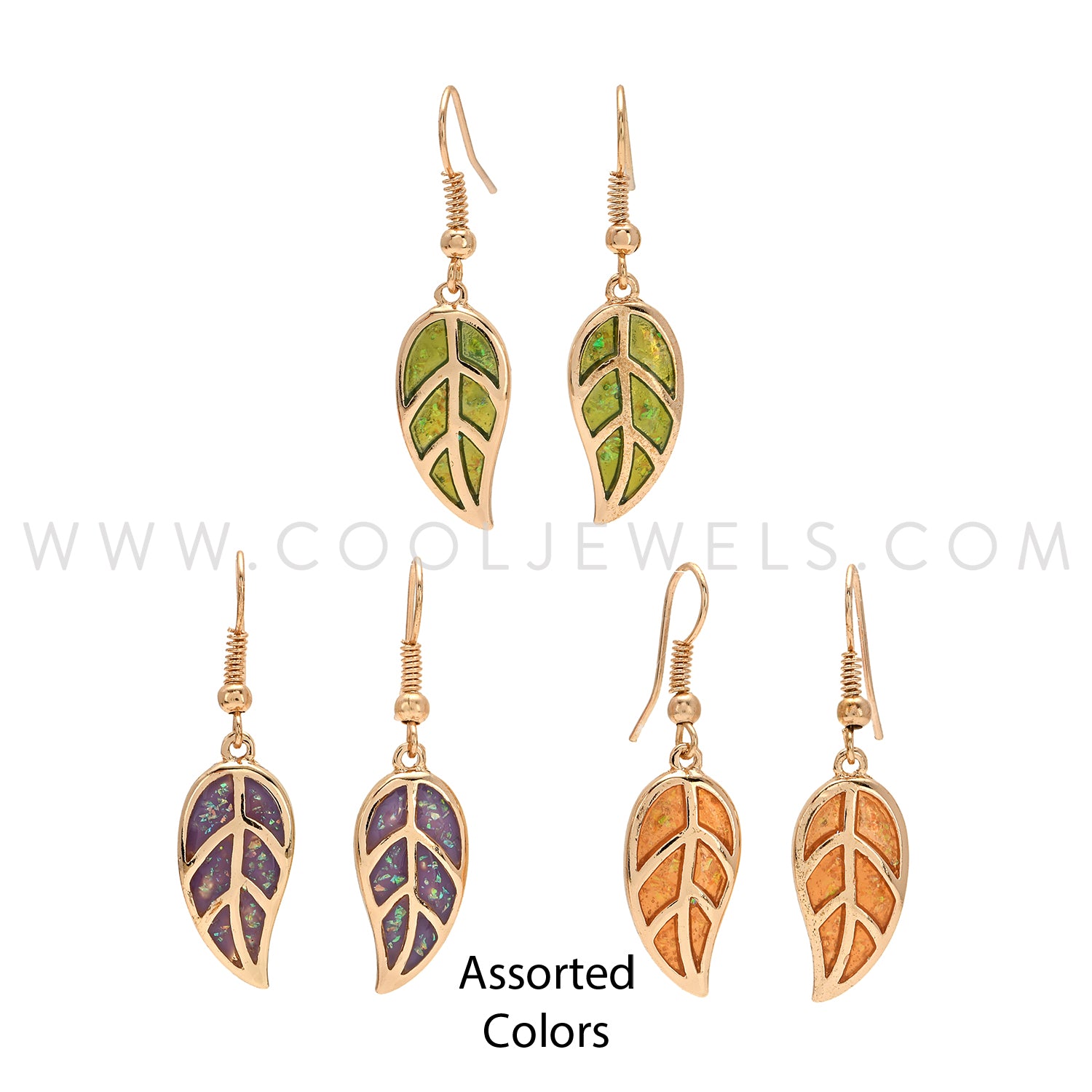 FISH HOOK EARRING WITH IRIDESCENT LEAF PENDANT ASSORTED - CARDED