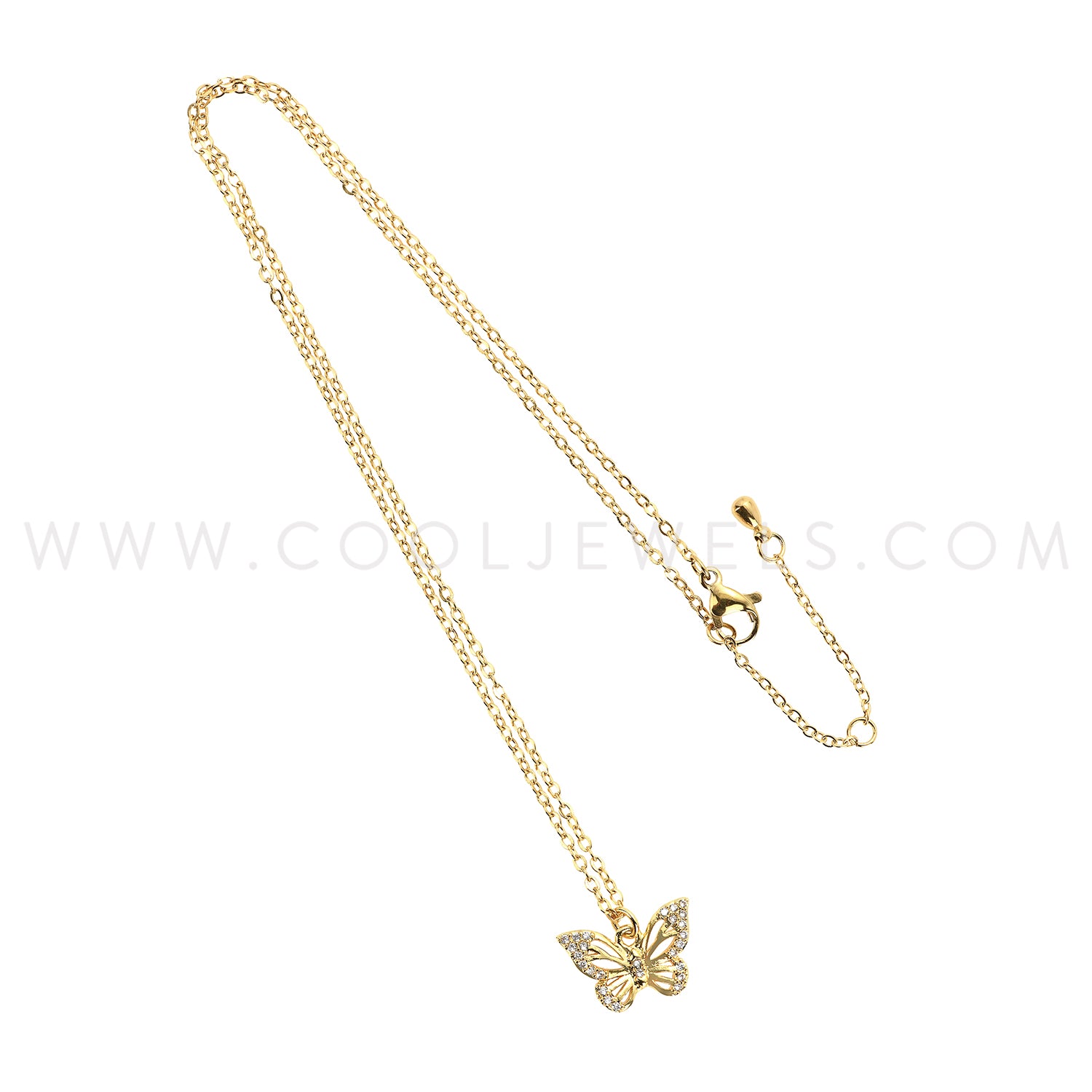 GOLD CHAIN NECKLACE WITH RHINESTONE BUTTERFLY - CARDED