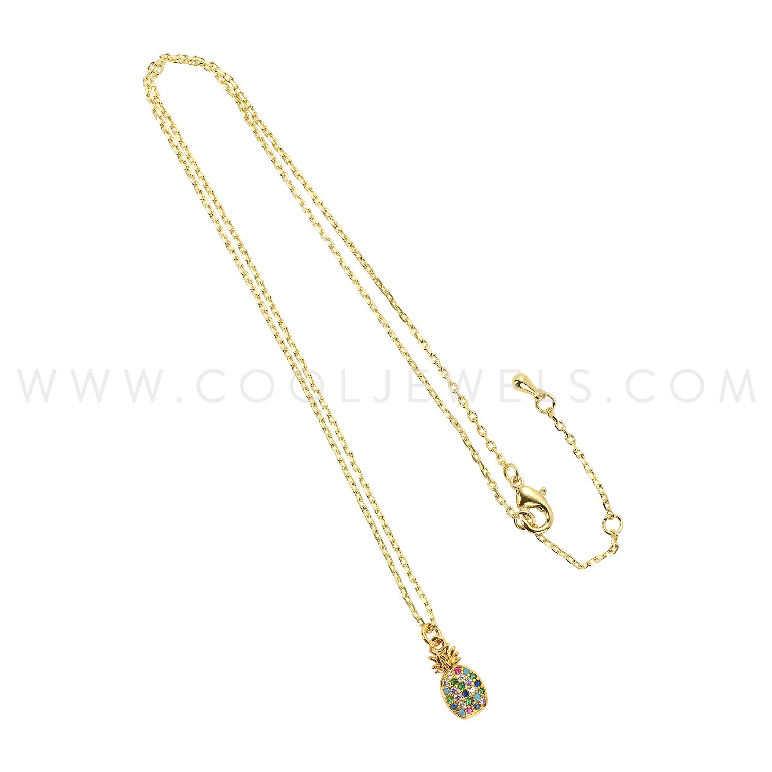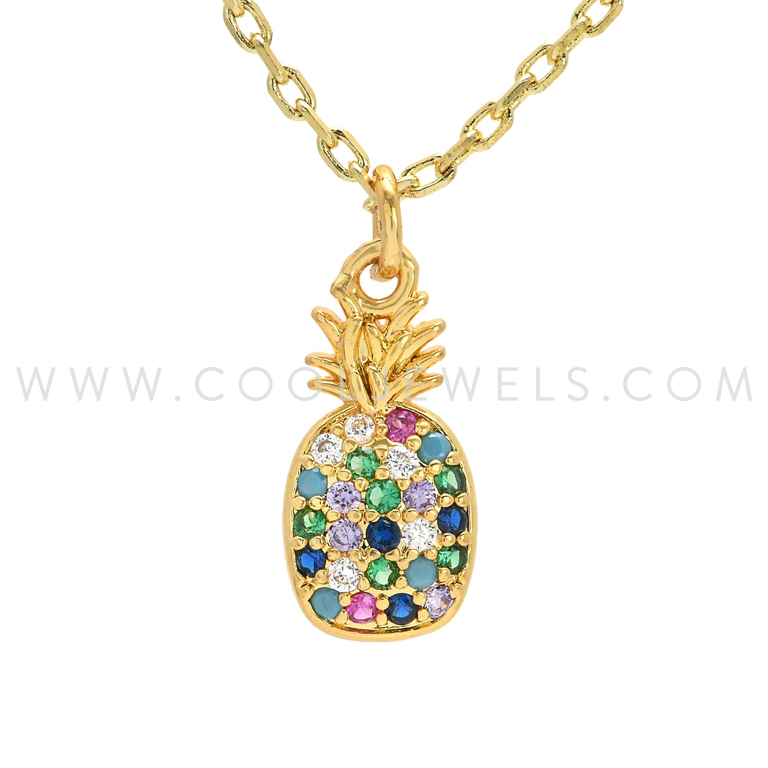 GOLD CHAIN NECKLACE WITH RHINESTONE PINEAPPLE - CARDED