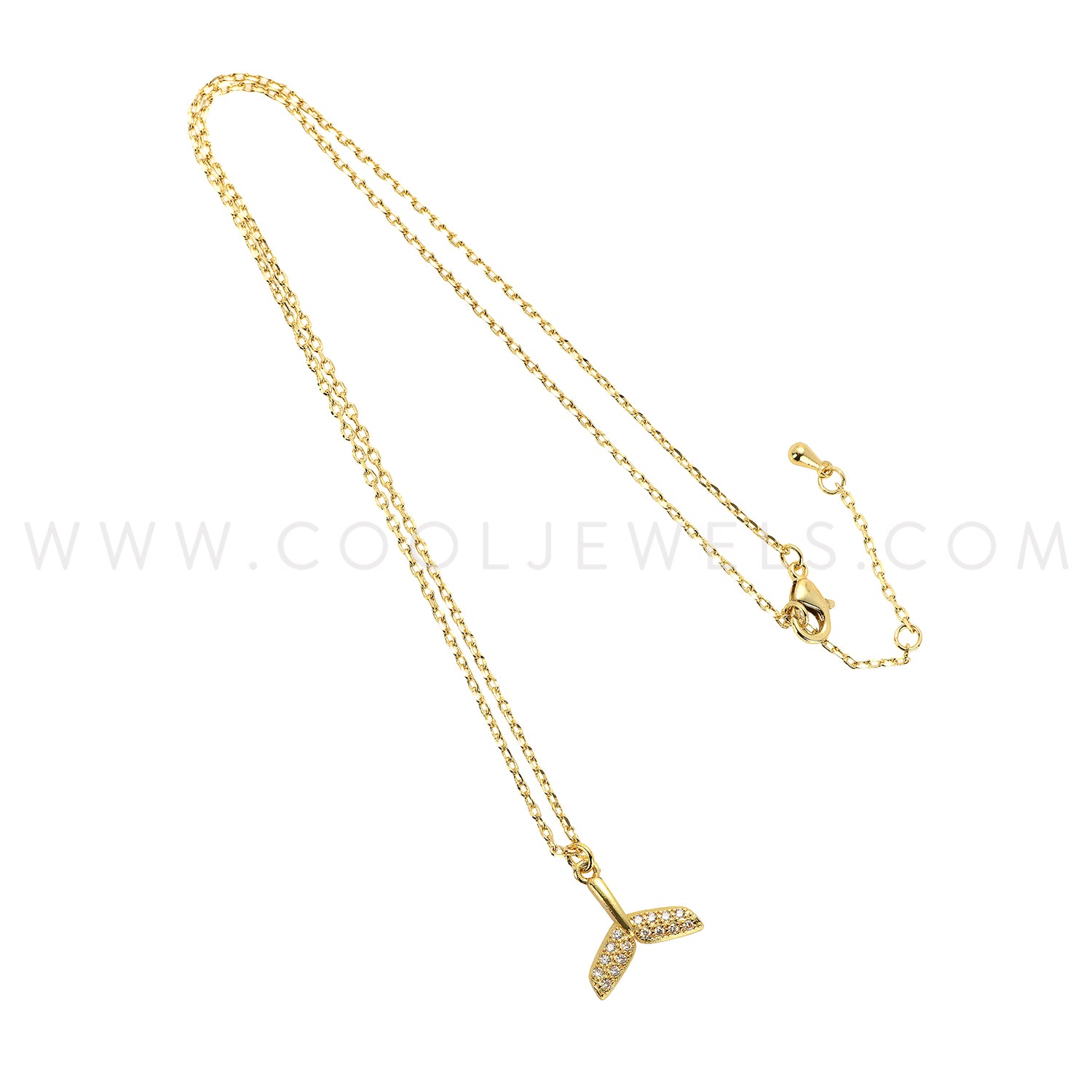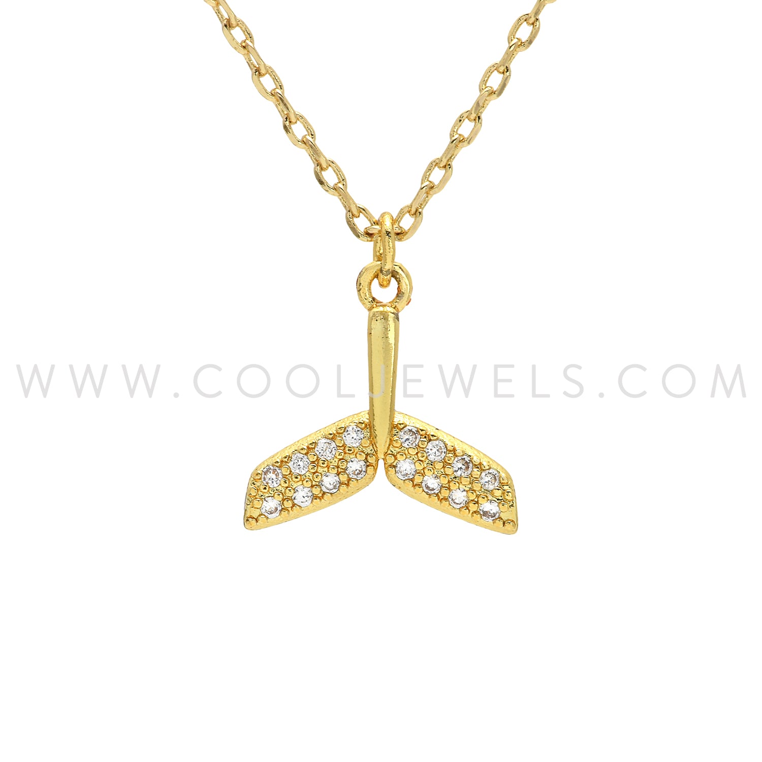 GOLD CHAIN NECKLACE WITH RHINESTONE WHALE TAIL - CARDED