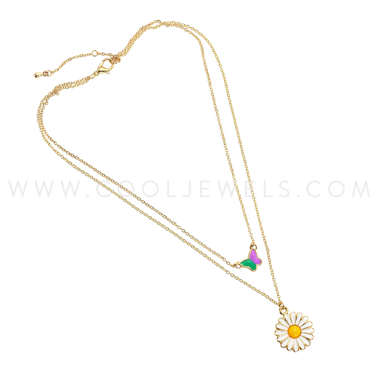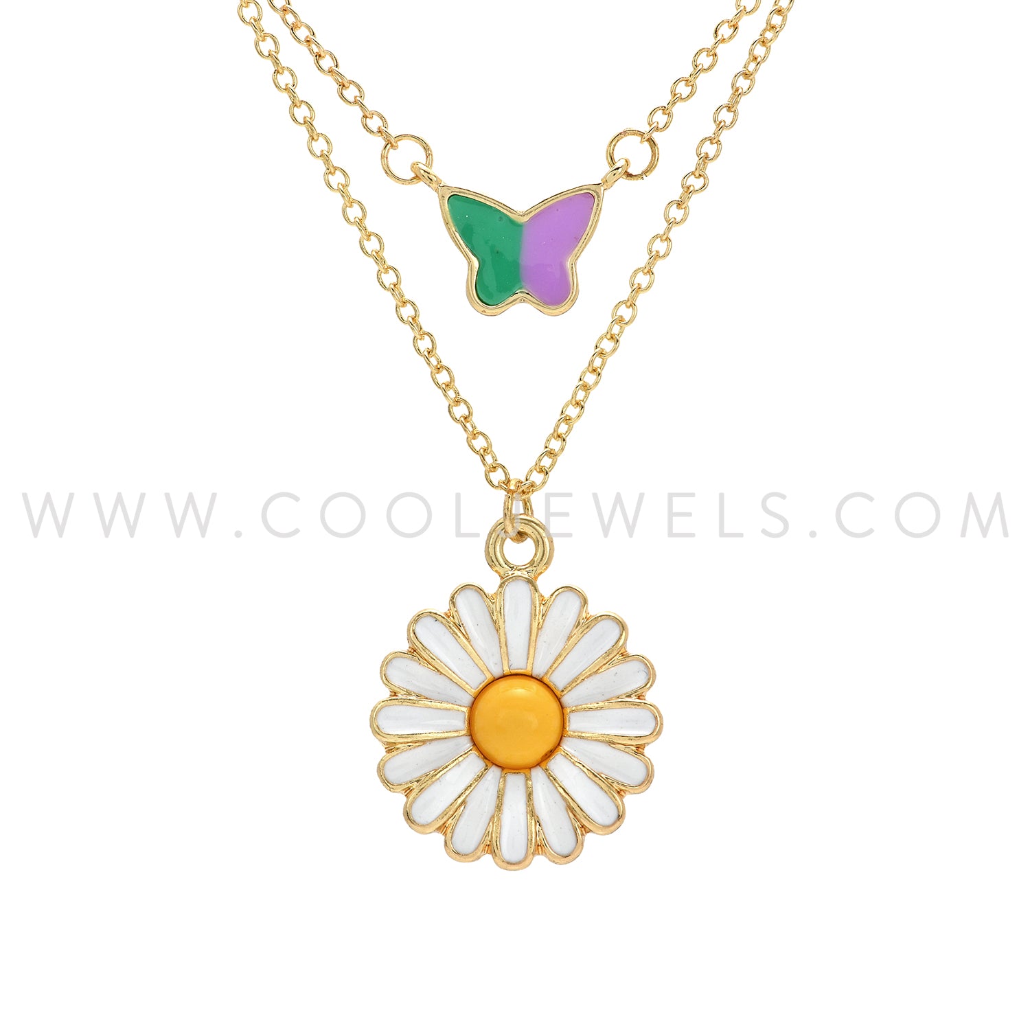 (SET OF 2) GOLD LINK CHAIN NECKLACE WITH DAISY & BUTTERFLY PENDANTS - CARDED