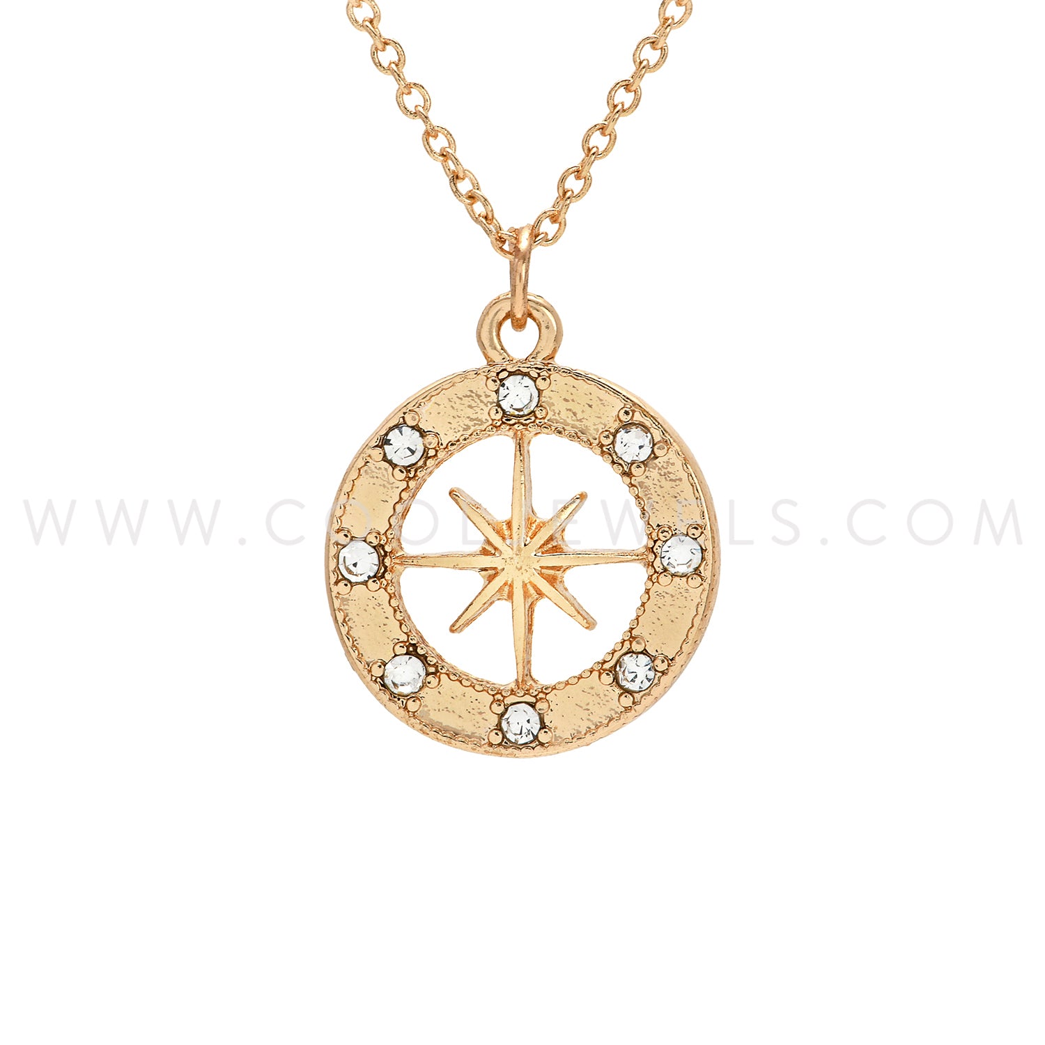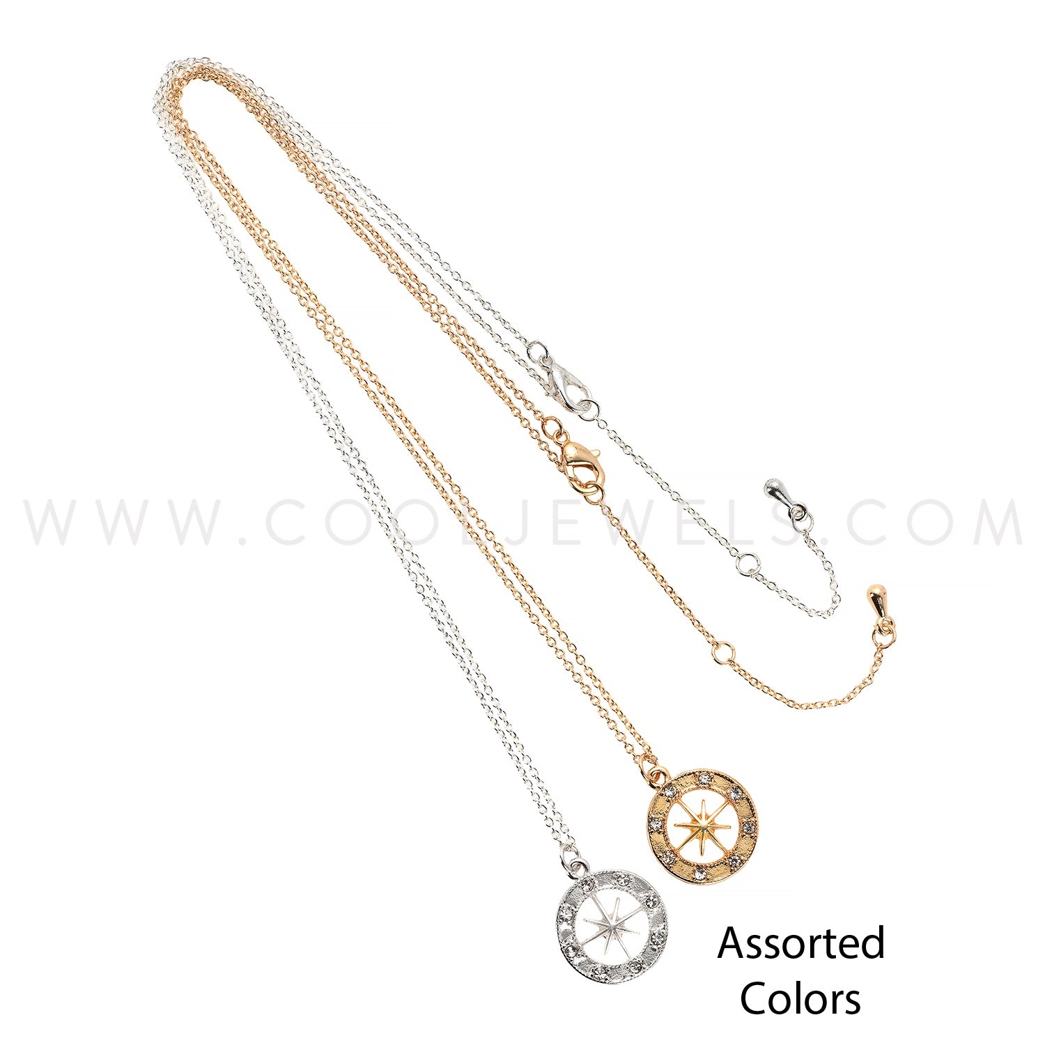 LINK CHAIN NECKLACE WITH RHINESTONE COMPASS PENDANT ASSORTED - CARDED