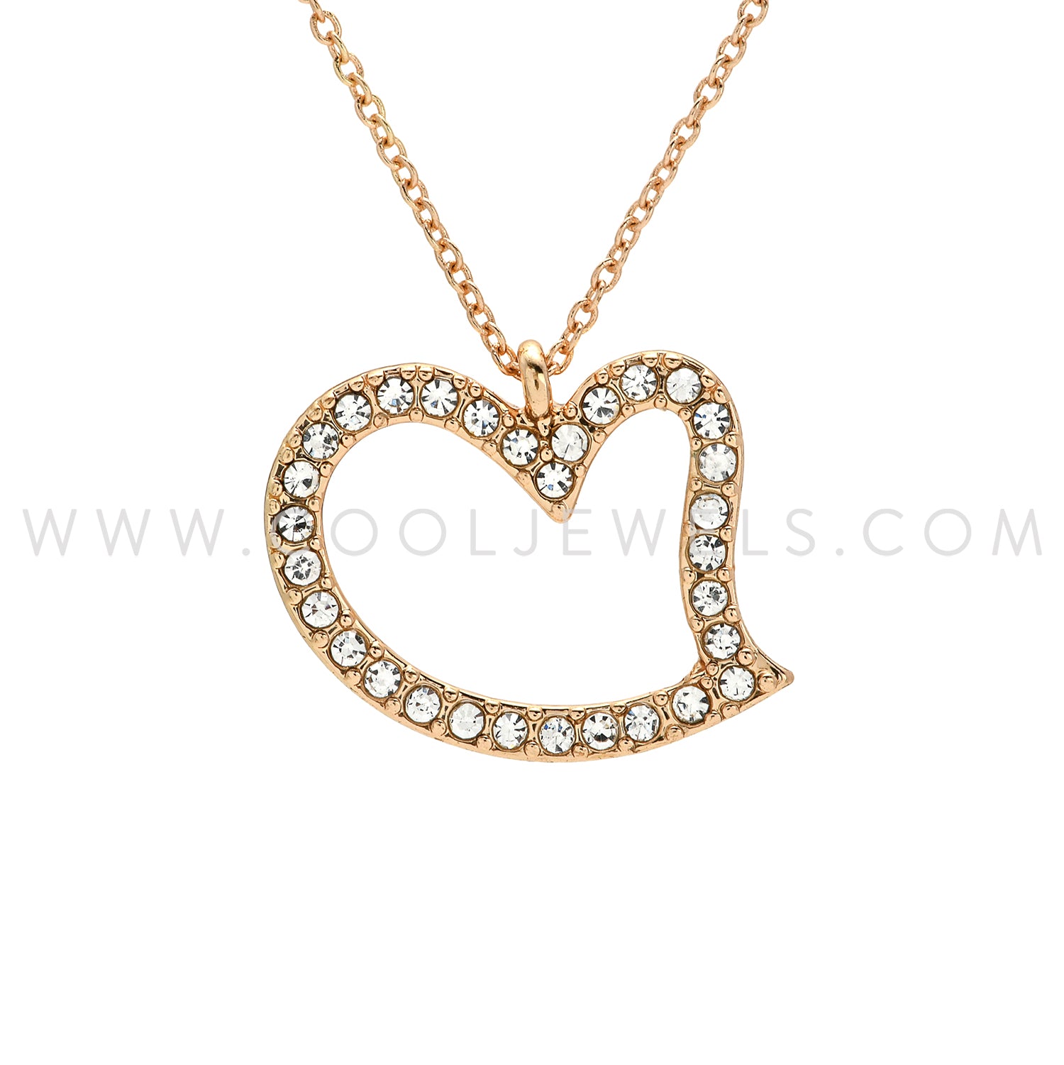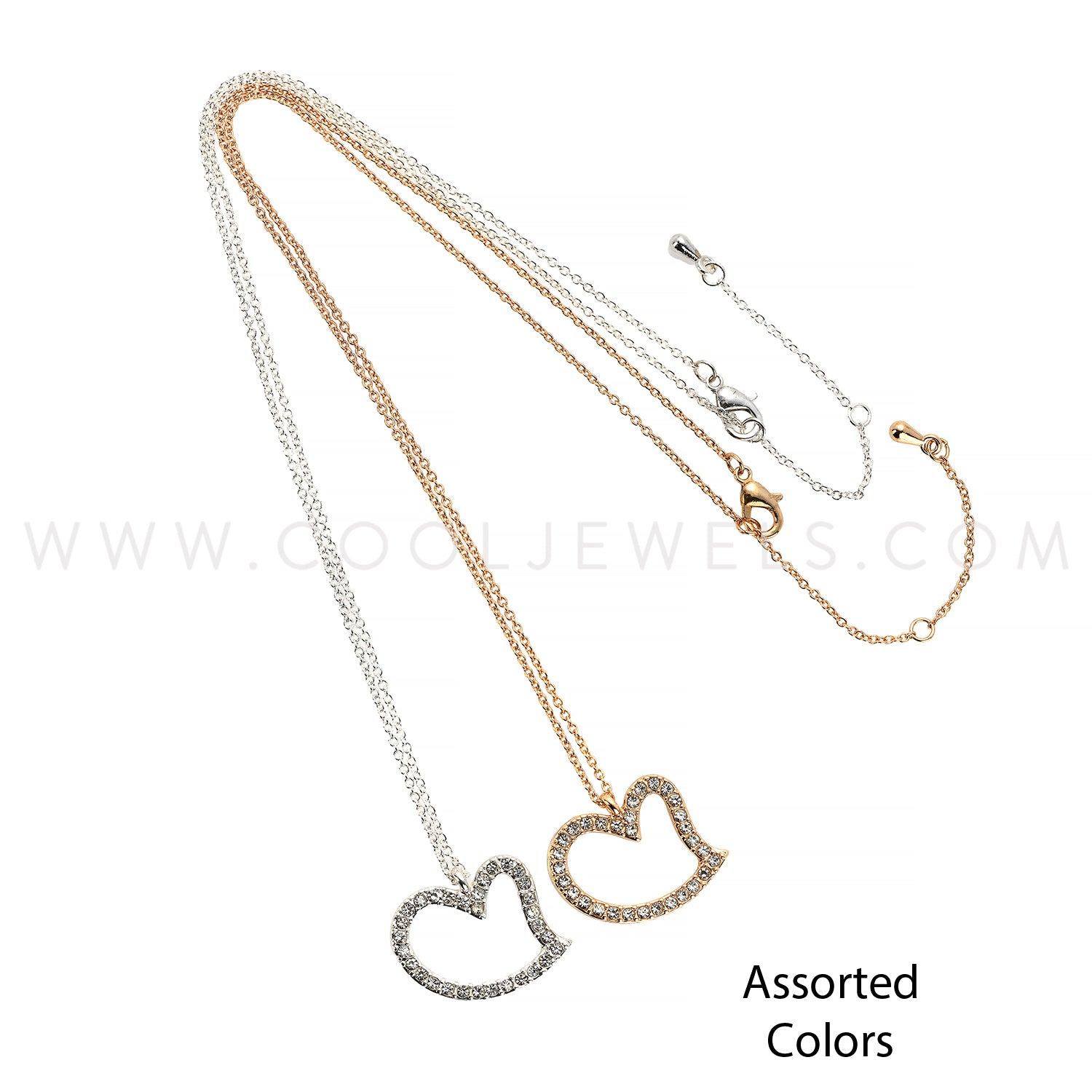 LINK CHAIN NECKLACE WITH RHINESTONE IRREGULAR-SHAPED HEART PENDANT ASSORTED - CARDED