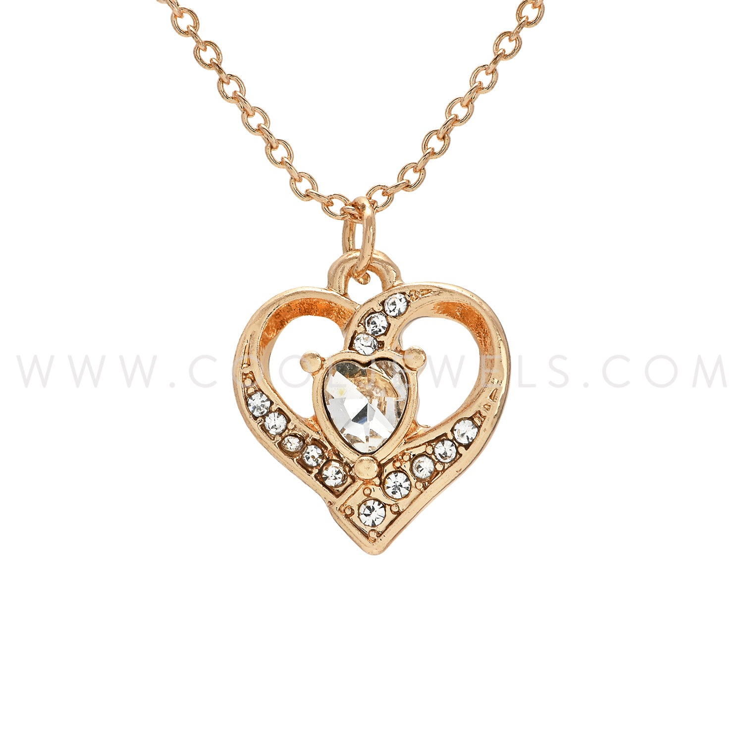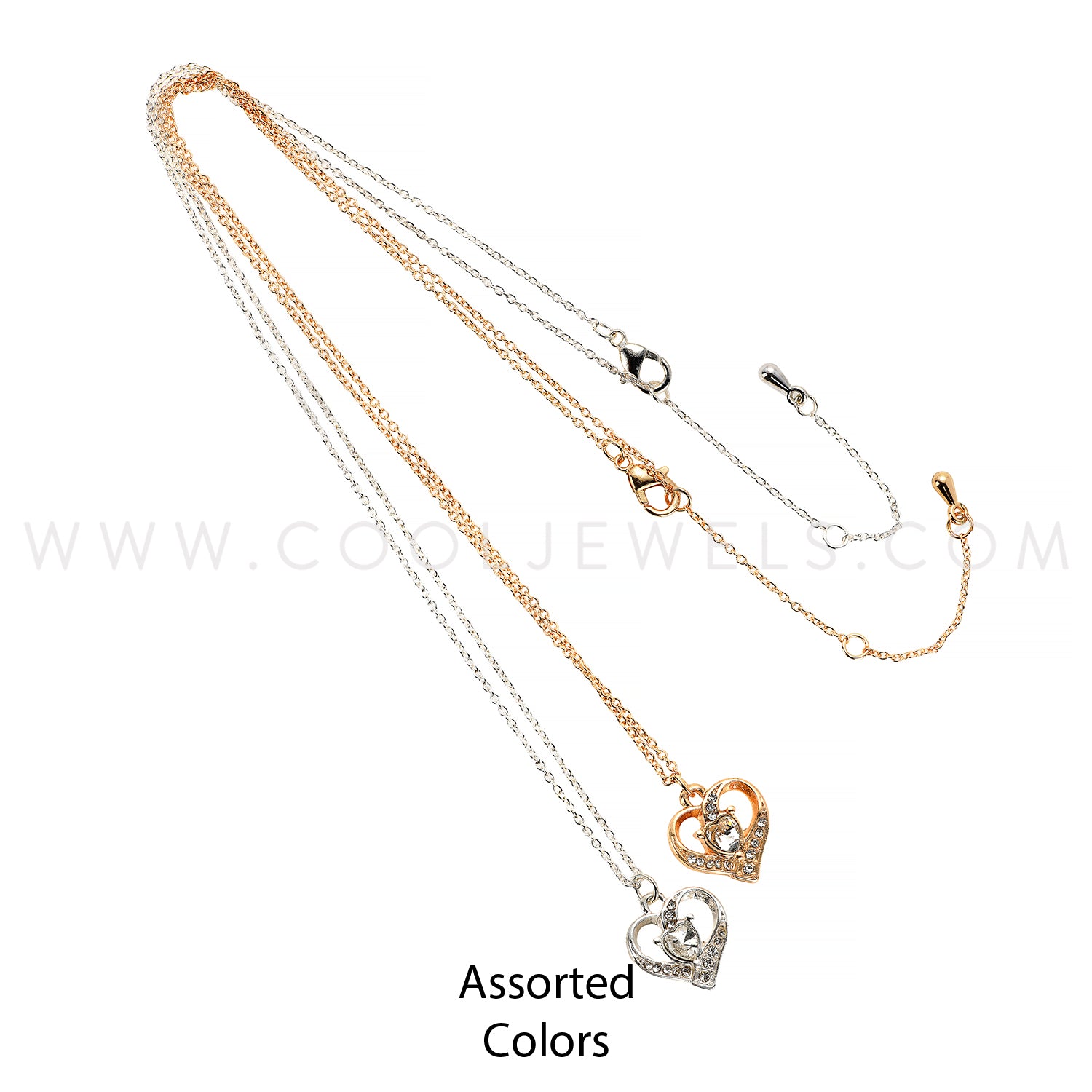LINK CHAIN NECKLACE WITH RHINESTONE HEART PENDANT ASSORTED - CARDED