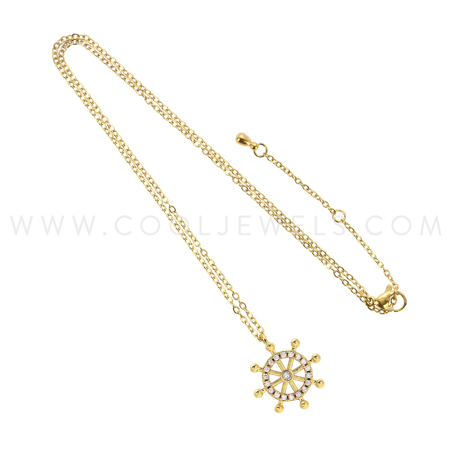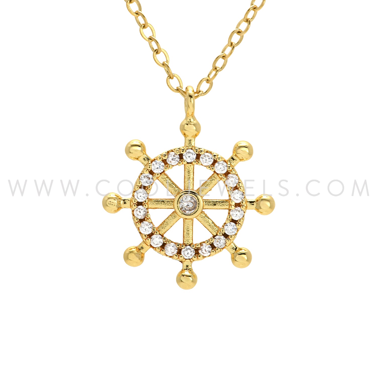 GOLD LINK CHAIN NECKLACE WITH RHINESTONE SHIP HELM - CARDED