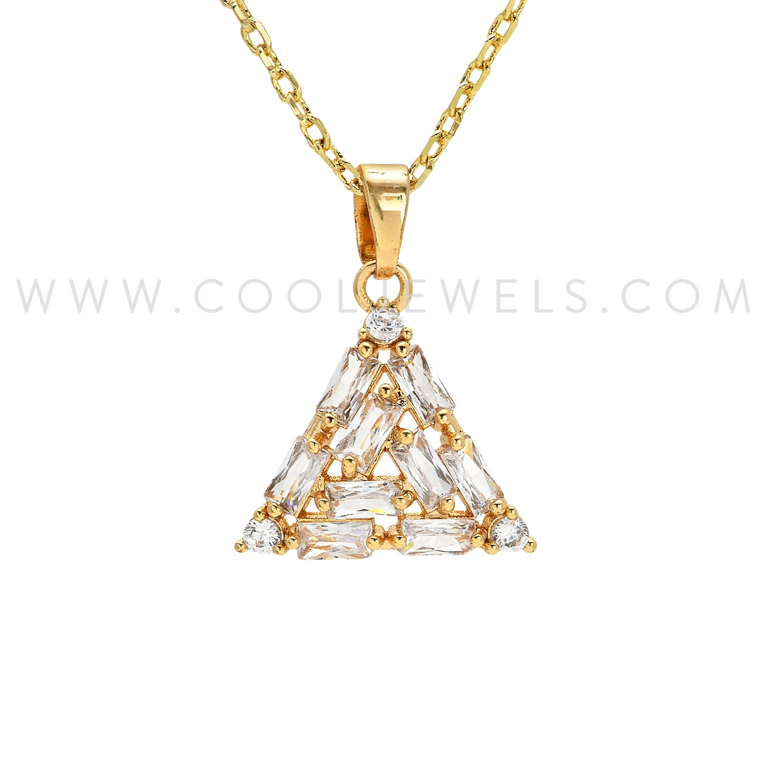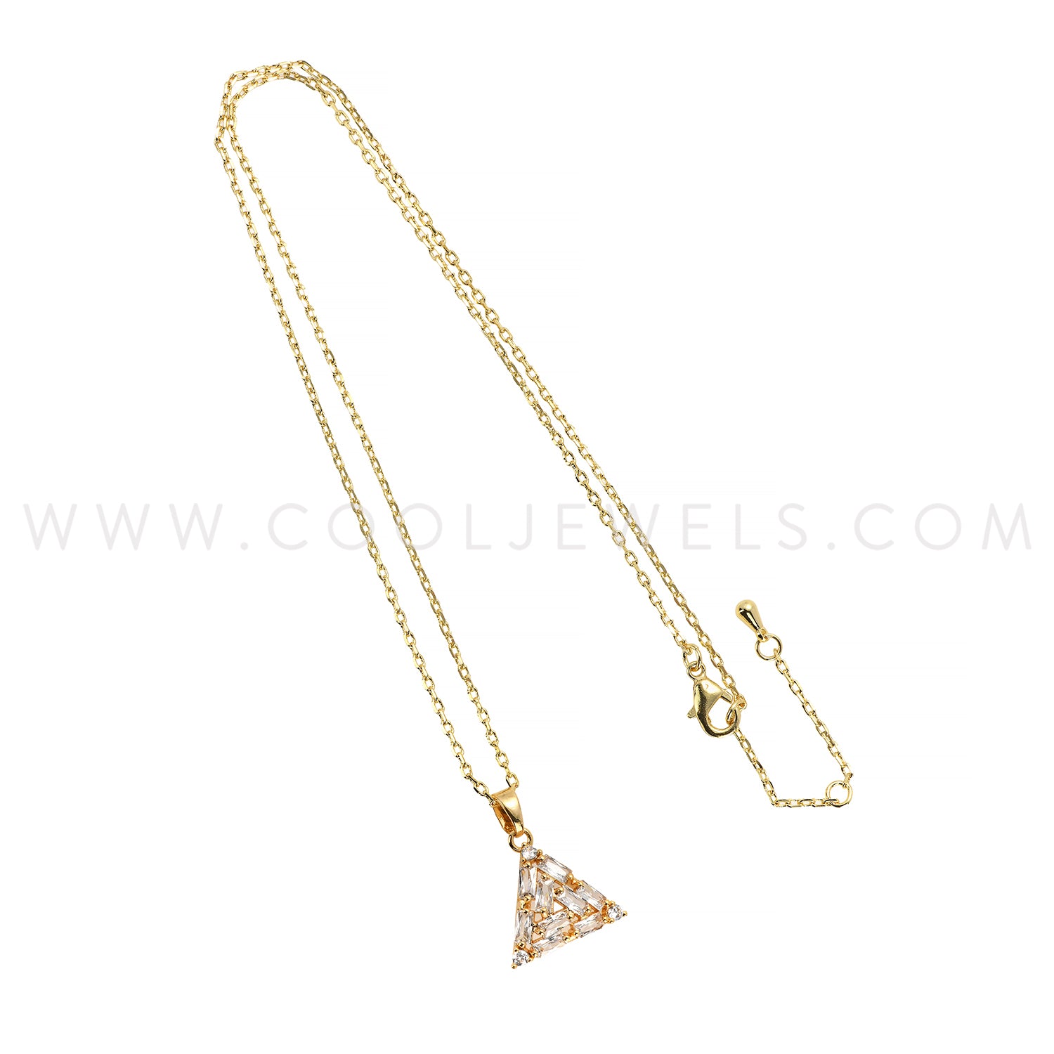 GOLD LINK CHAIN NECKLACE WITH ZIRCON TRIANGLE PENDANT - CARDED