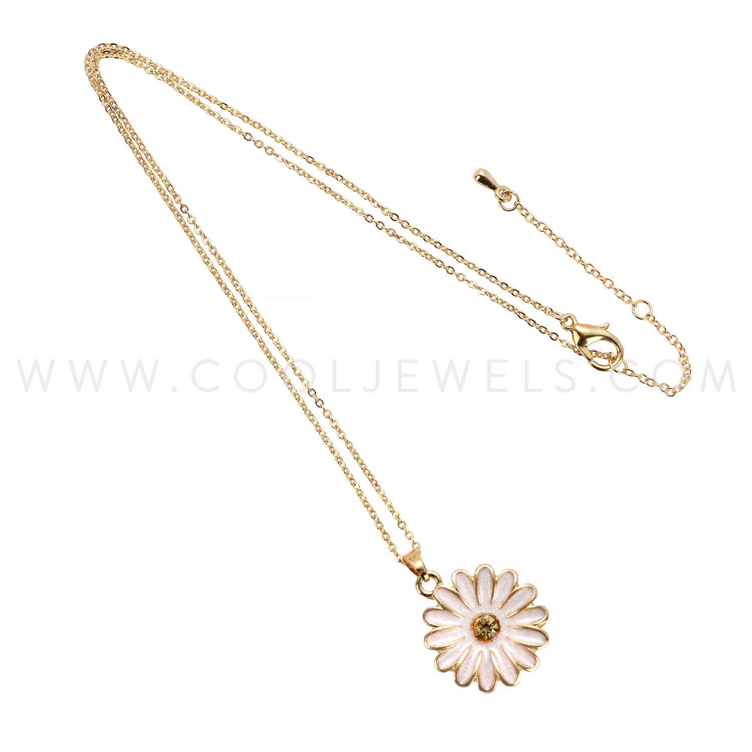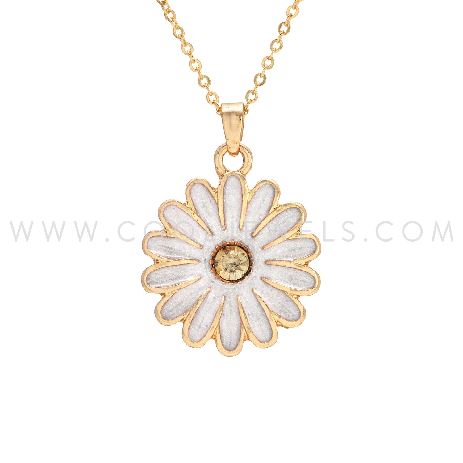 GOLD CHAIN NECKLACE WITH WHITE DAISY PENDANT - CARDED