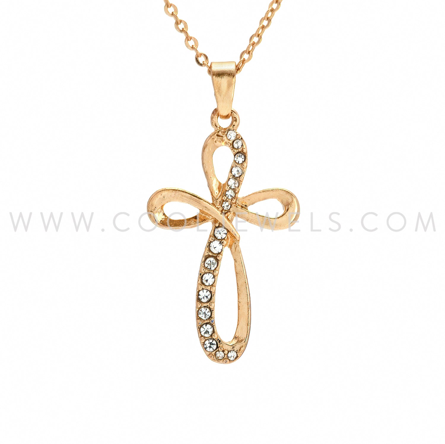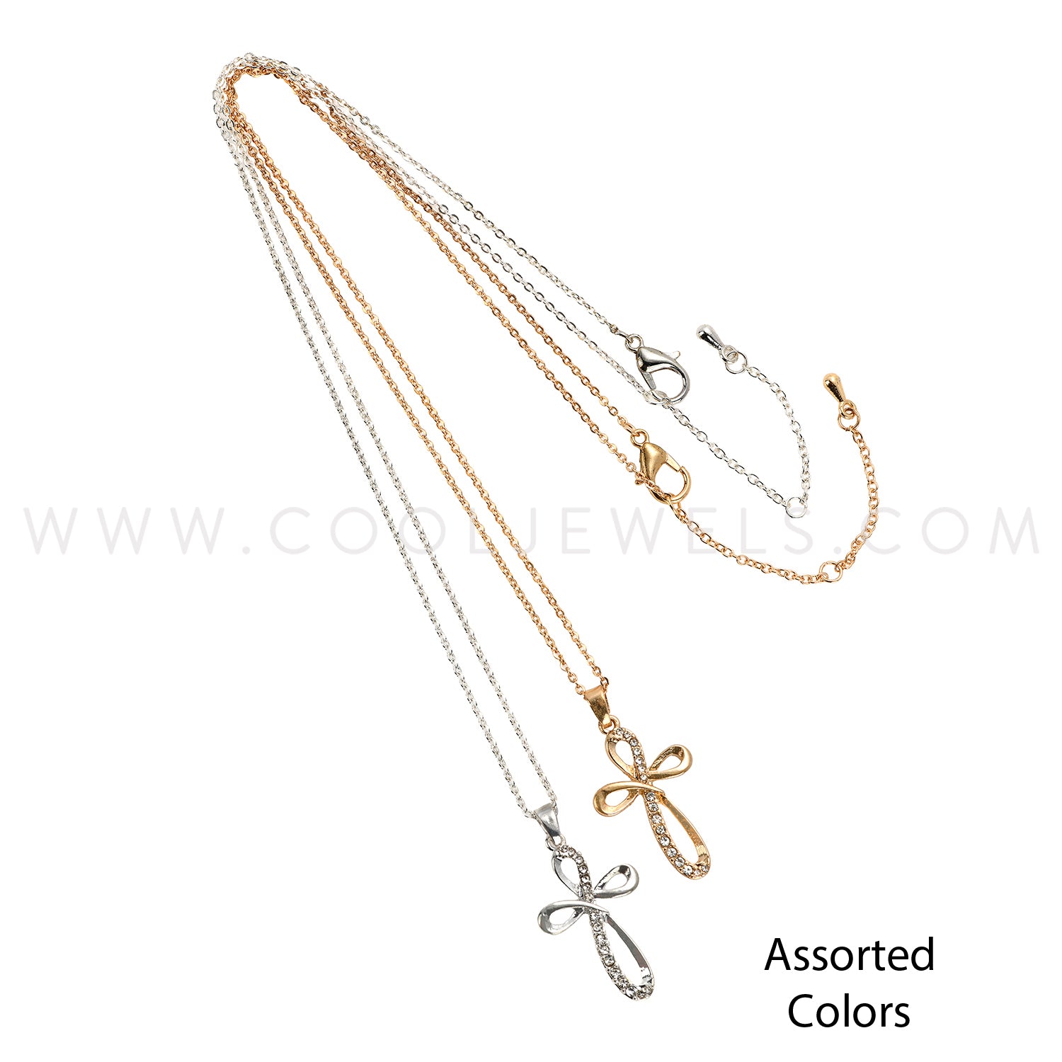 LINK CHAIN NECKLACE WITH RHINESTONE CROSS PENDANT ASSORTED - CARDED