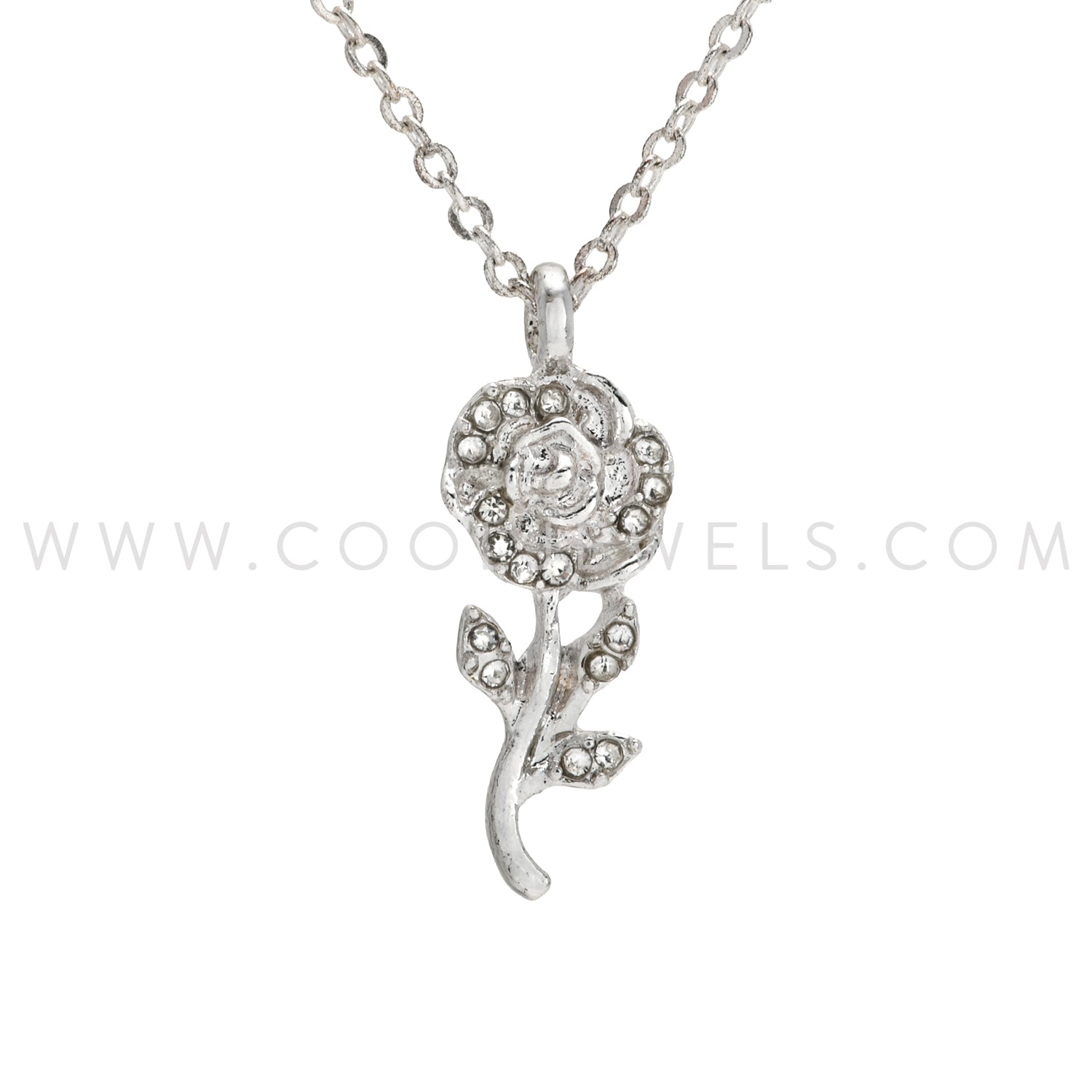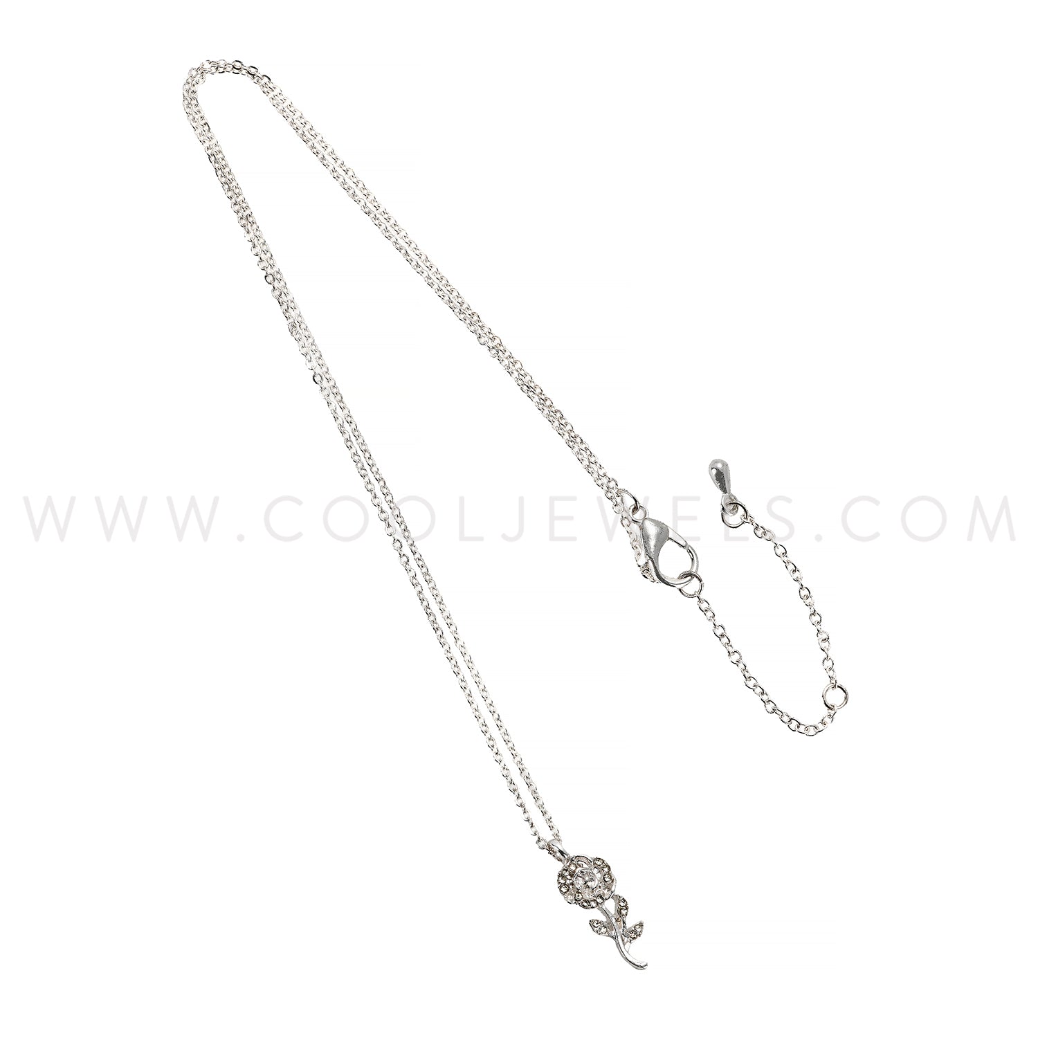 SILVER CHAIN NECKLACE WITH SILVER FLOWER PENDANT - CARDED