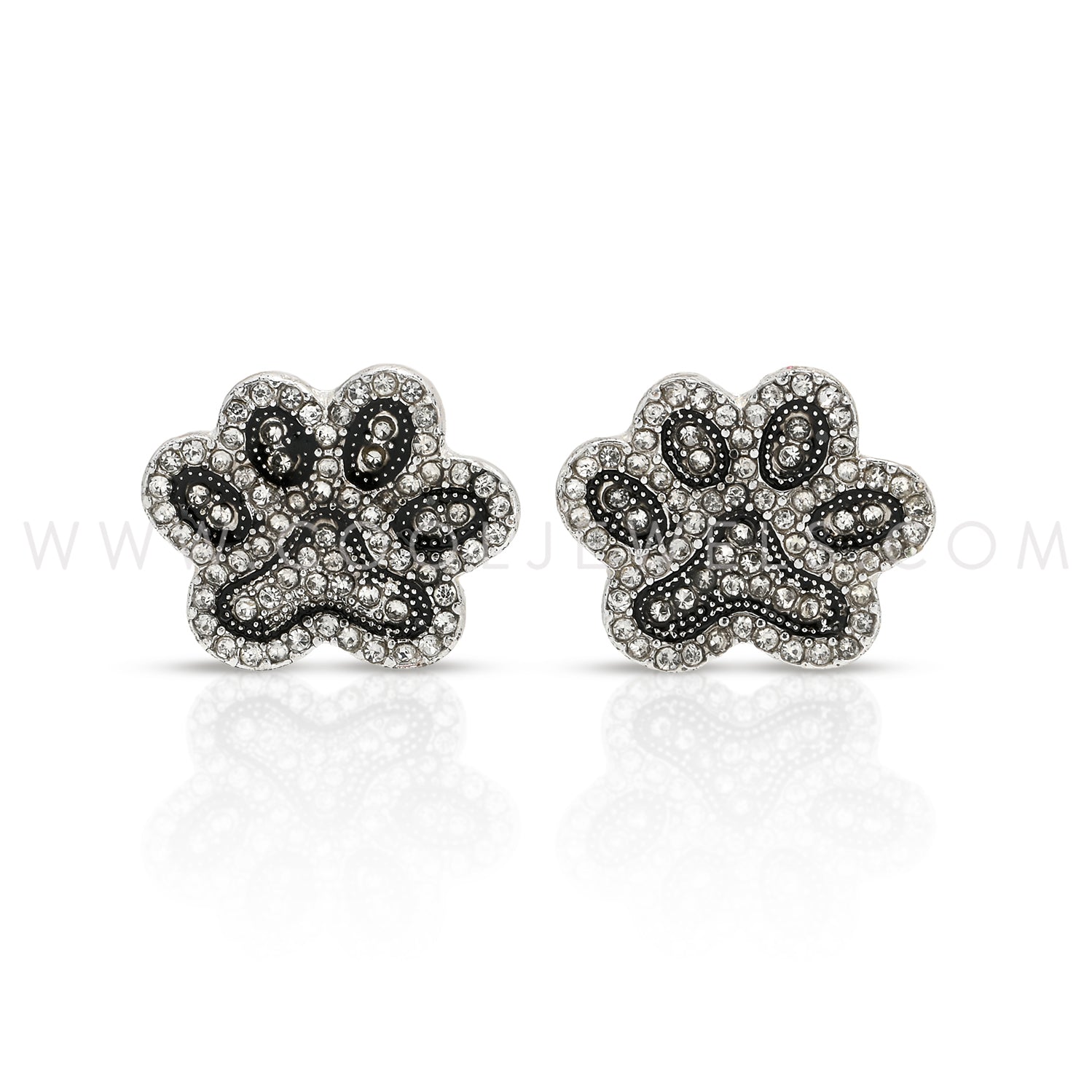 SILVER POST EARRING WITH RHINESTONE PAWS - CARDED