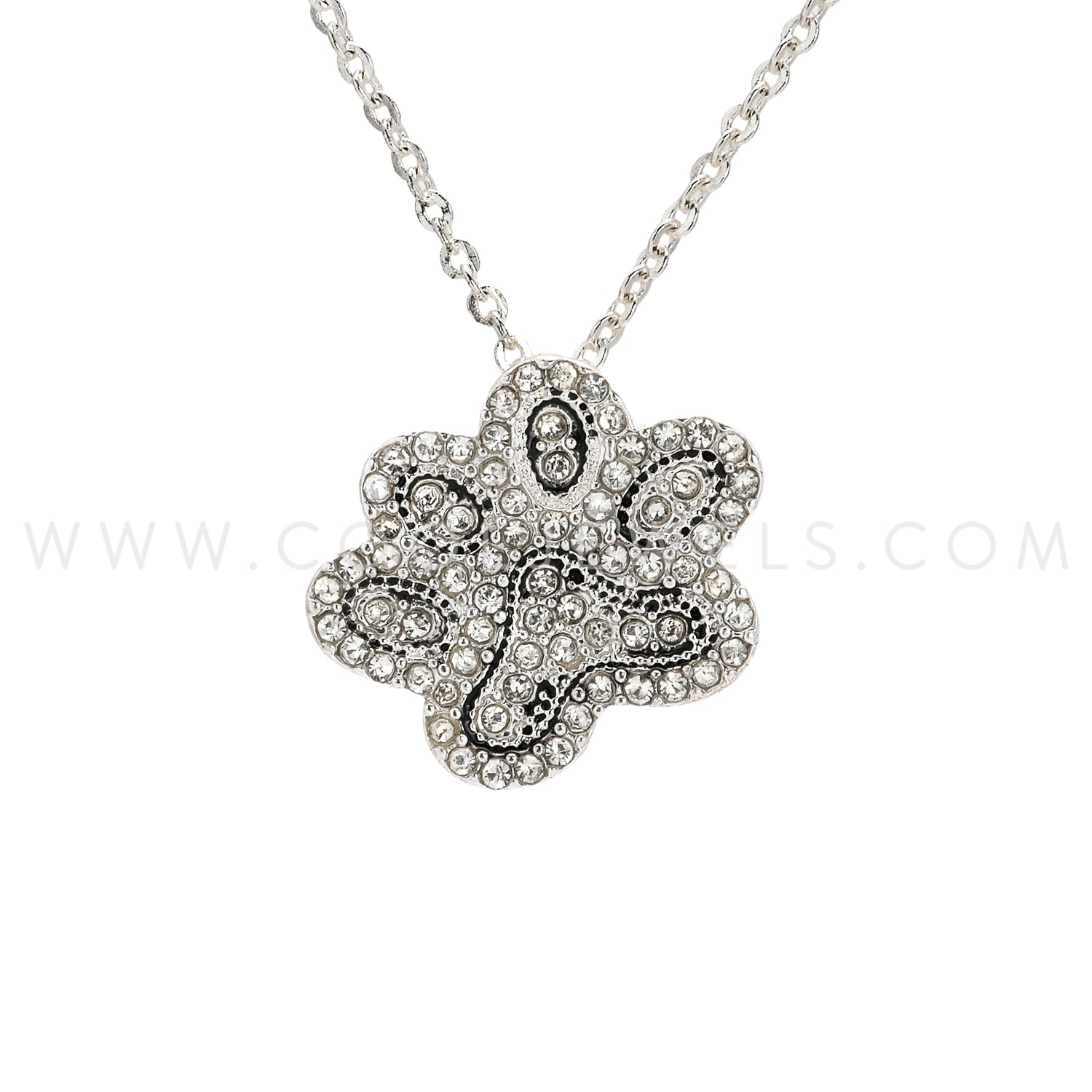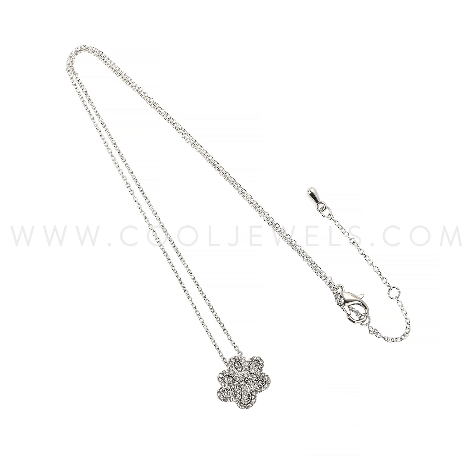 SILVER CHAIN NECKLACE WITH RHINESTONE PAW PENDANT - CARDED