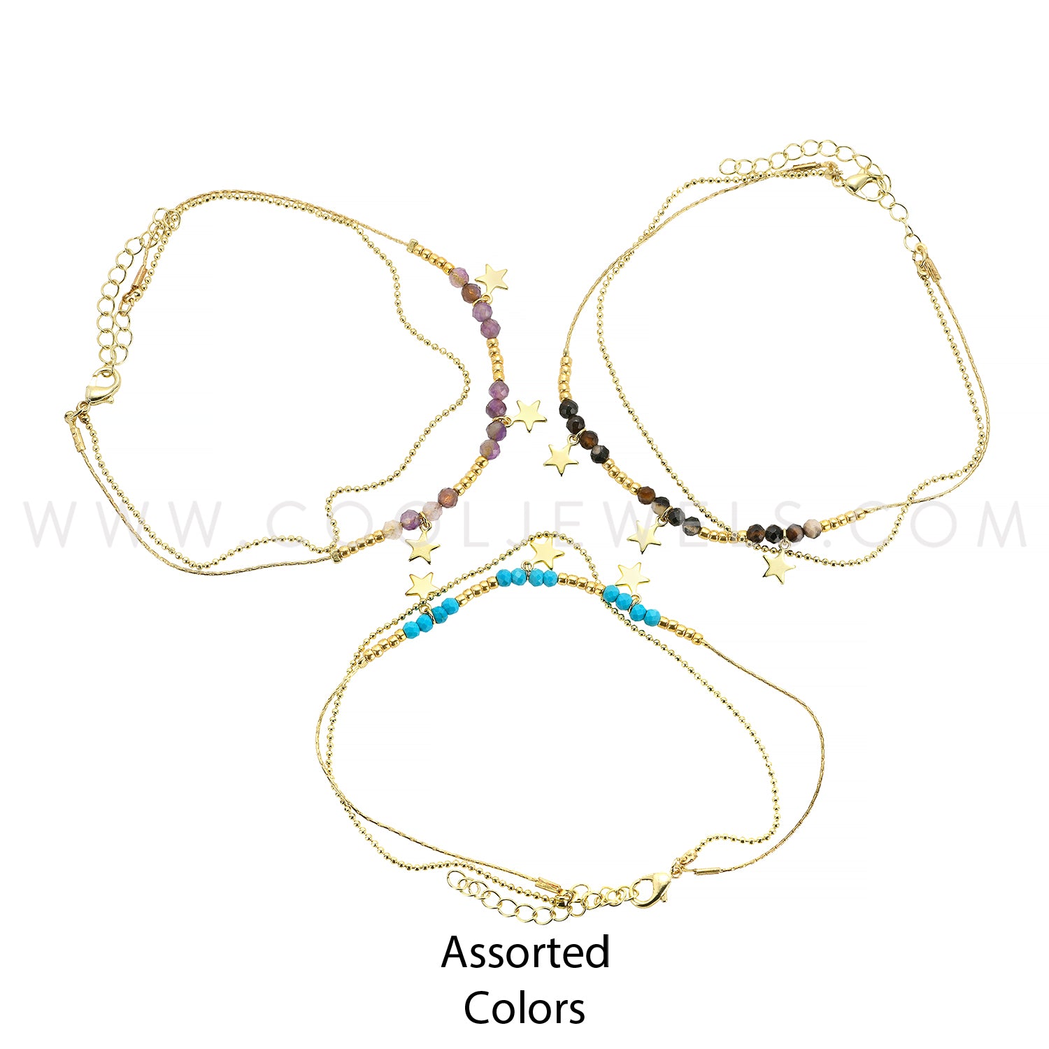 GOLD SLIDER ANKLET WITH BEADS & STARS