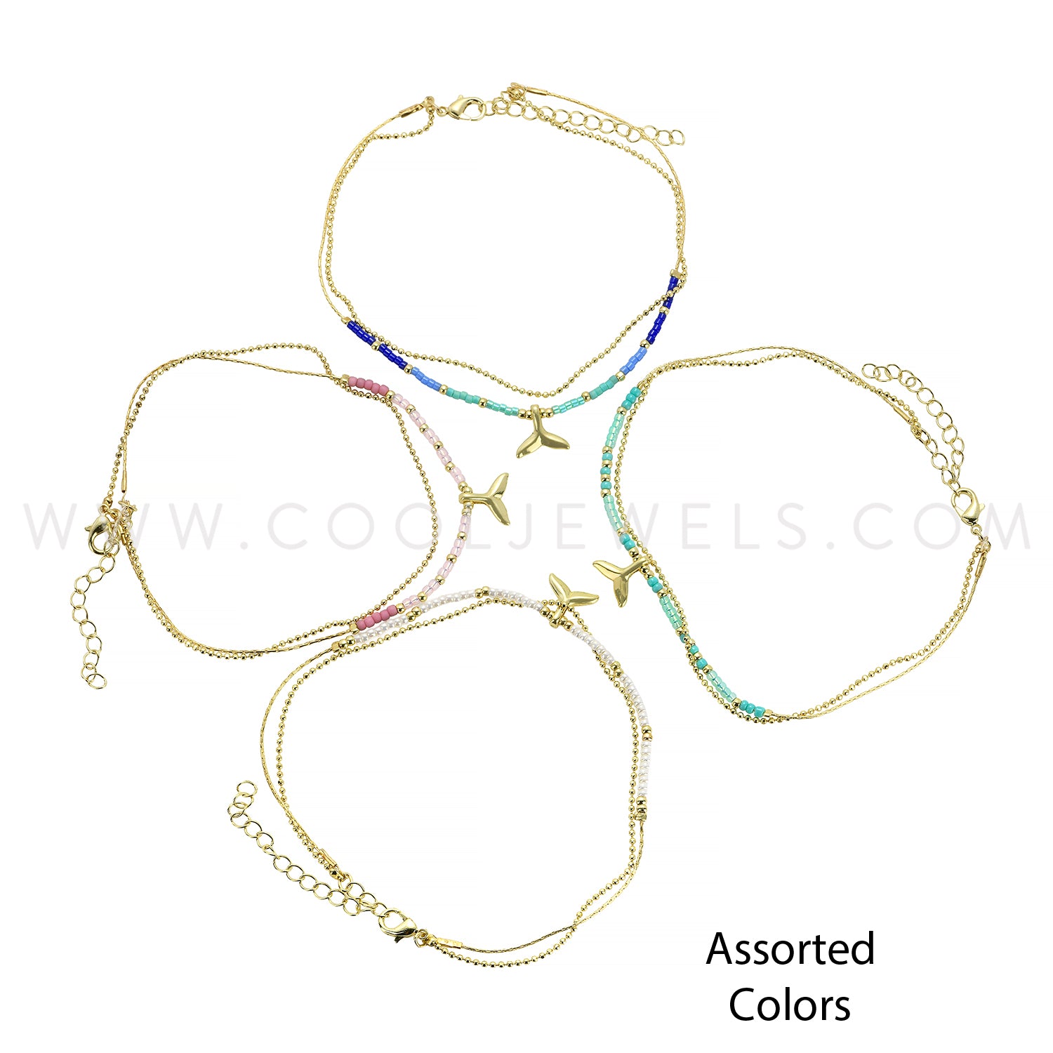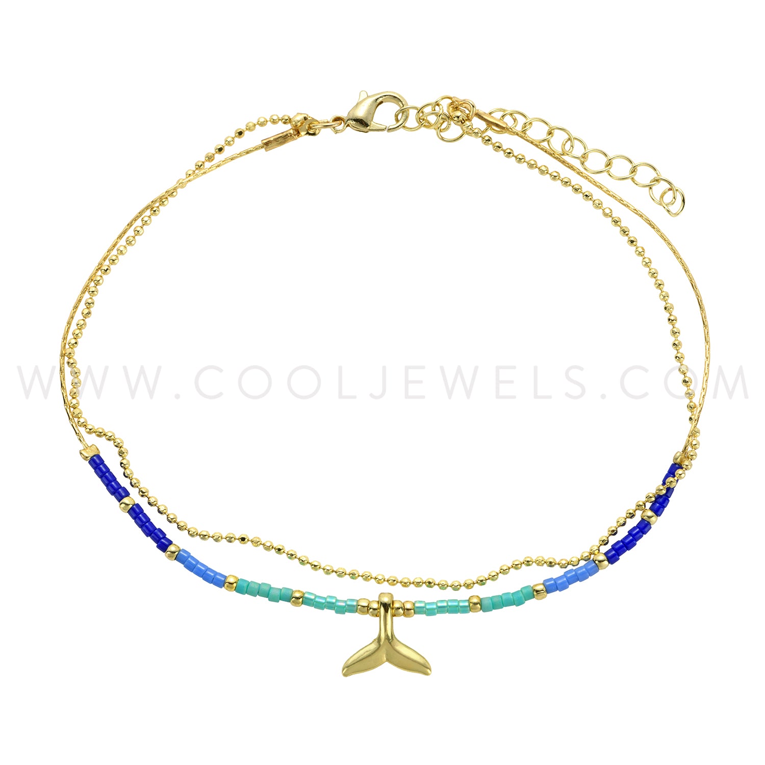 GOLD SLIDER ANKLET WITH BEADS & WHALE TAIL