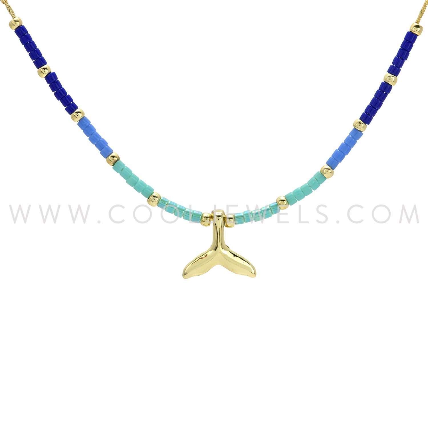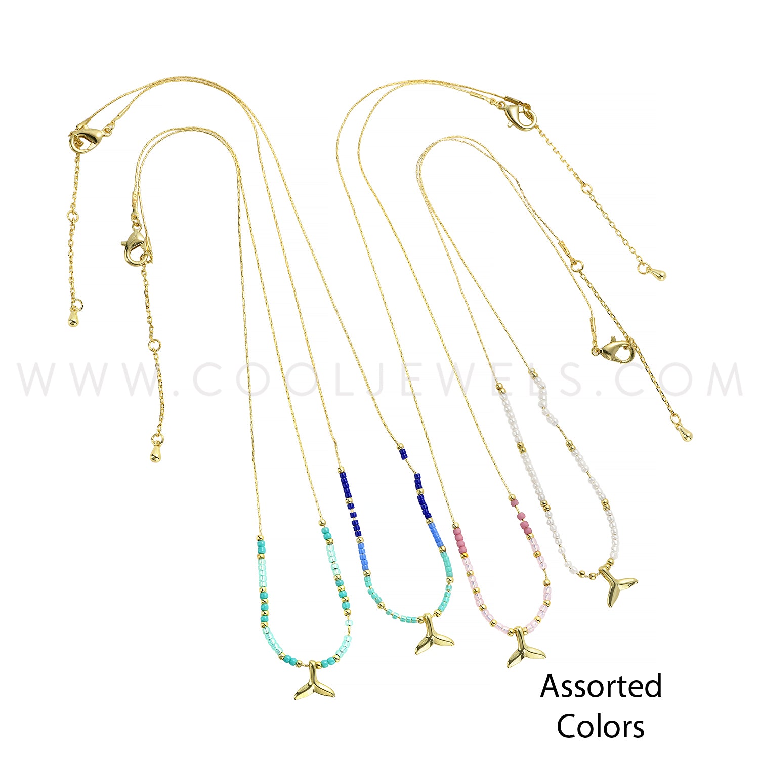 GOLD CHAIN NECKLACE WITH COLORED BEADS & WHALE TAIL