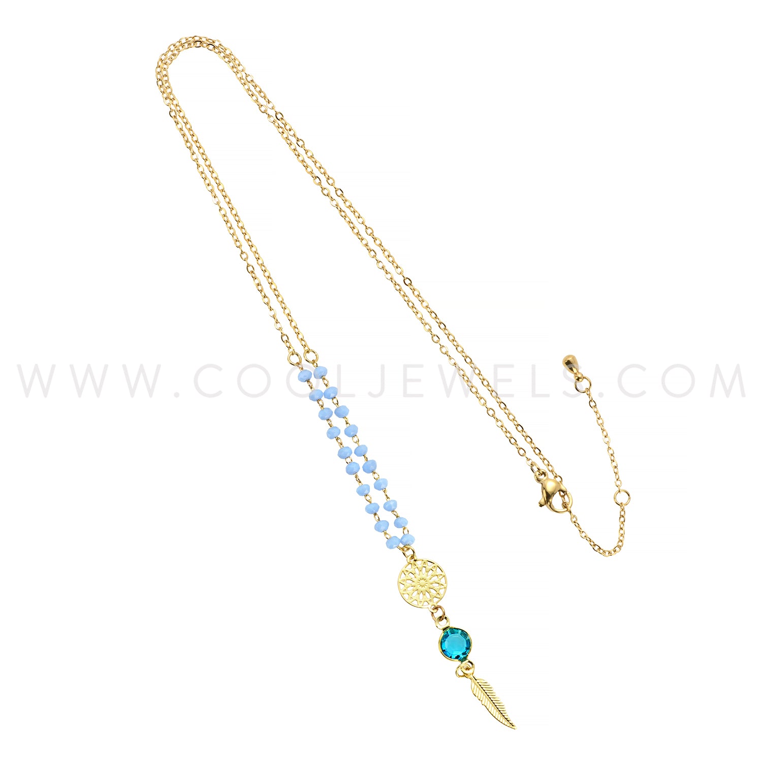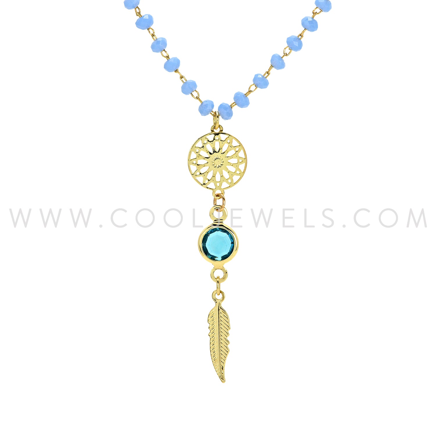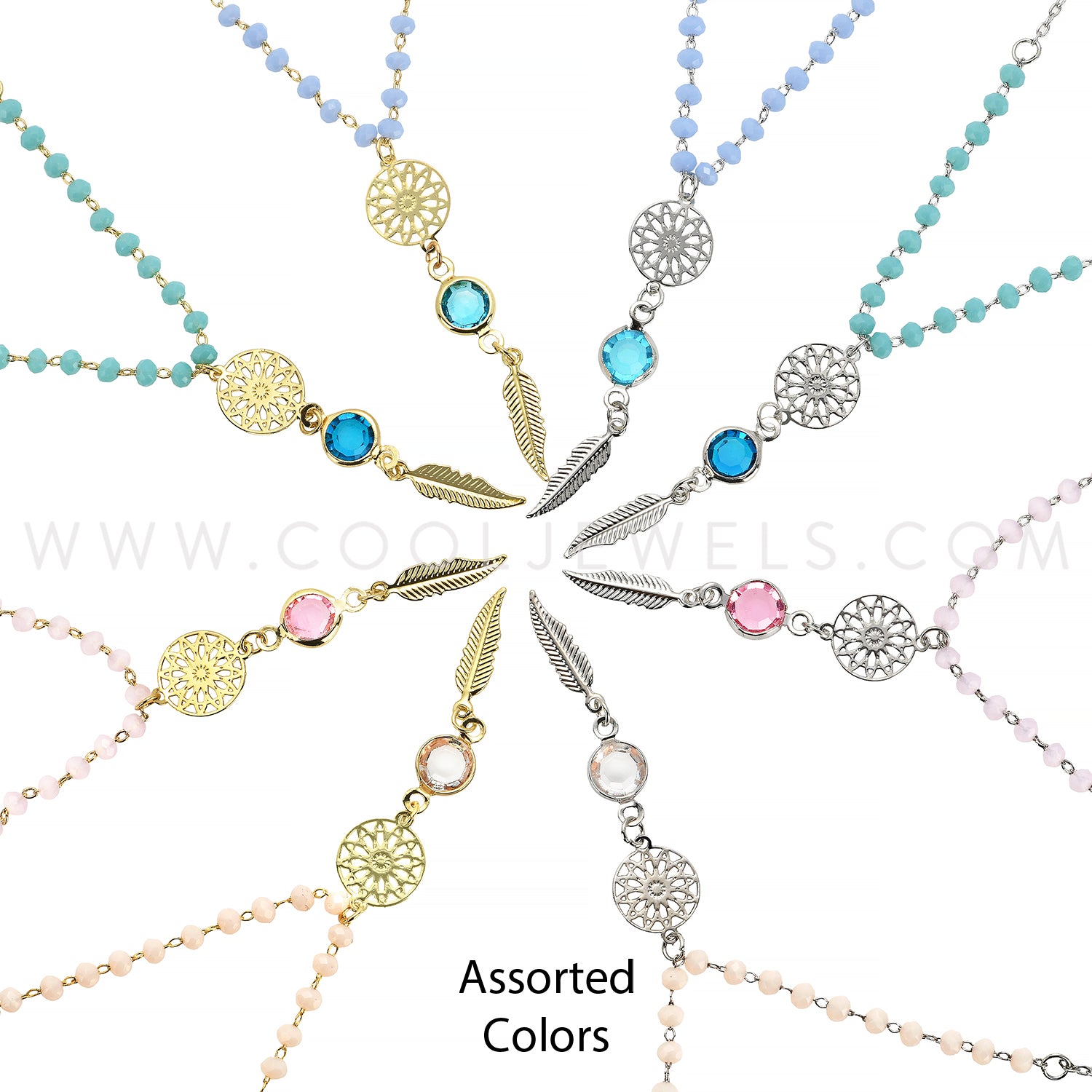 These petite Assorted Blue, Light Blue, Pink & Turquoise Cool Jewels® Elements by Candace Lauren® Dream Catcher, Feather & Colored Beads Necklace features a dream catcher with colored rhinestone and feather pendant with matching colored beads suspended on a chain link necklace.Petite 1/2" Inch Fashion Pendant comes in premium Elements packaging.
