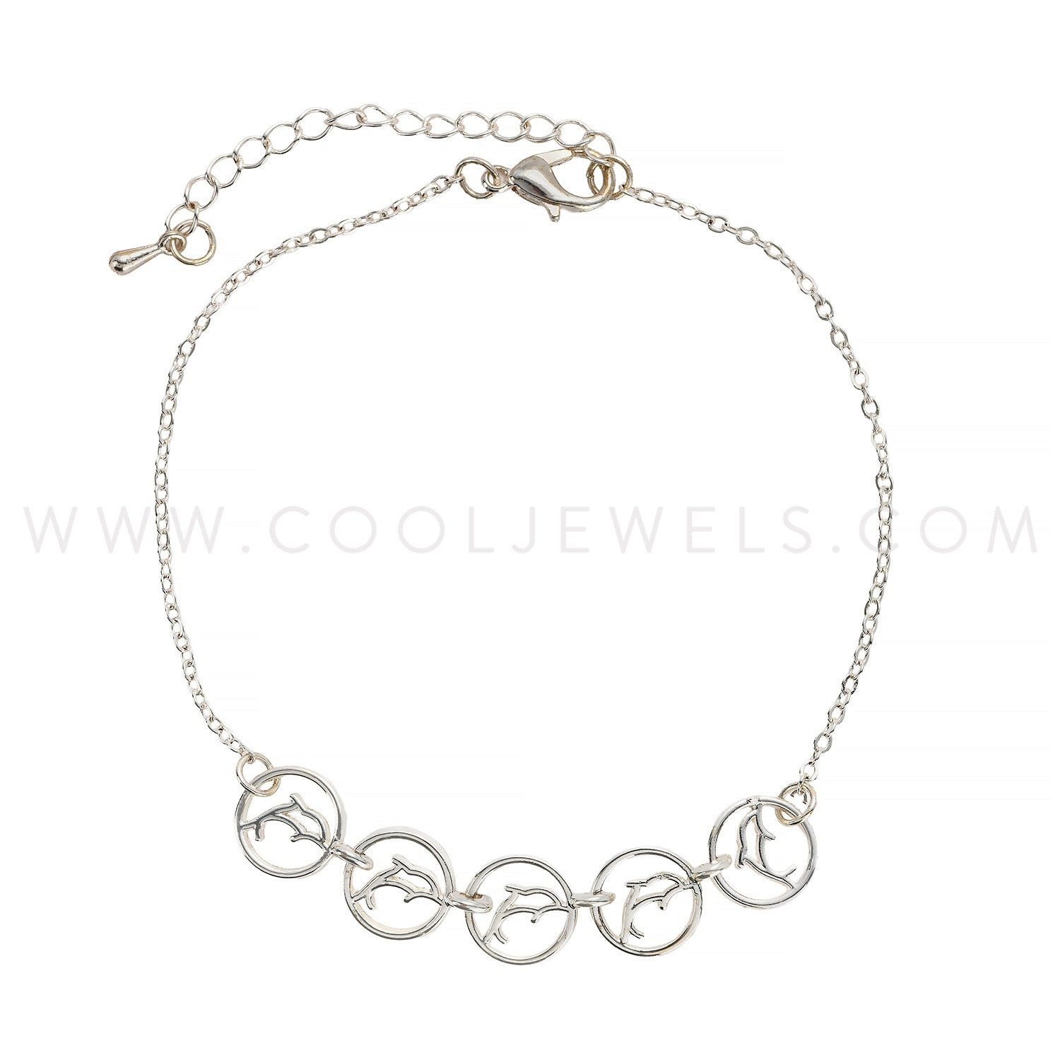LINK CHAIN ANKLET WITH DOLPHIN DISC PENDANTS - CARDED