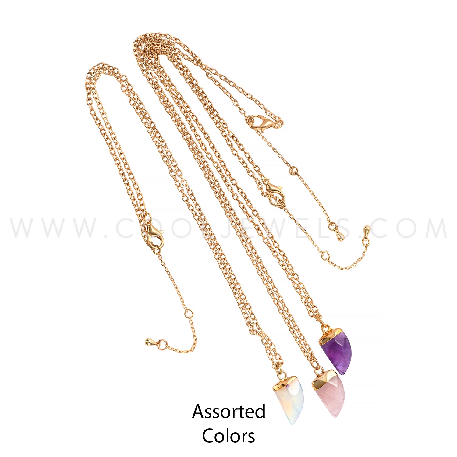 NECKLACE WITH CRYSTAL FACETED TOOTH PENDANT CARDED - ASSORTED
