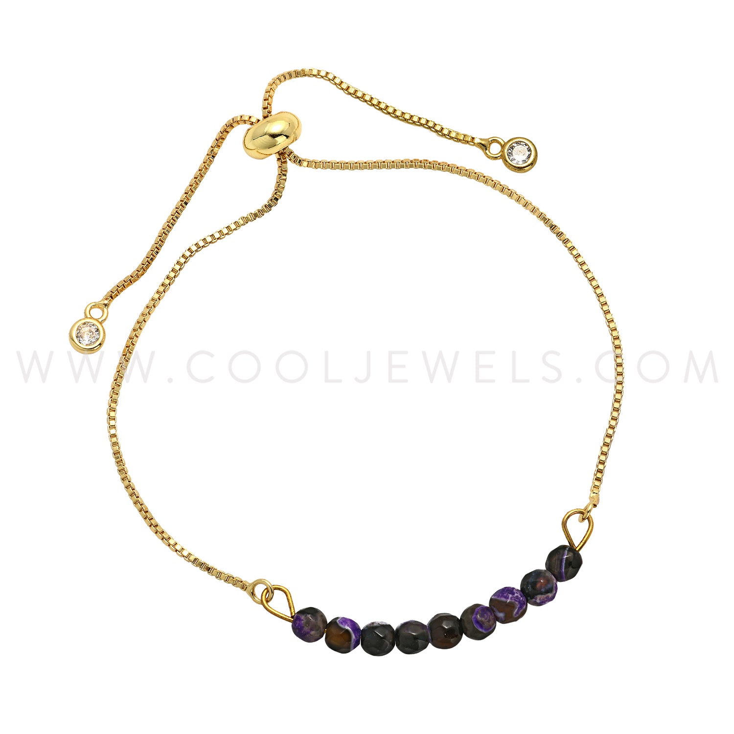 BOX CHAIN SLIDER BRACELET WITH COLORED BEADS CARDED - ASSORTED COLORS
