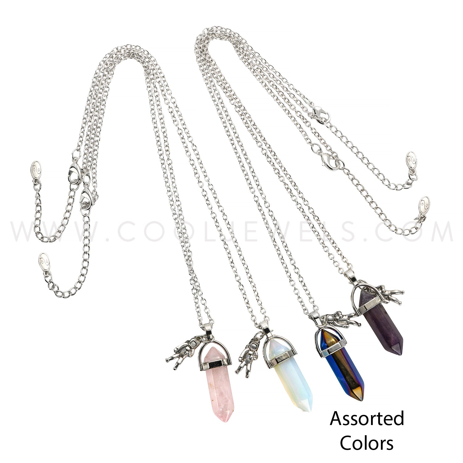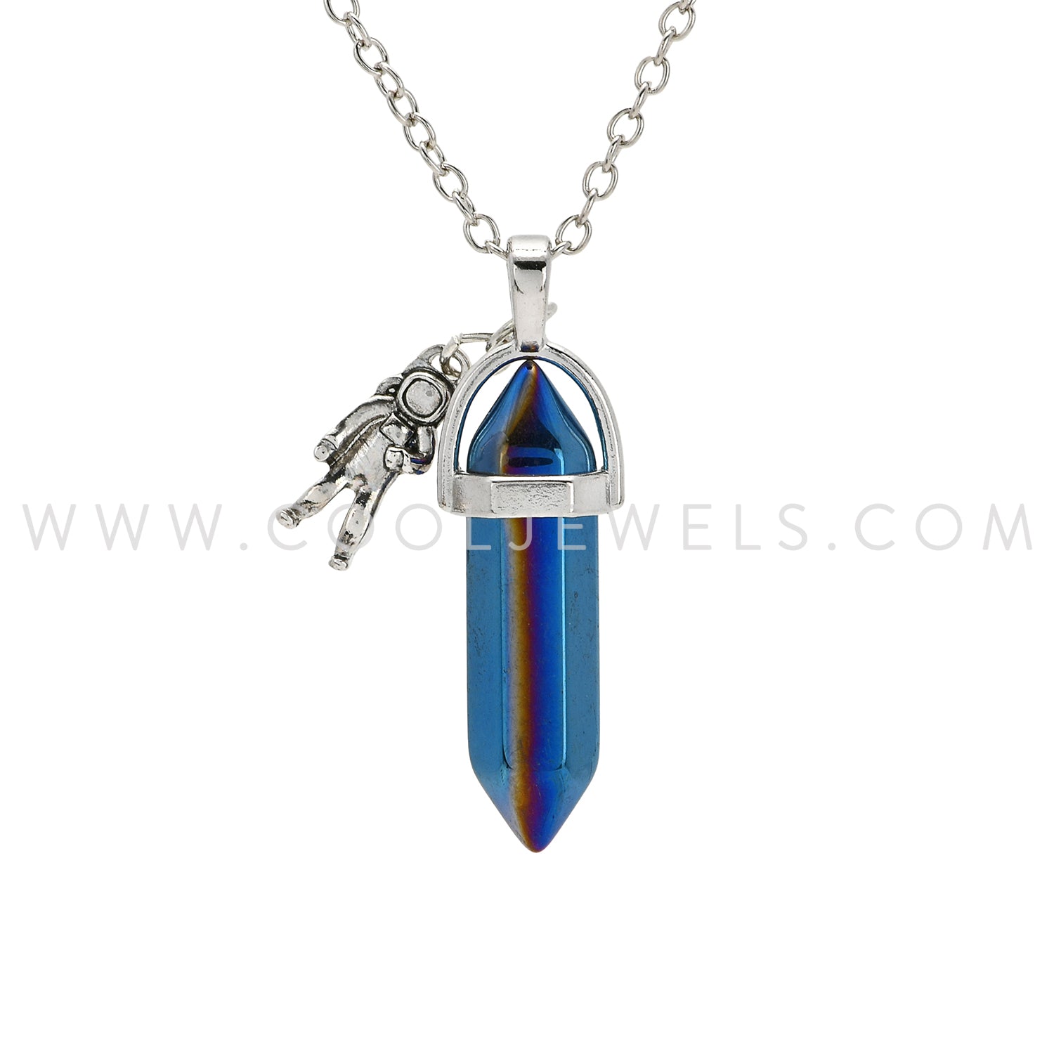 SILVER NECKLACE WITH ASTRONAUT & CRYSTAL PENDANT - ASSORTED