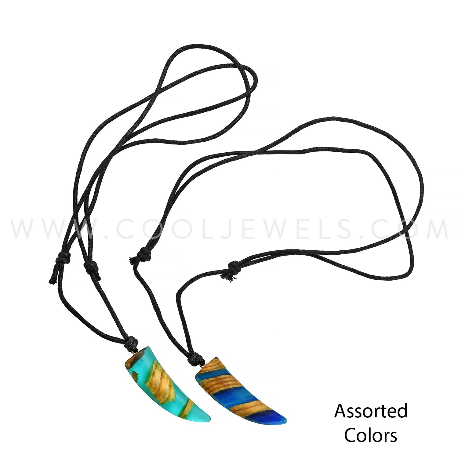 These Cool Jewels® Elements by Candace Lauren® Acrylic & Wood Tooth Pendant Necklaces features a blue acrylic and natural wood tooth pendant on a black slider cord necklace.Fashion Pendant comes in premium Elements packaging.