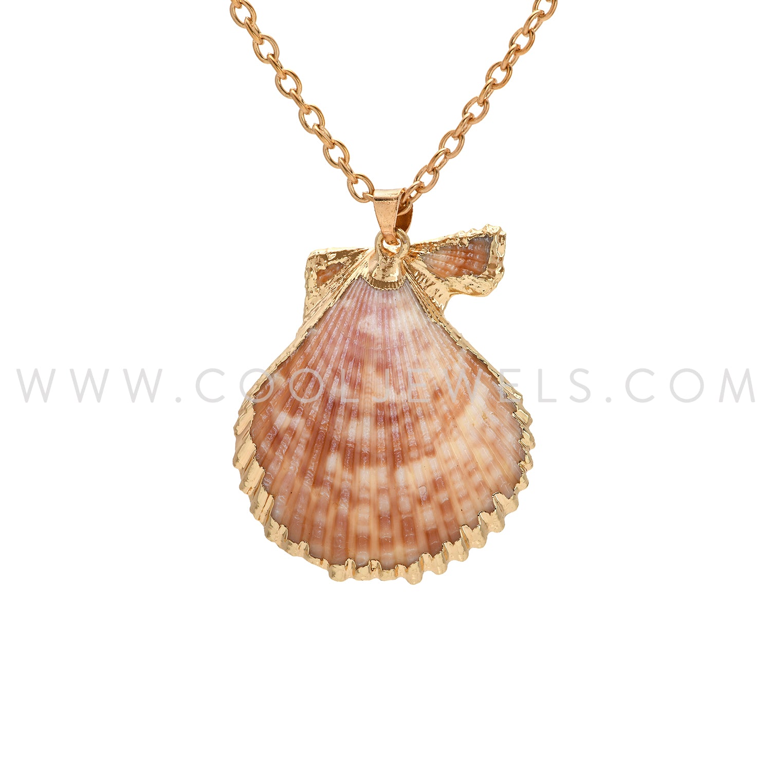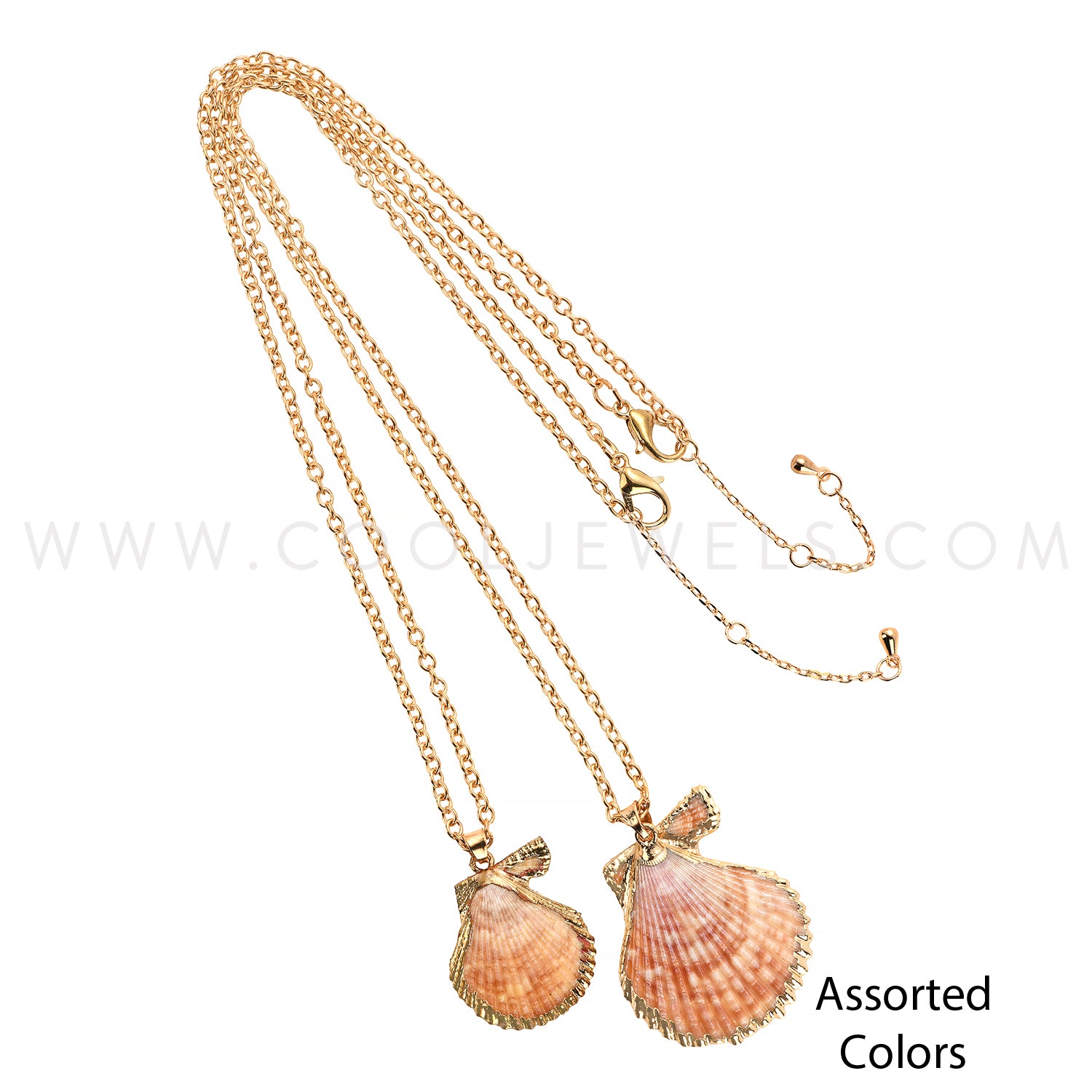 GOLD LINK CHAIN NECKLACE WITH PECTIN SHELL & GOLD EDGE PENDANT - ASSORTED