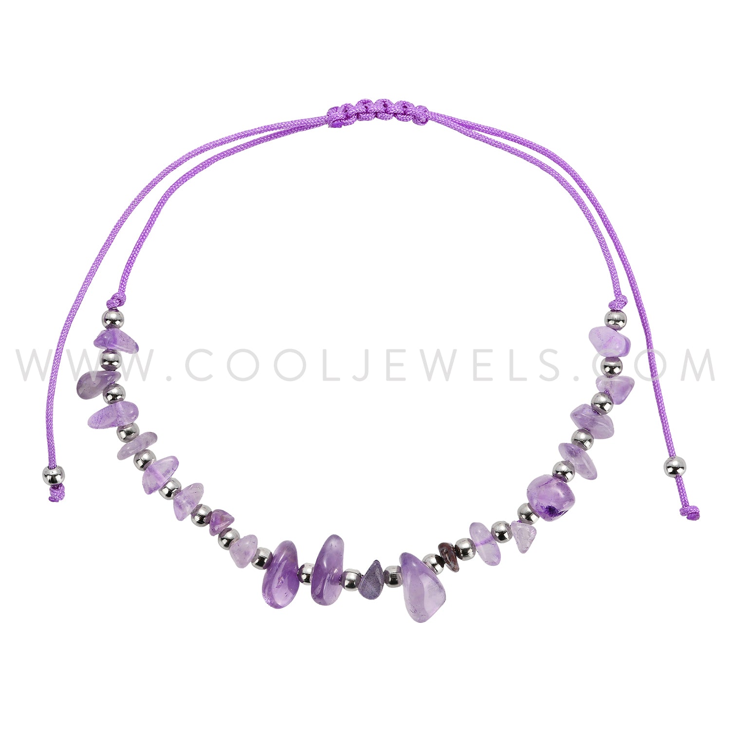 SLIDER CORD ANKLET WITH AMETHYST STONE CHIPS - CARDED