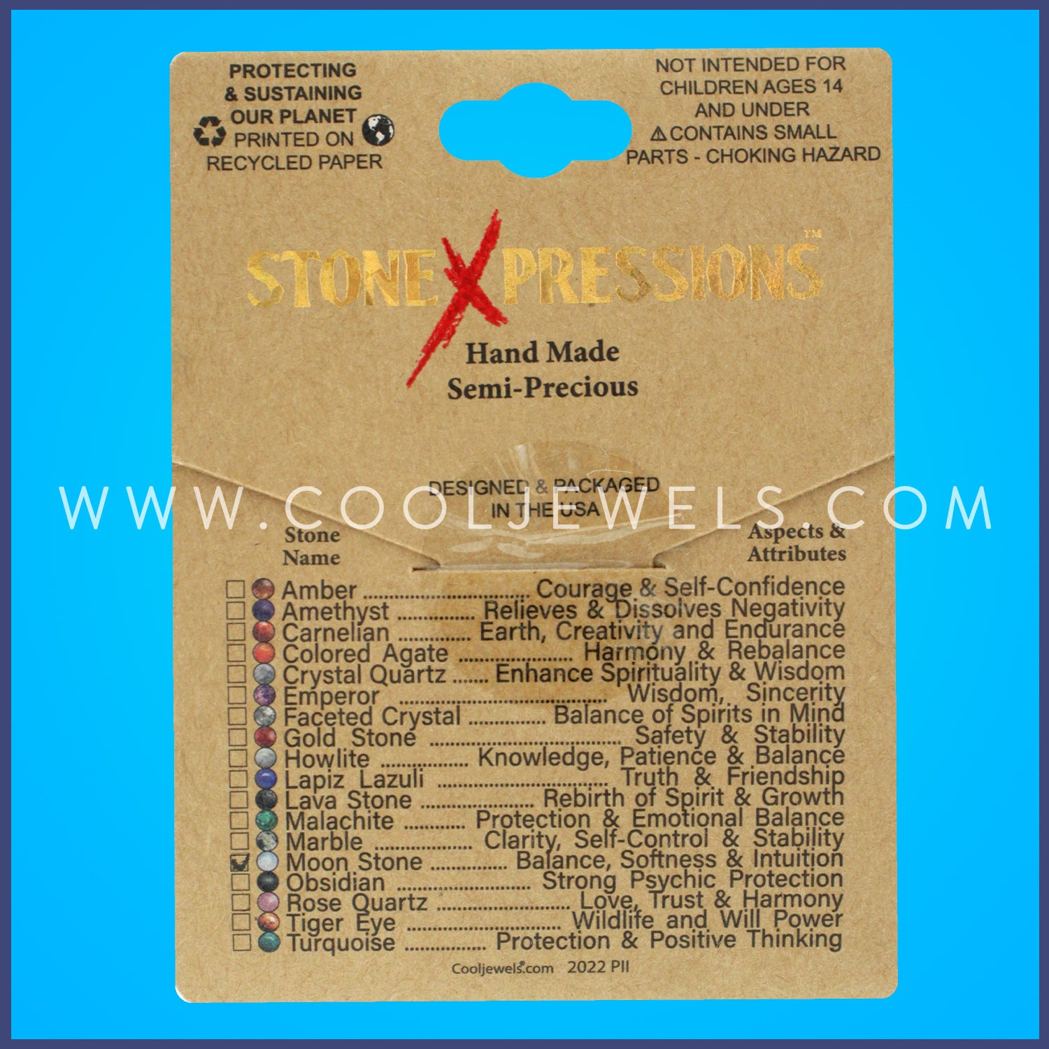 LINK CHAIN NECKLACE WITH MOONSTONE CHIPS - CARDED