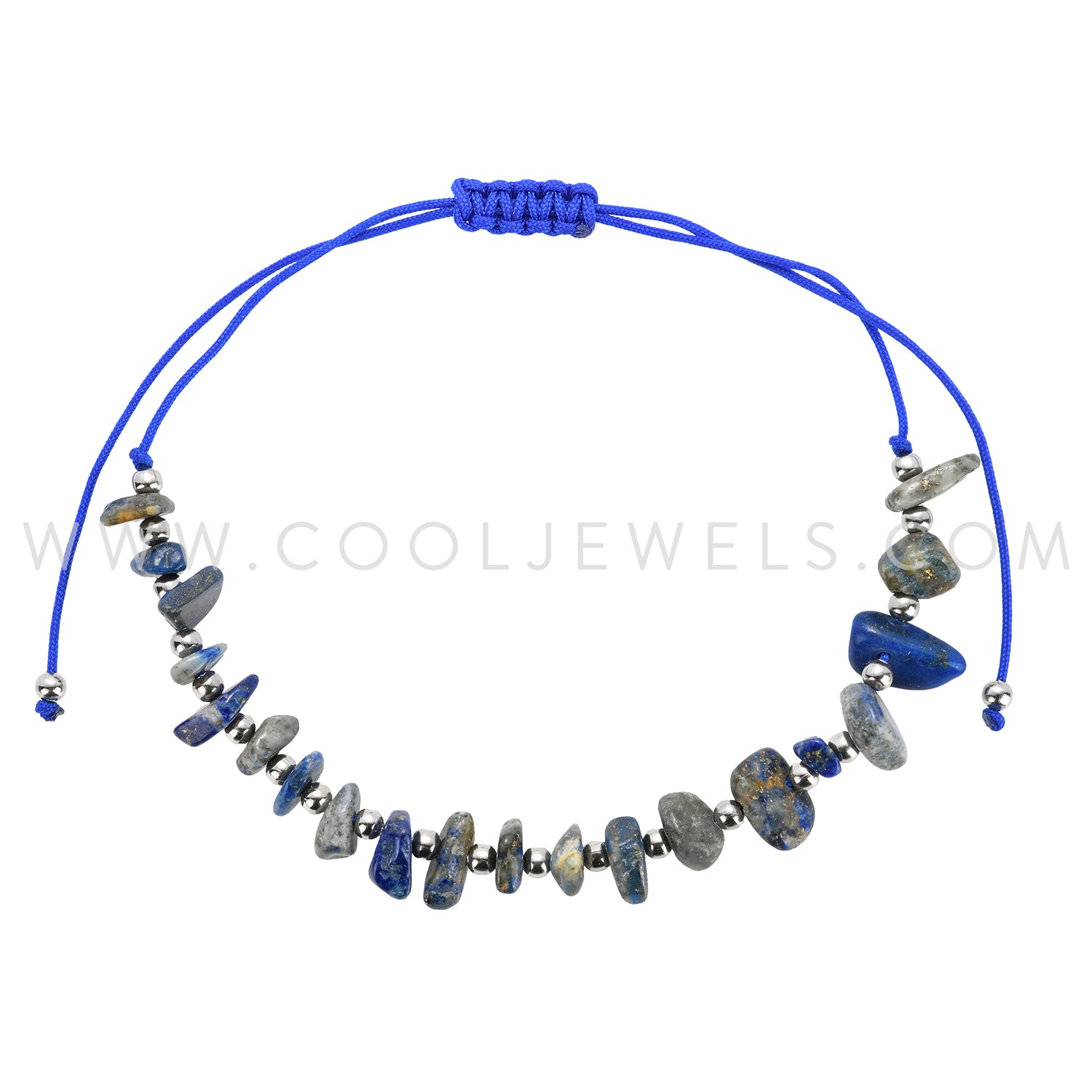 SLIDER CORD ANKLET WITH SODALITE STONE CHIPS - CARDED