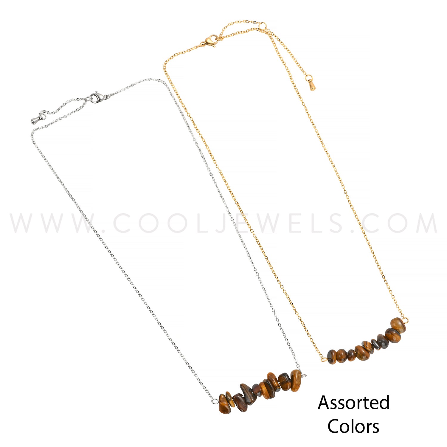 LINK CHAIN NECKLACE WITH TIGER EYE STONE CHIPS - CARDED
