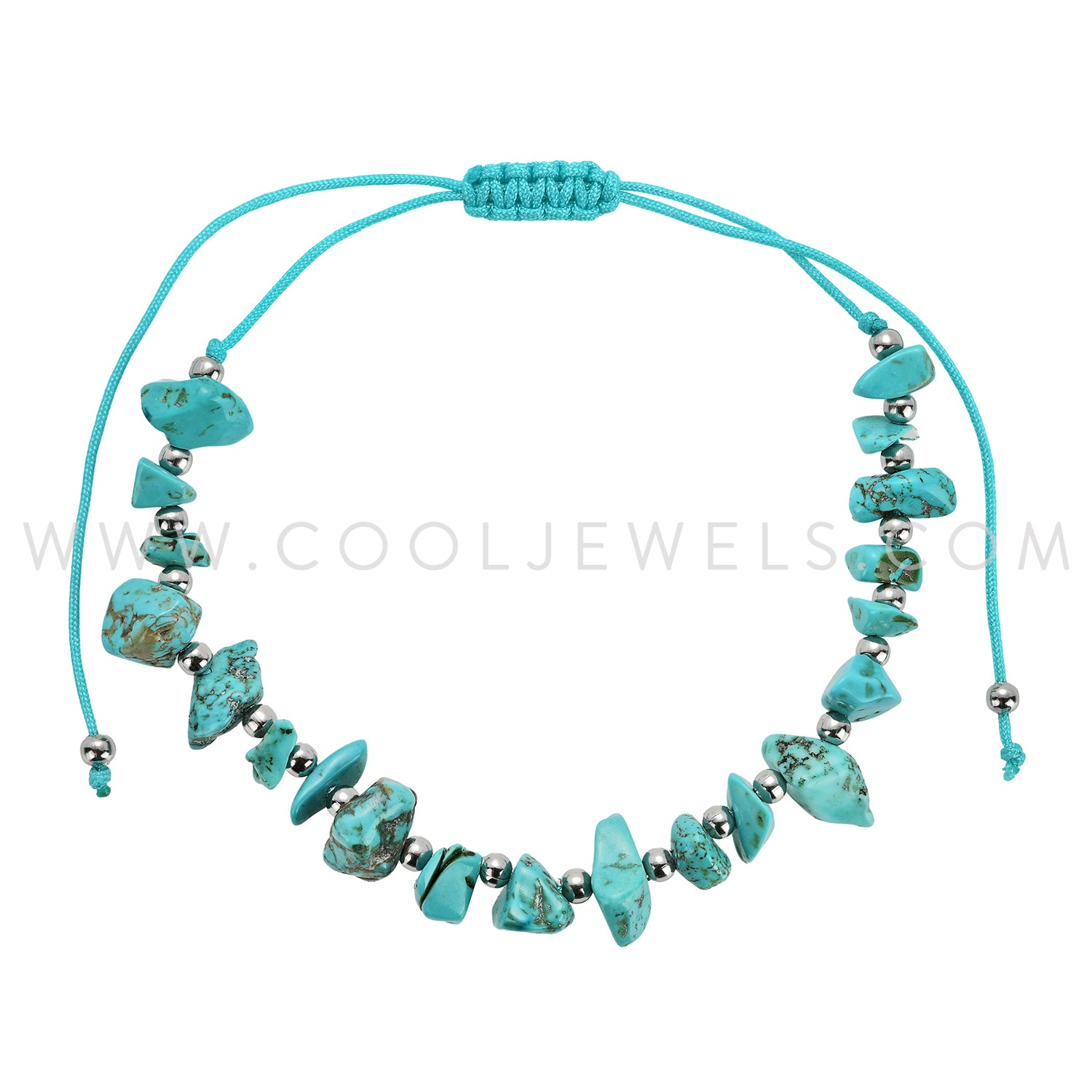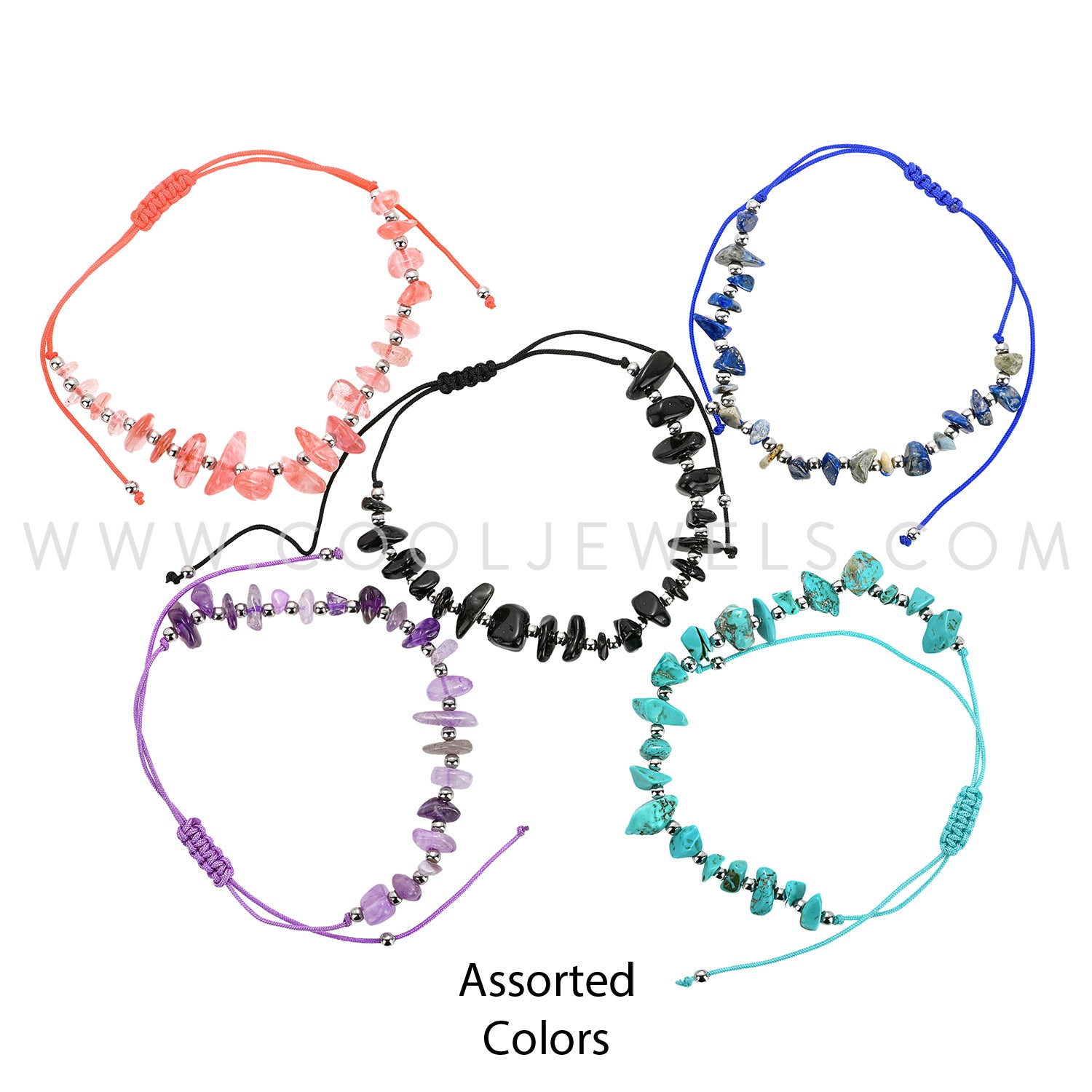 SLIDER CORD ANKLET WITH STONE CHIPS ASSORTED - CARDED