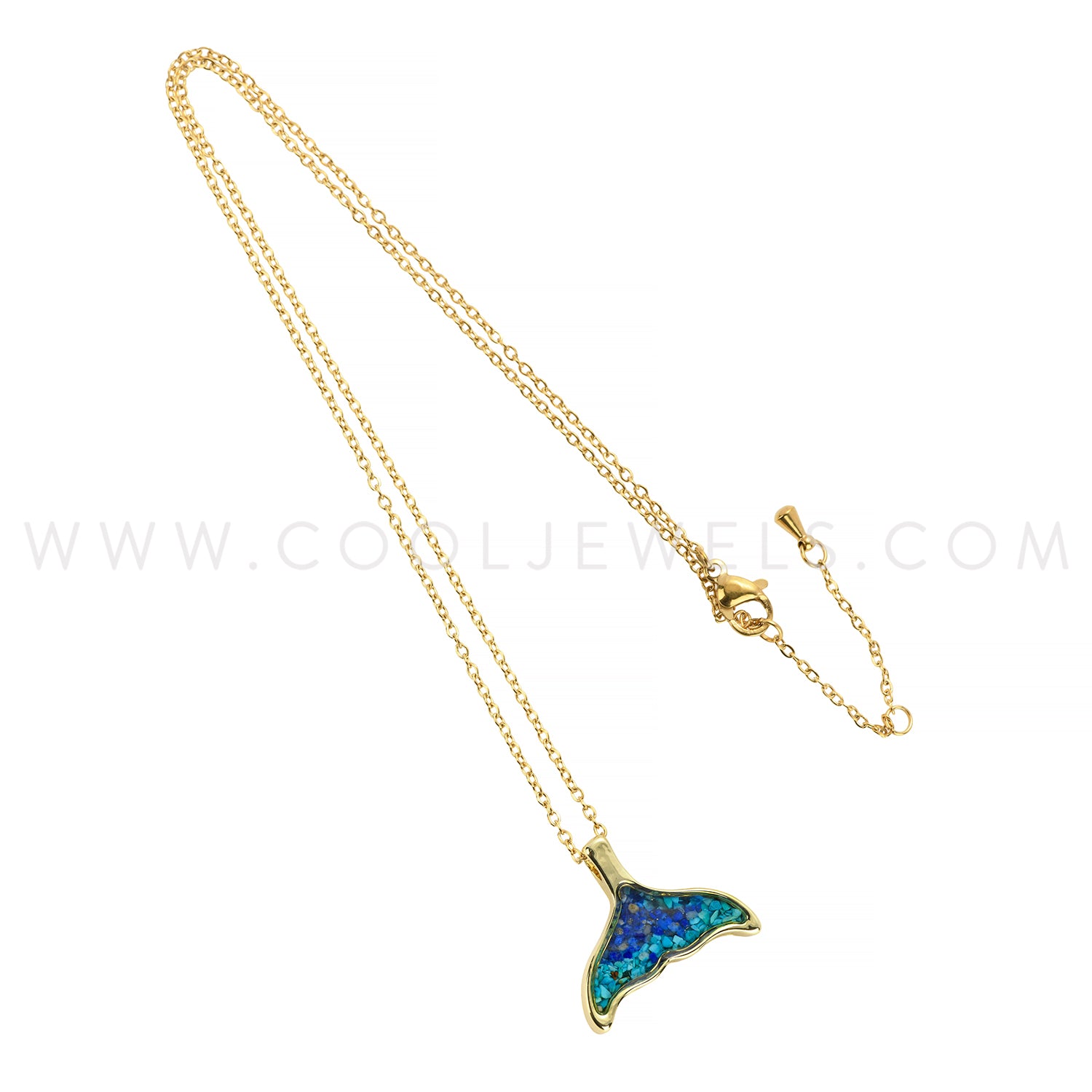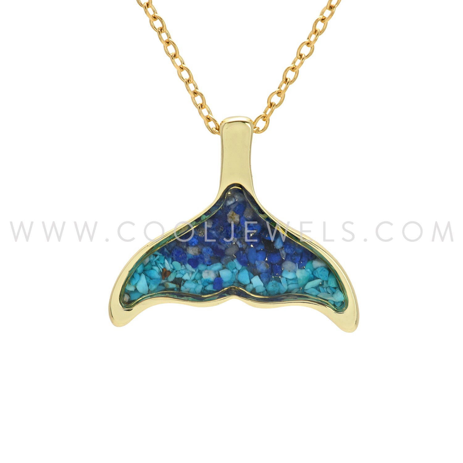LINK CHAIN NECKLACE WITH CRUSHED STONE WHALE TAIL PENDANT ASSORTED - CARDED