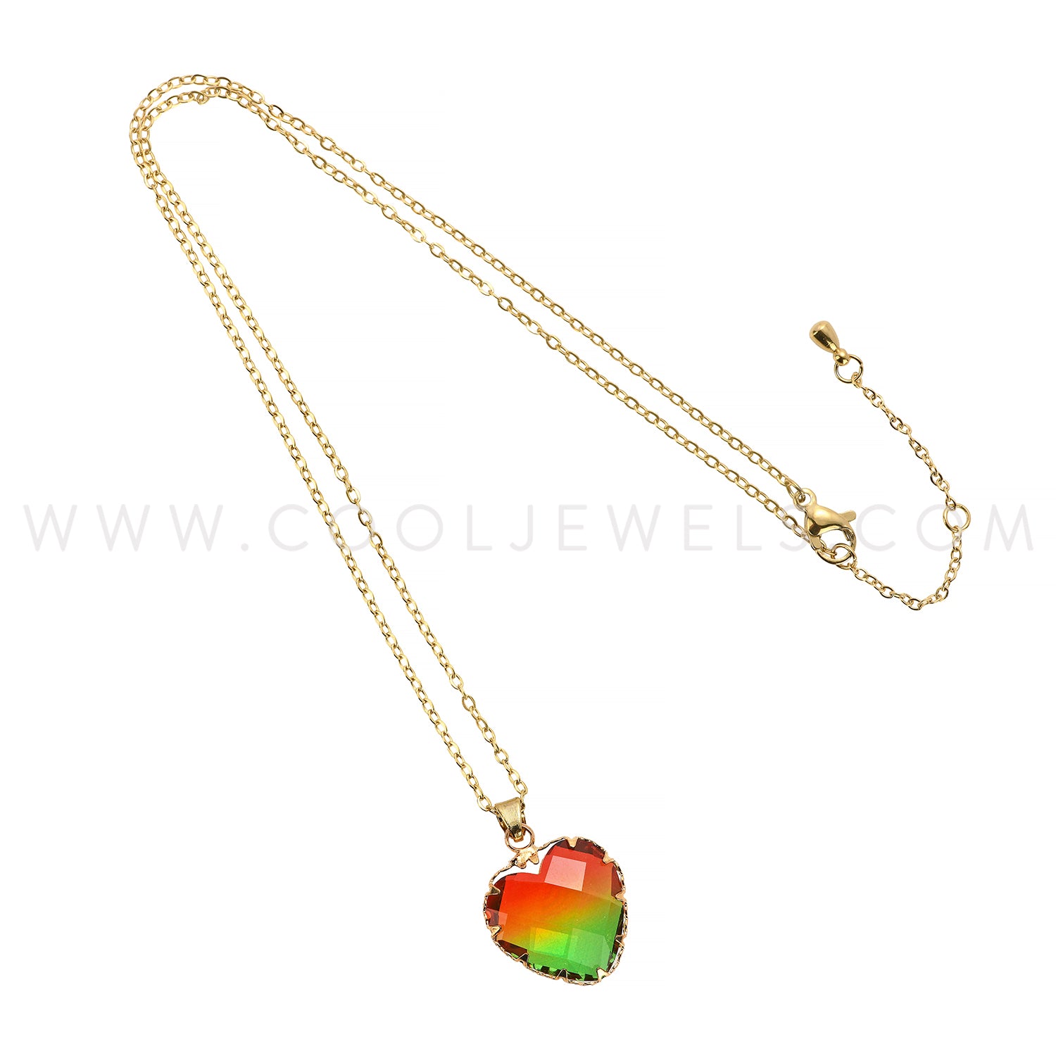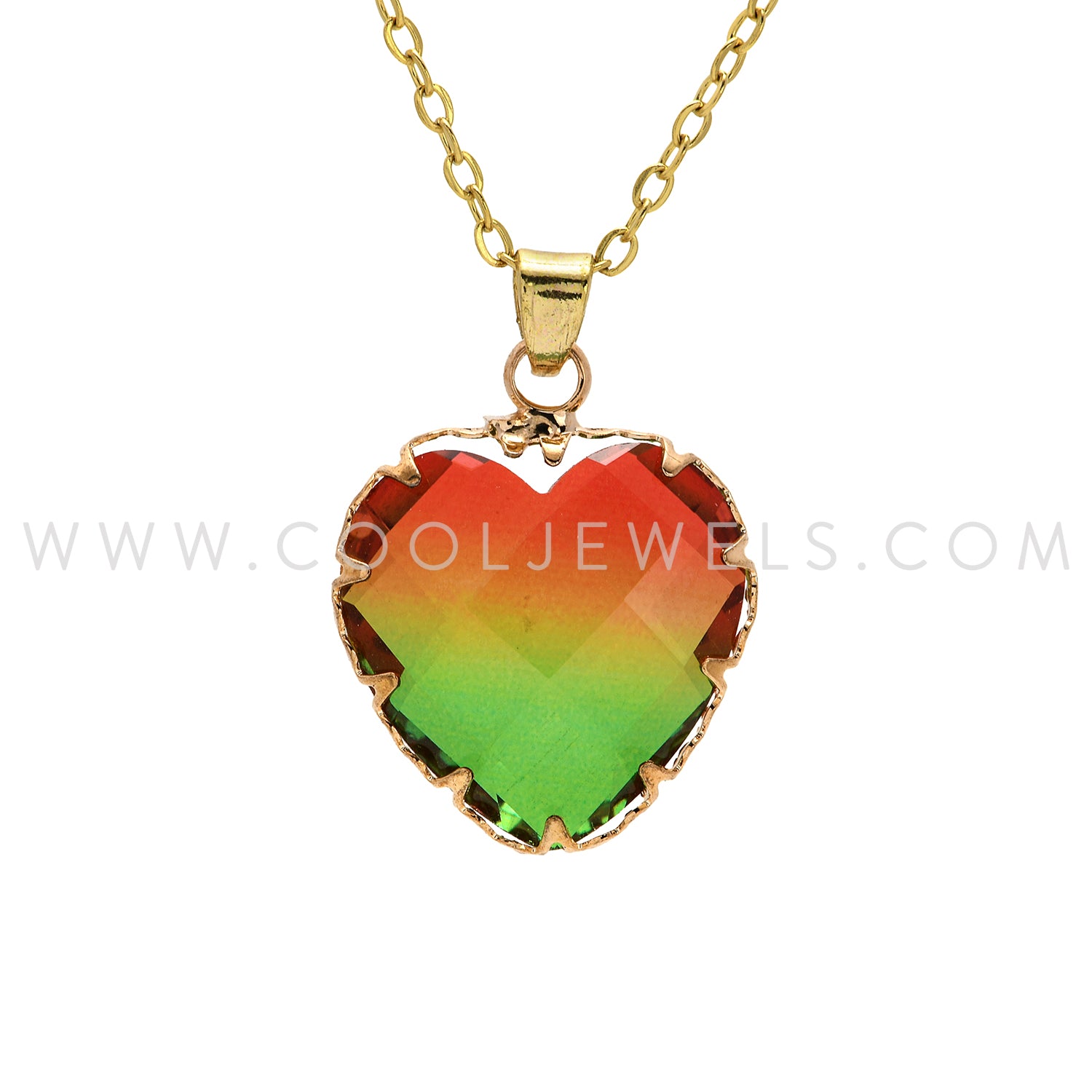 CHAIN NECKLACE WITH FACETED HEART PENDANT ASSORTED COLORS - CARDED