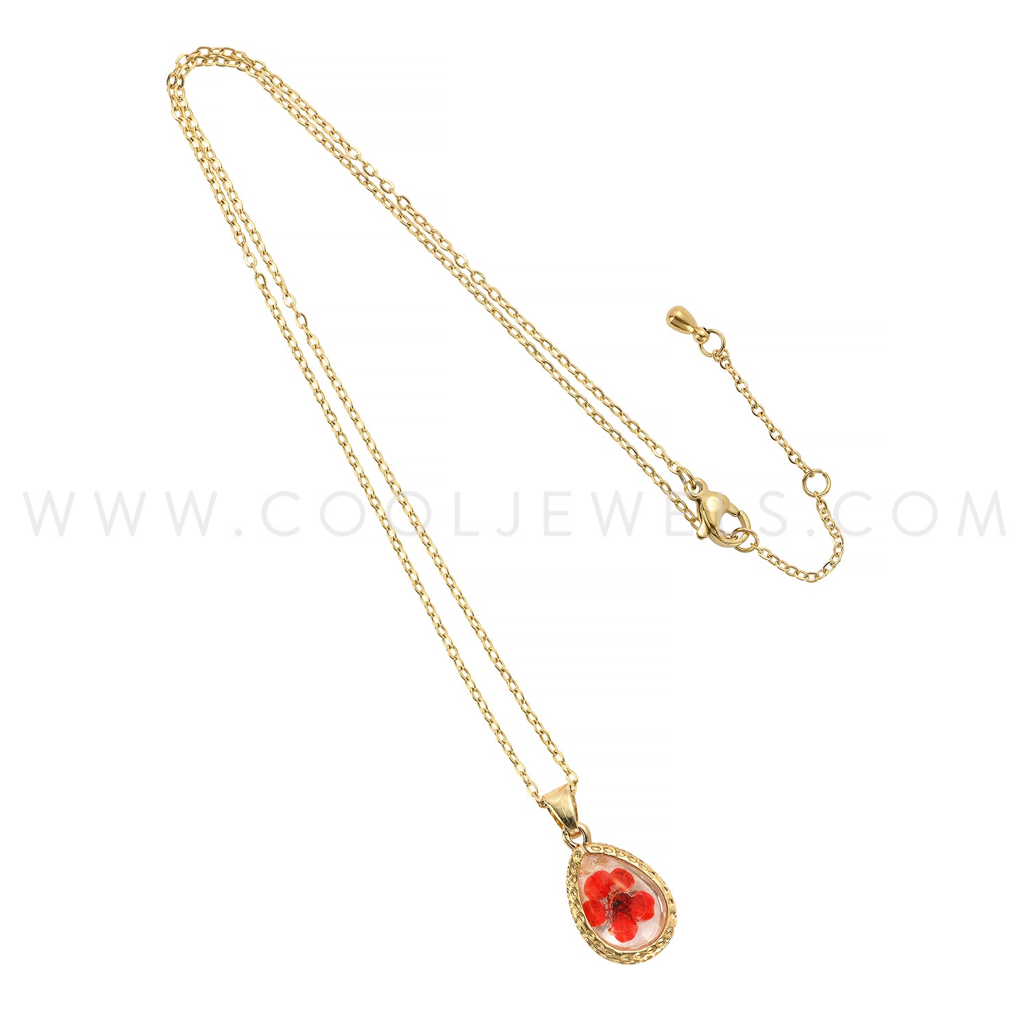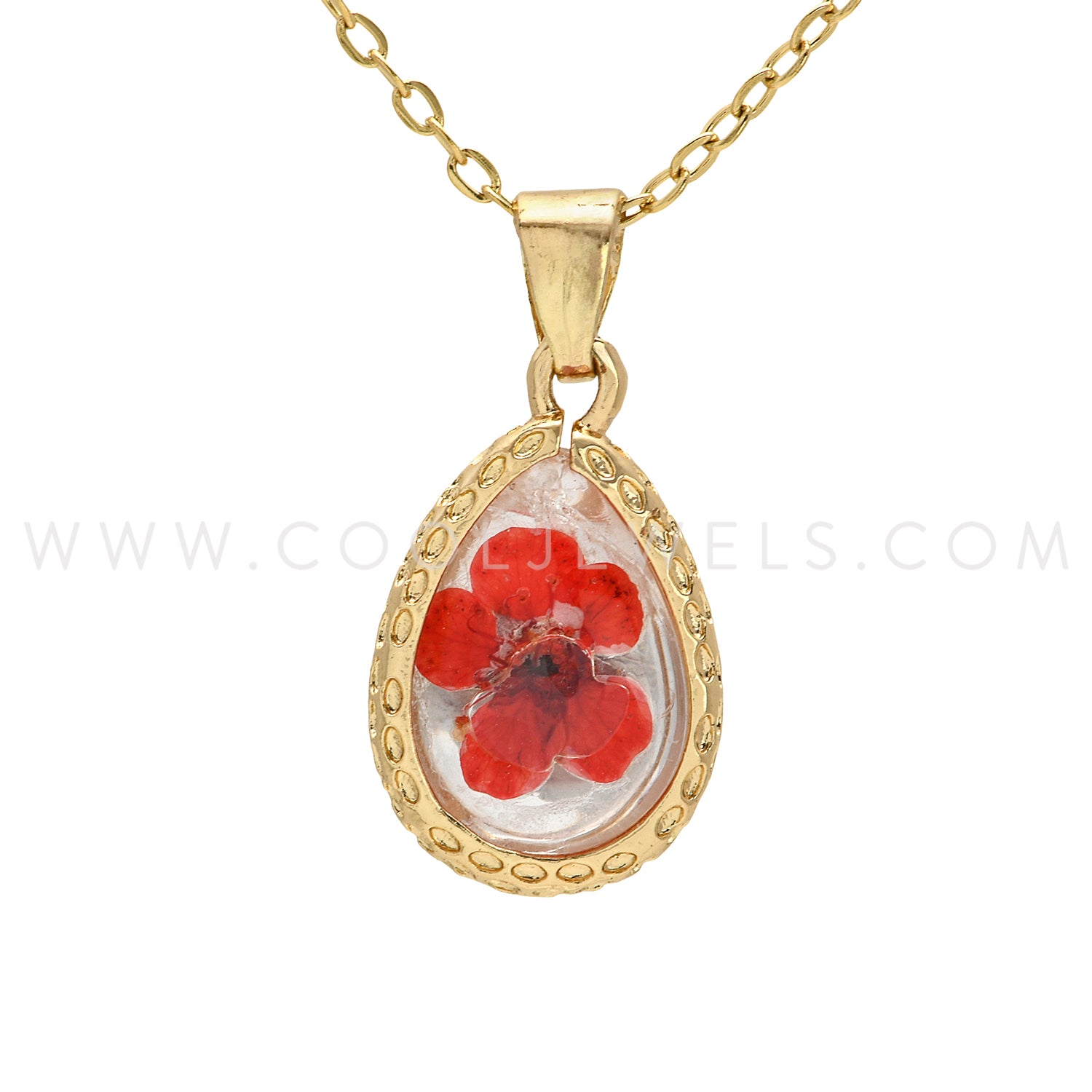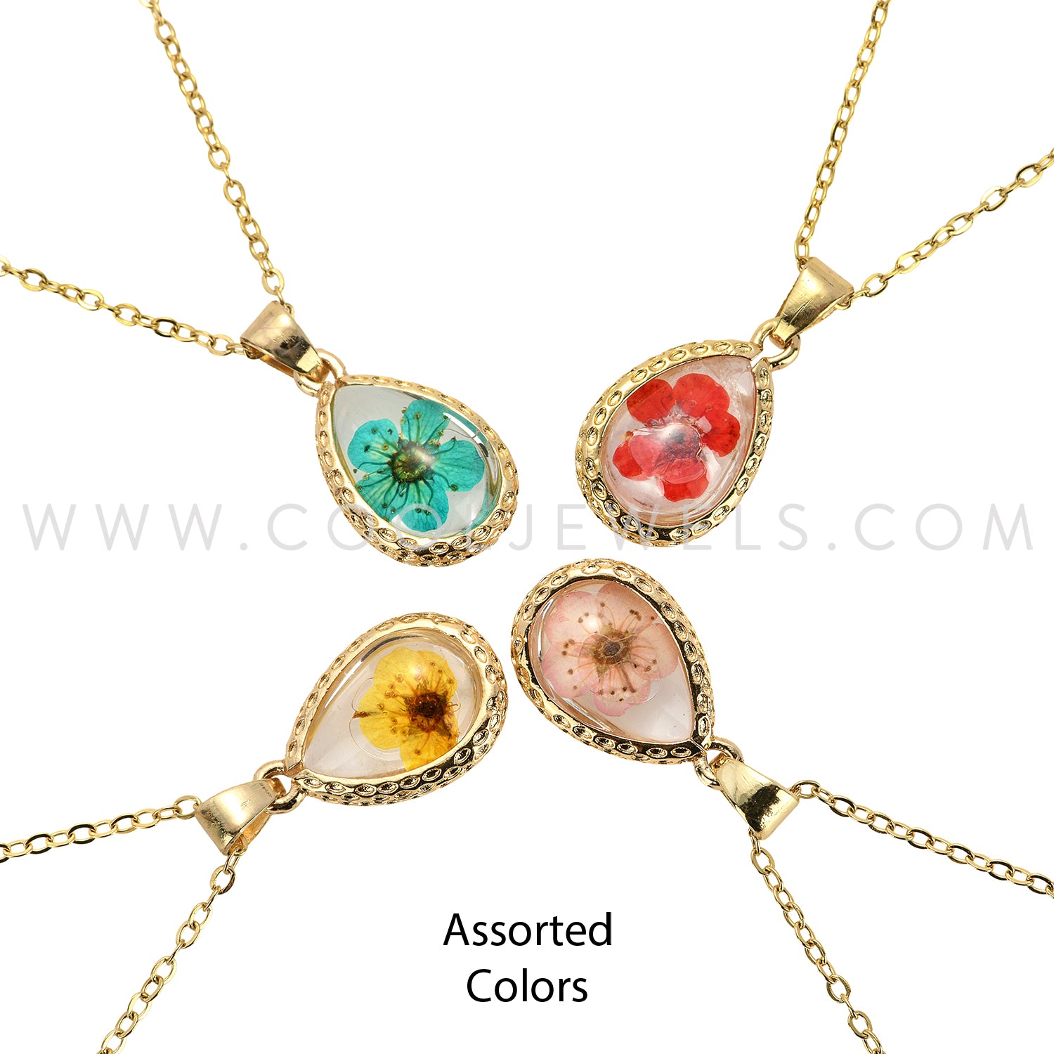 CHAIN NECKLACE WITH FRAMED FLORAL TEARDROP PENDANT ASSORTED - CARDED