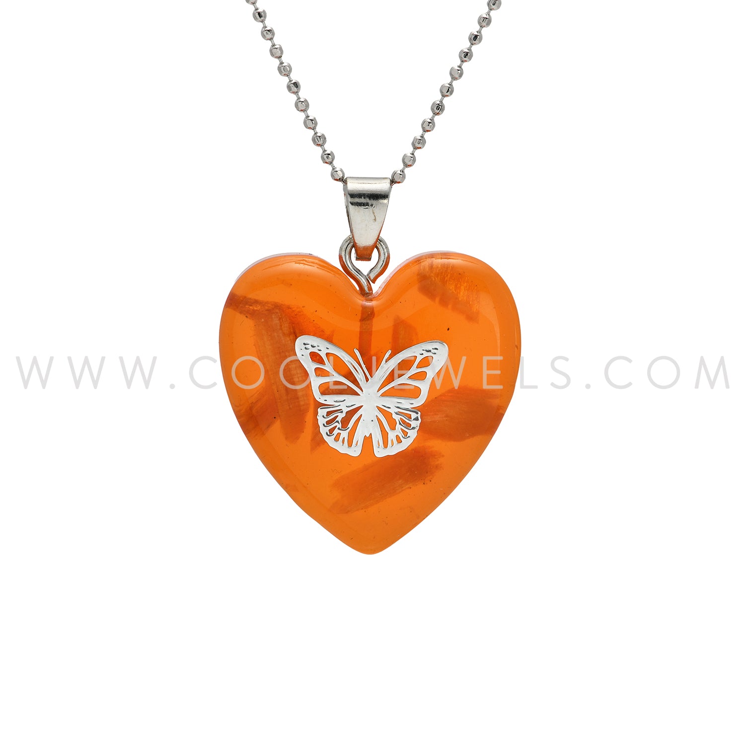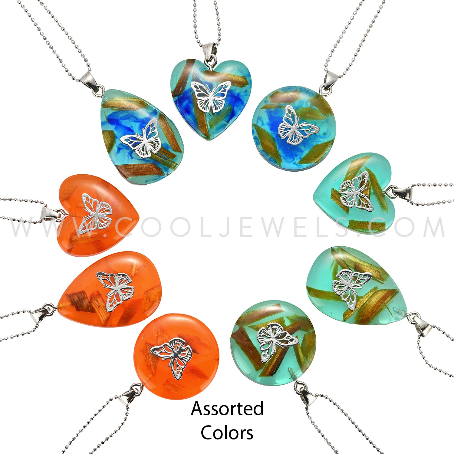 CHAIN NECKLACE WITH RESIN & WOOD PENDANT WITH BUTTERFLY ASSORTED -CARDED