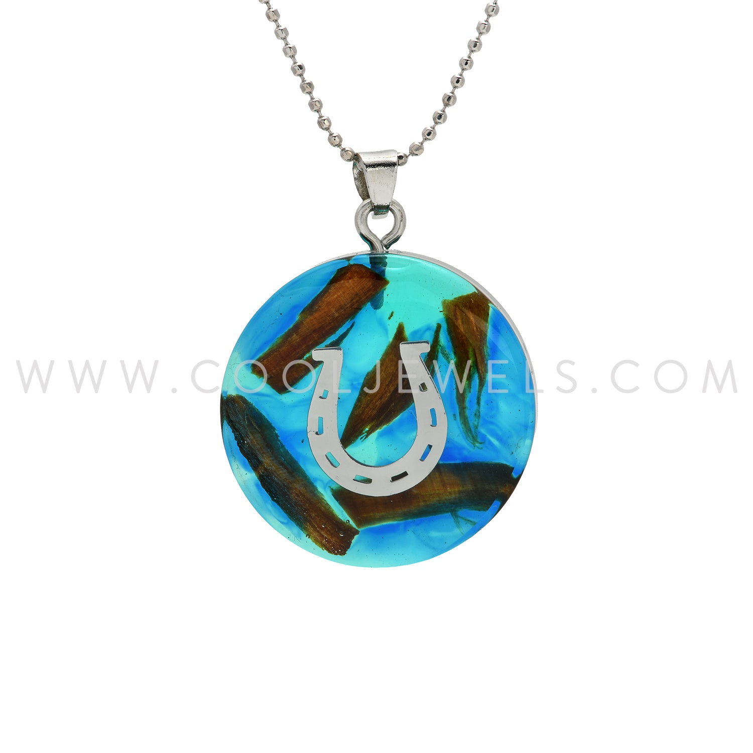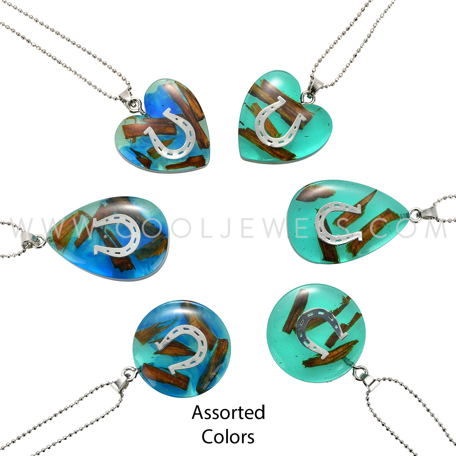 CHAIN NECKLACE WITH RESIN & WOOD PENDANT WITH HORSESHOE ASSORTED -CARDED