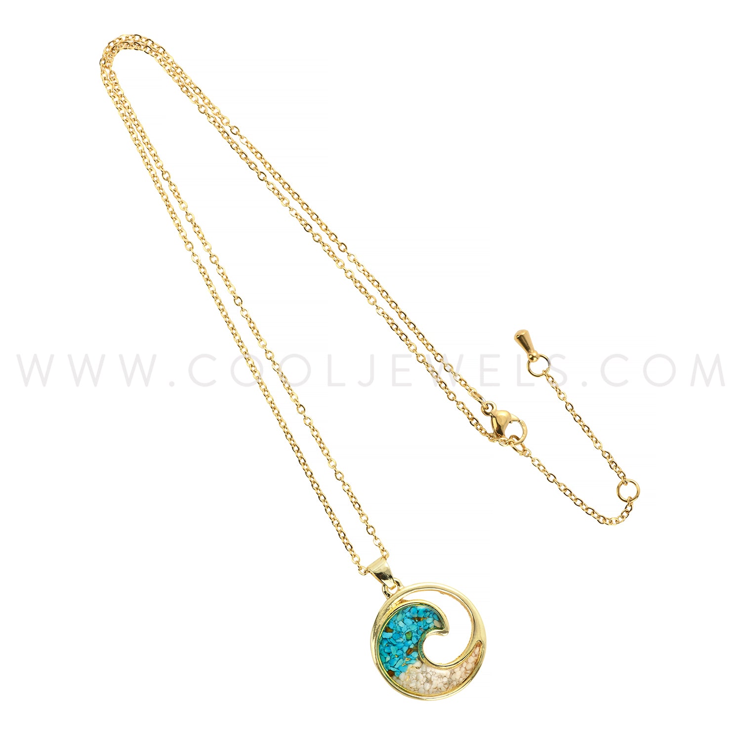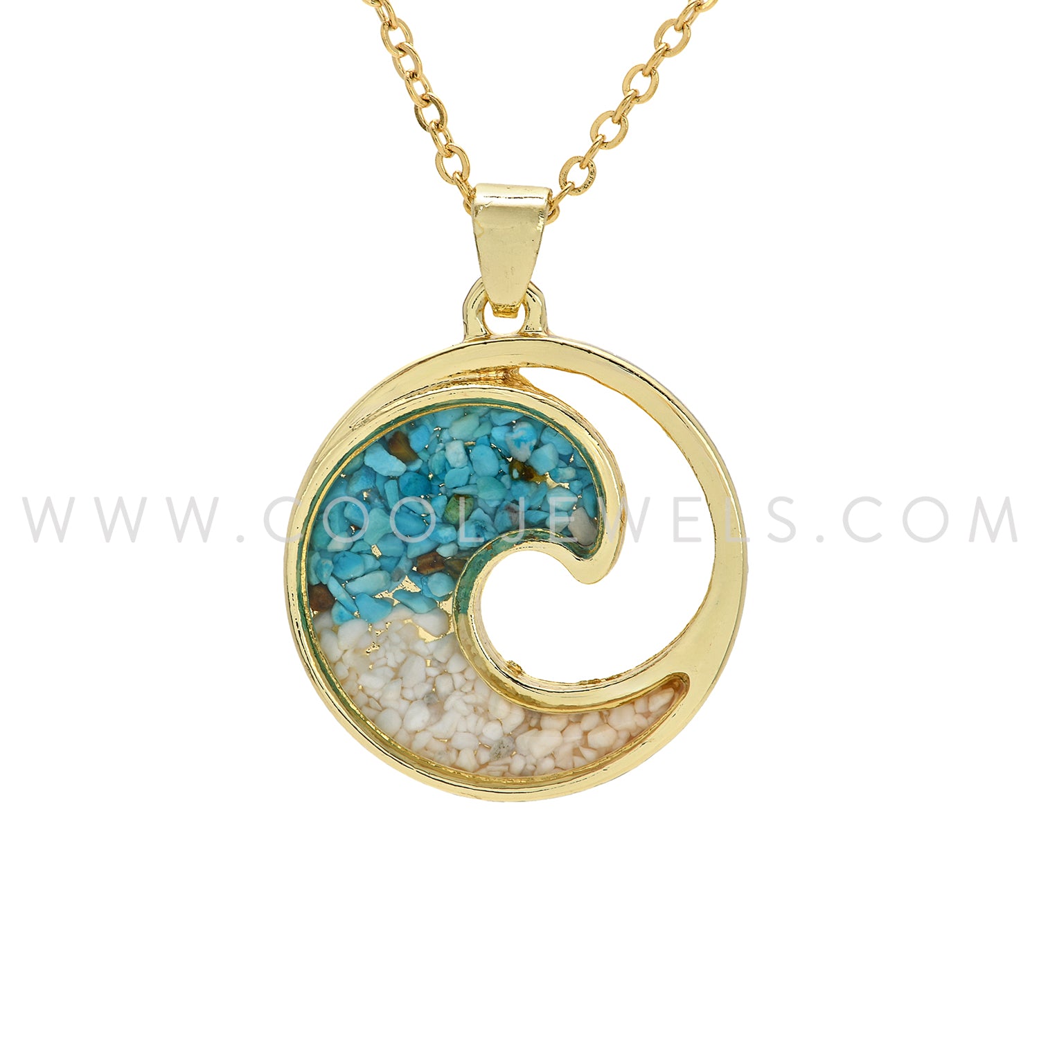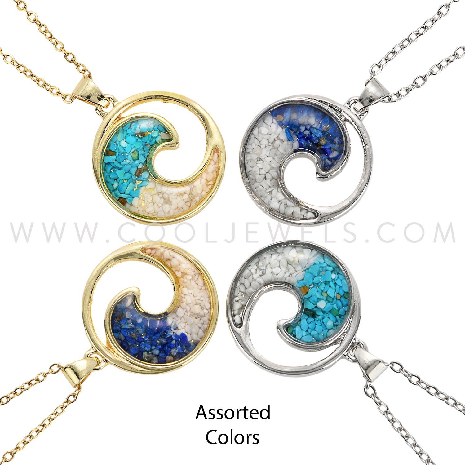 LINK CHAIN NECKLACE WITH CRUSHED STONE WAVE ASSORTED - CARDED