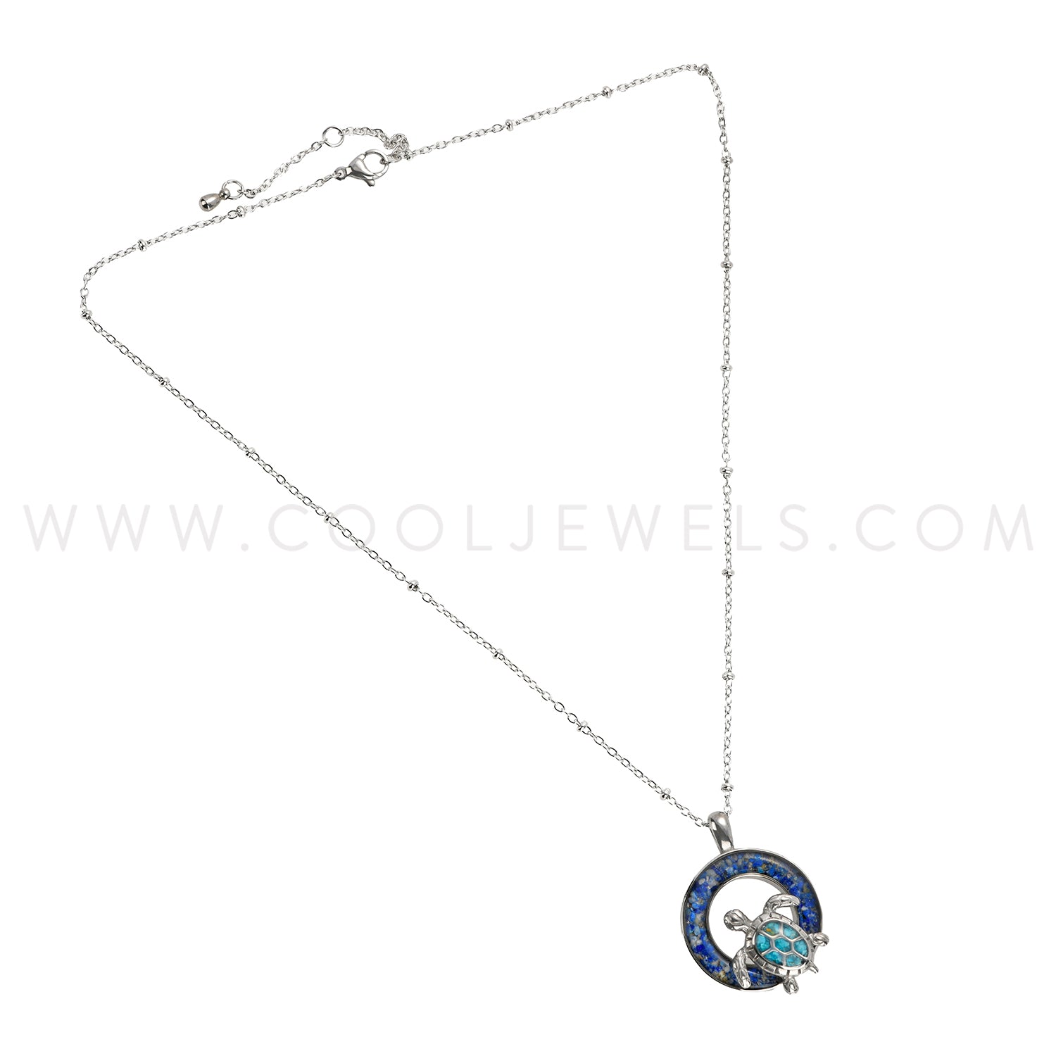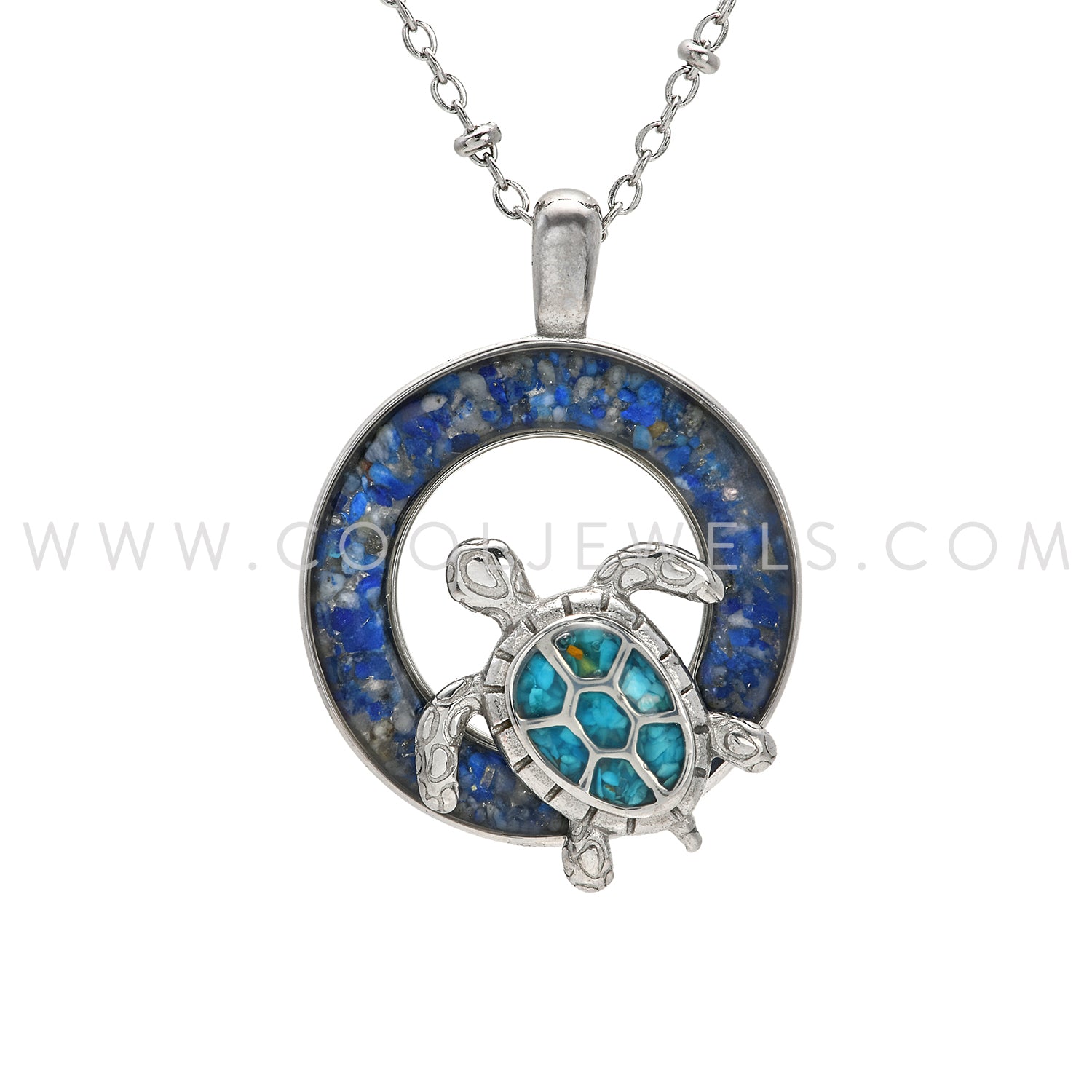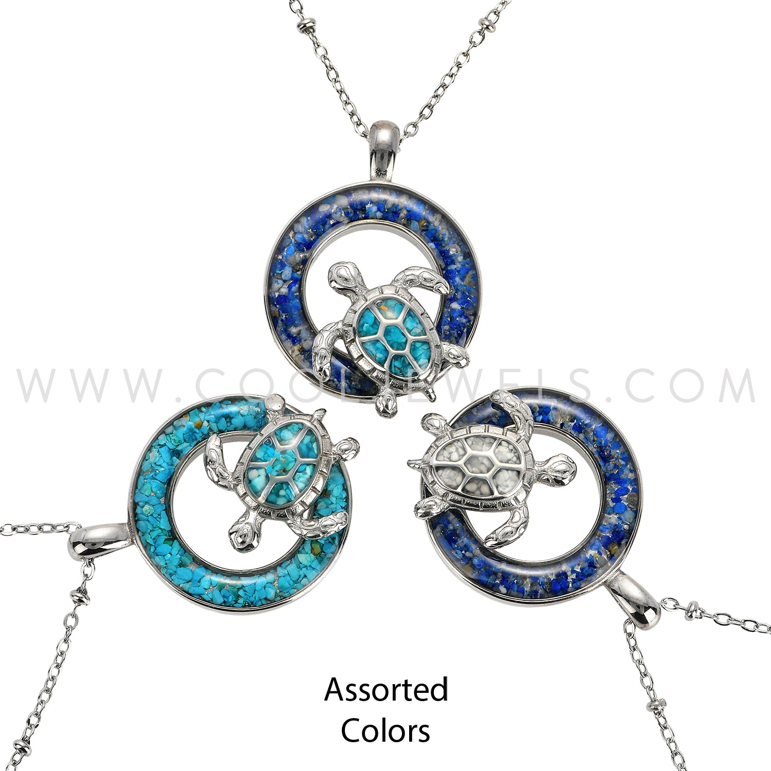 STAINLESS STEEL CHAIN NECKLACE WITH CRUSHED STONE STAINLESS STEEL ROUND PENDANT WITH TURTLE CARDED - ASSORTED