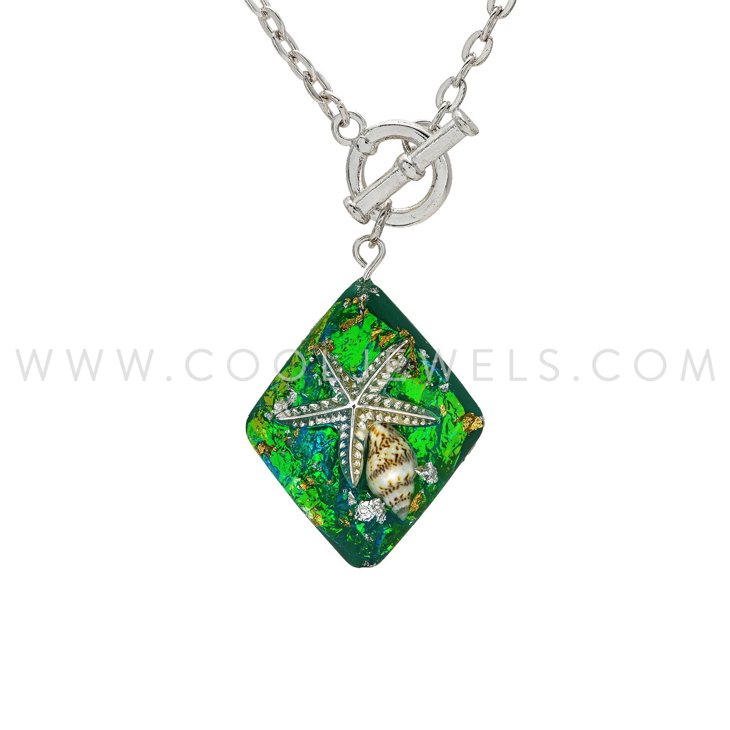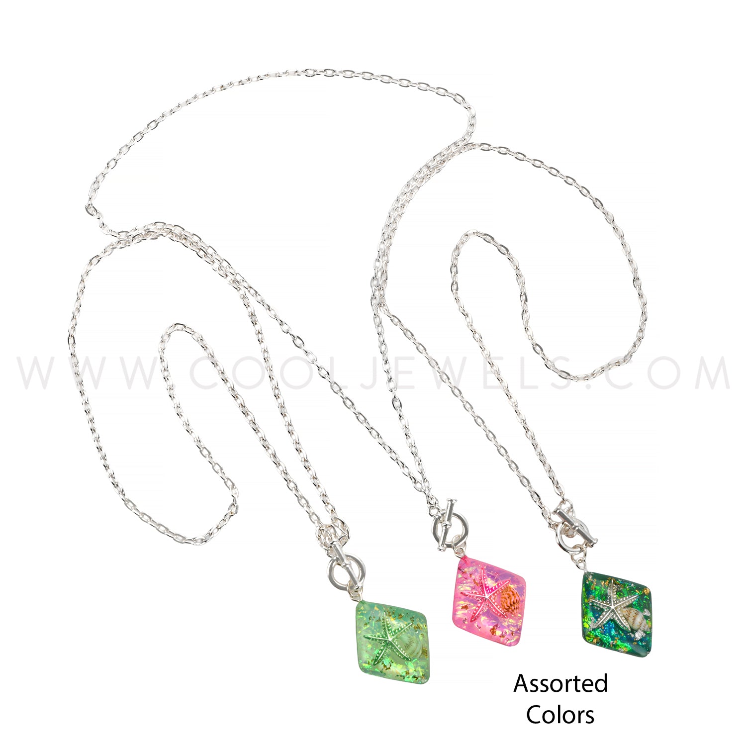 LINK CHAIN NECKLACE WITH DIAMOND SHAPED IRIDESCENT STARFISH PENDANT WITH T-BAR ASSOTED - CARDED