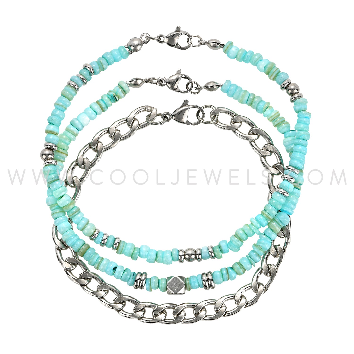 (SET OF 3) CHAIN AND STONE BEADED BRACELETS