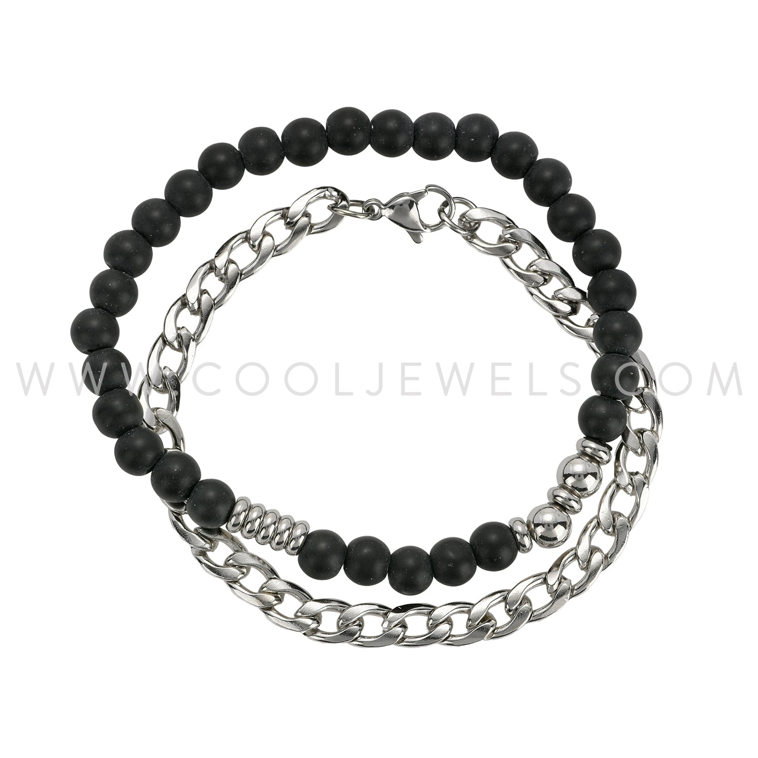 (SET OF 2) CHAIN AND STONE BEADED BRACELETS