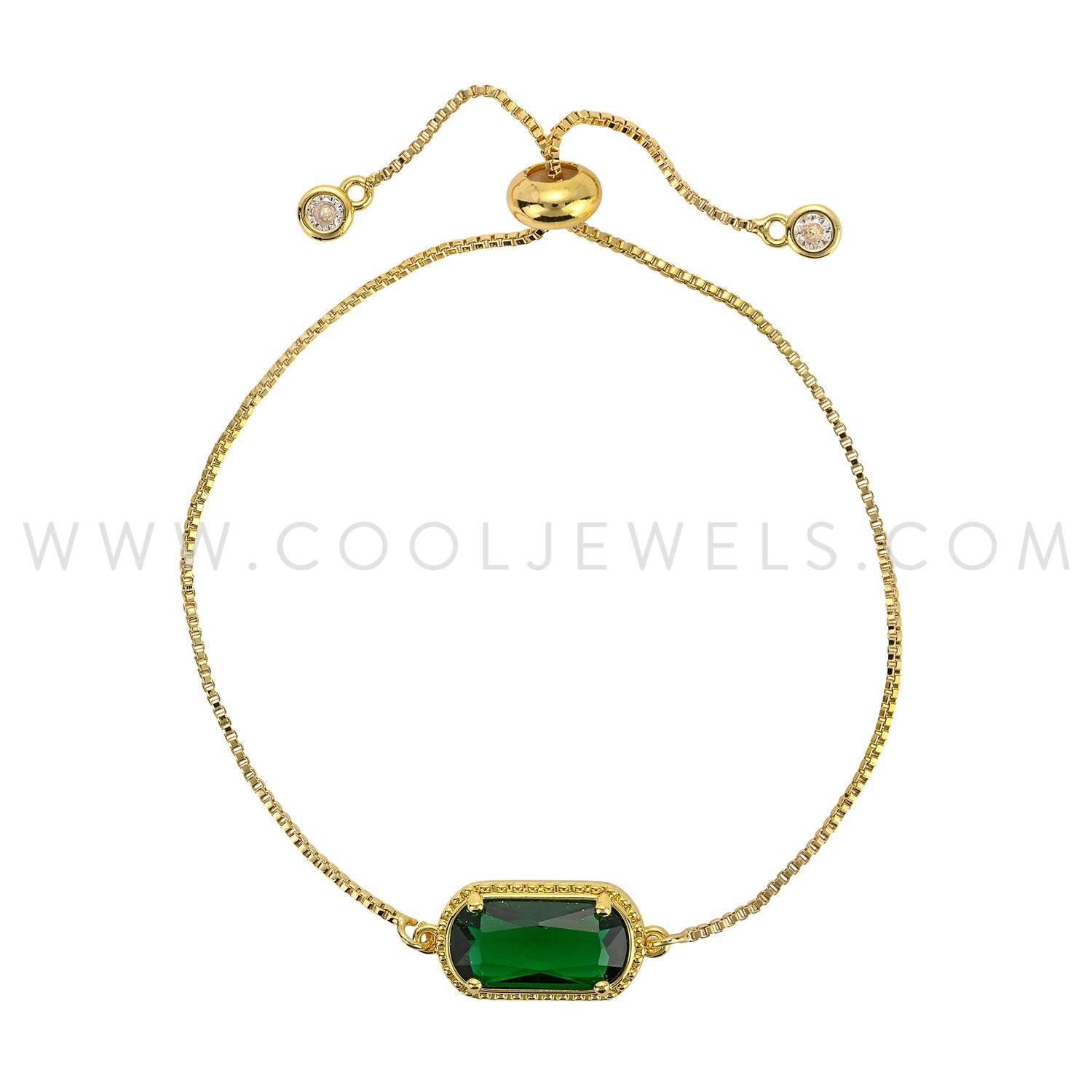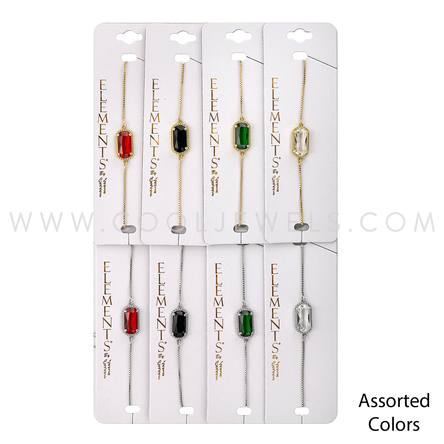 SLIDER CHAIN BRACELET WITH RECTANGULAR RHINESTONE PENDANT ASSORTED - CARDED