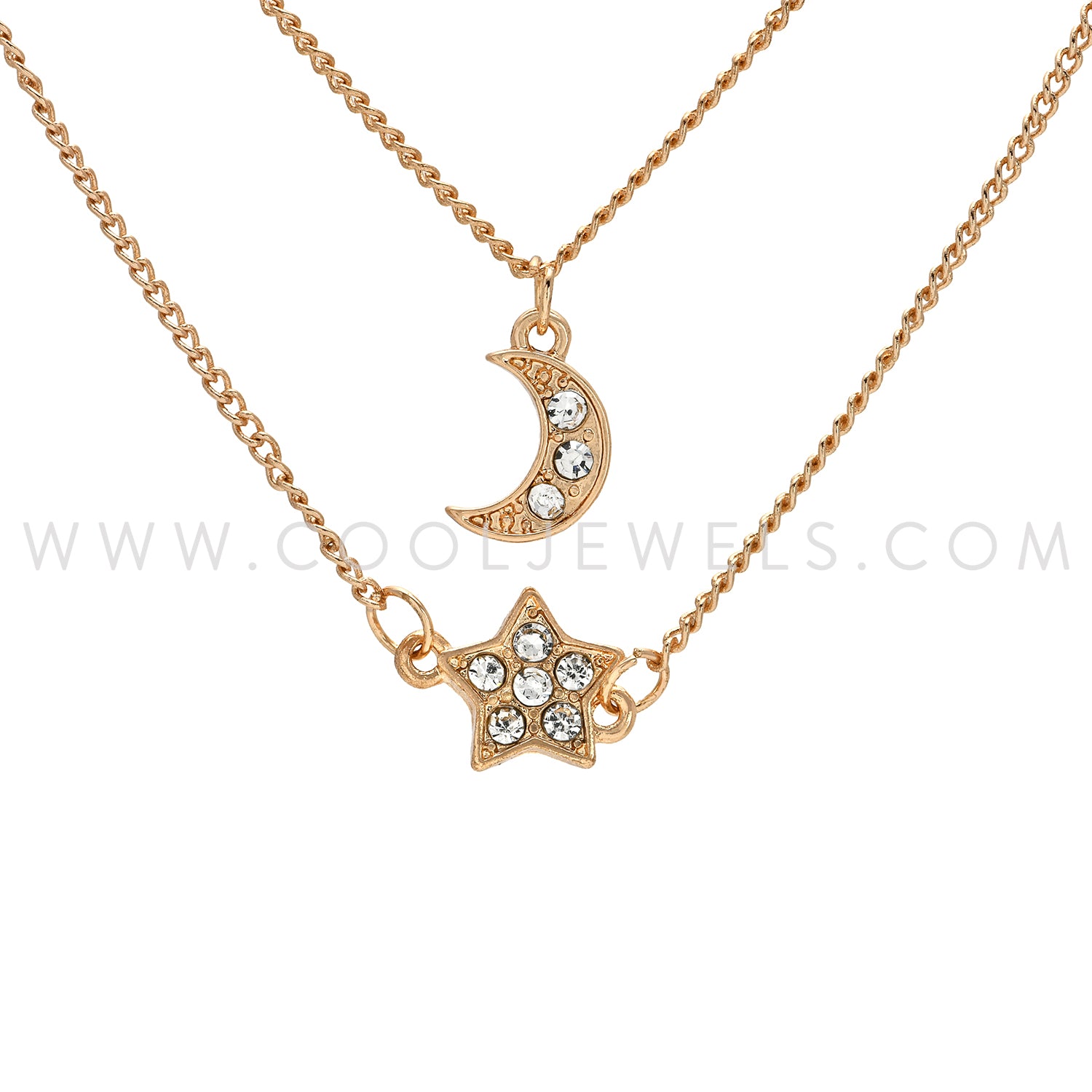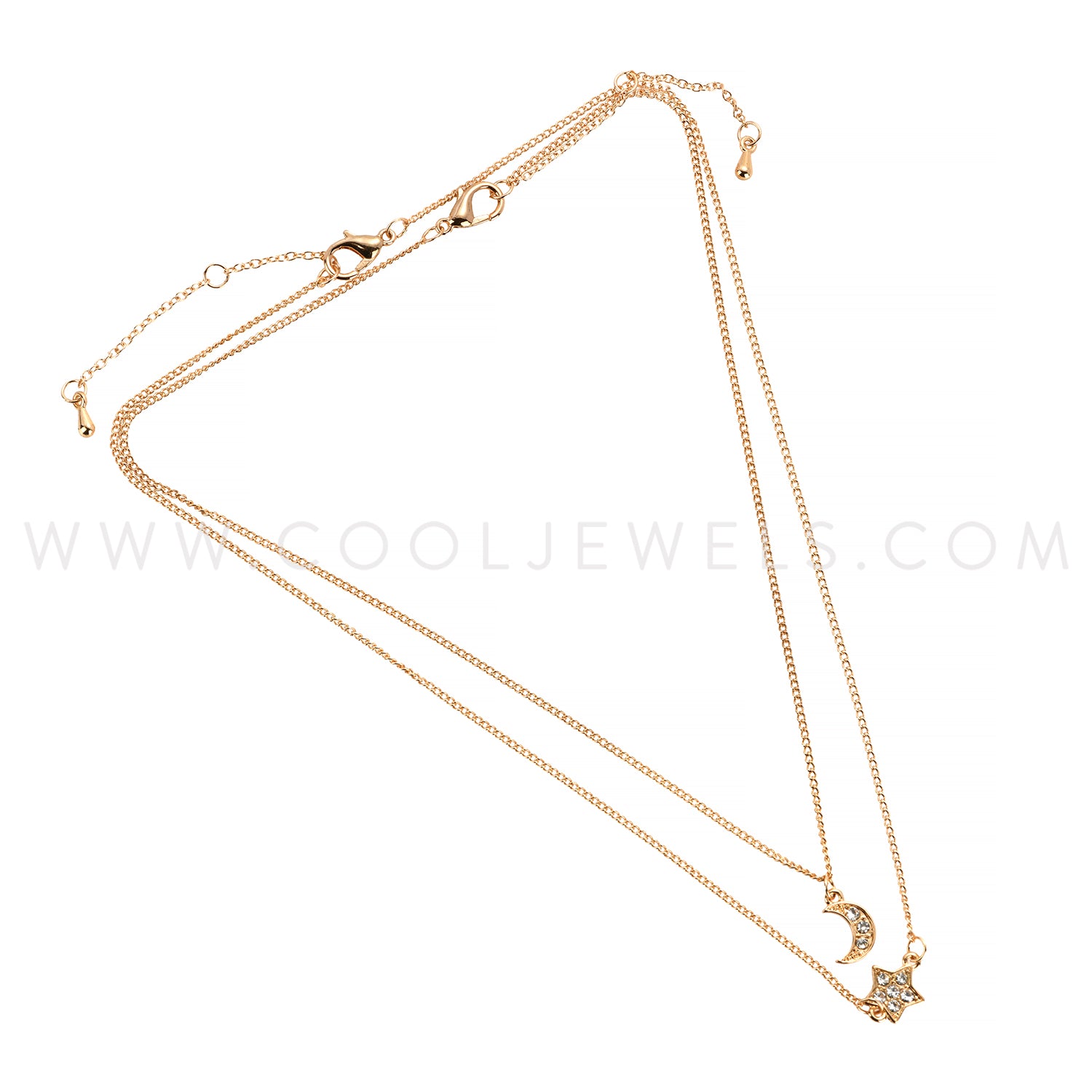 CHAIN NECKLACE WITH RHINESTONE MOON & STAR PENDANTS ASSORTED - CARDED