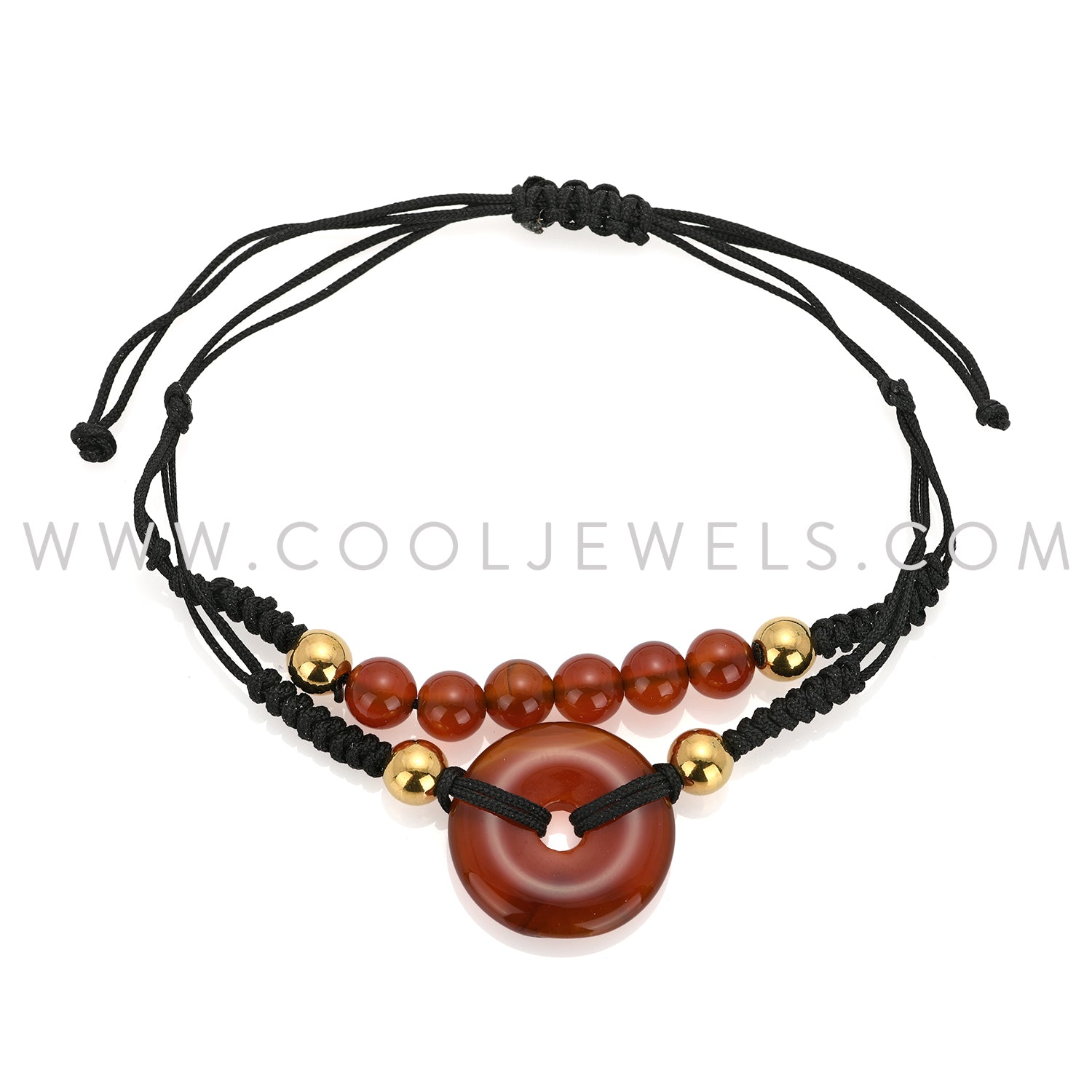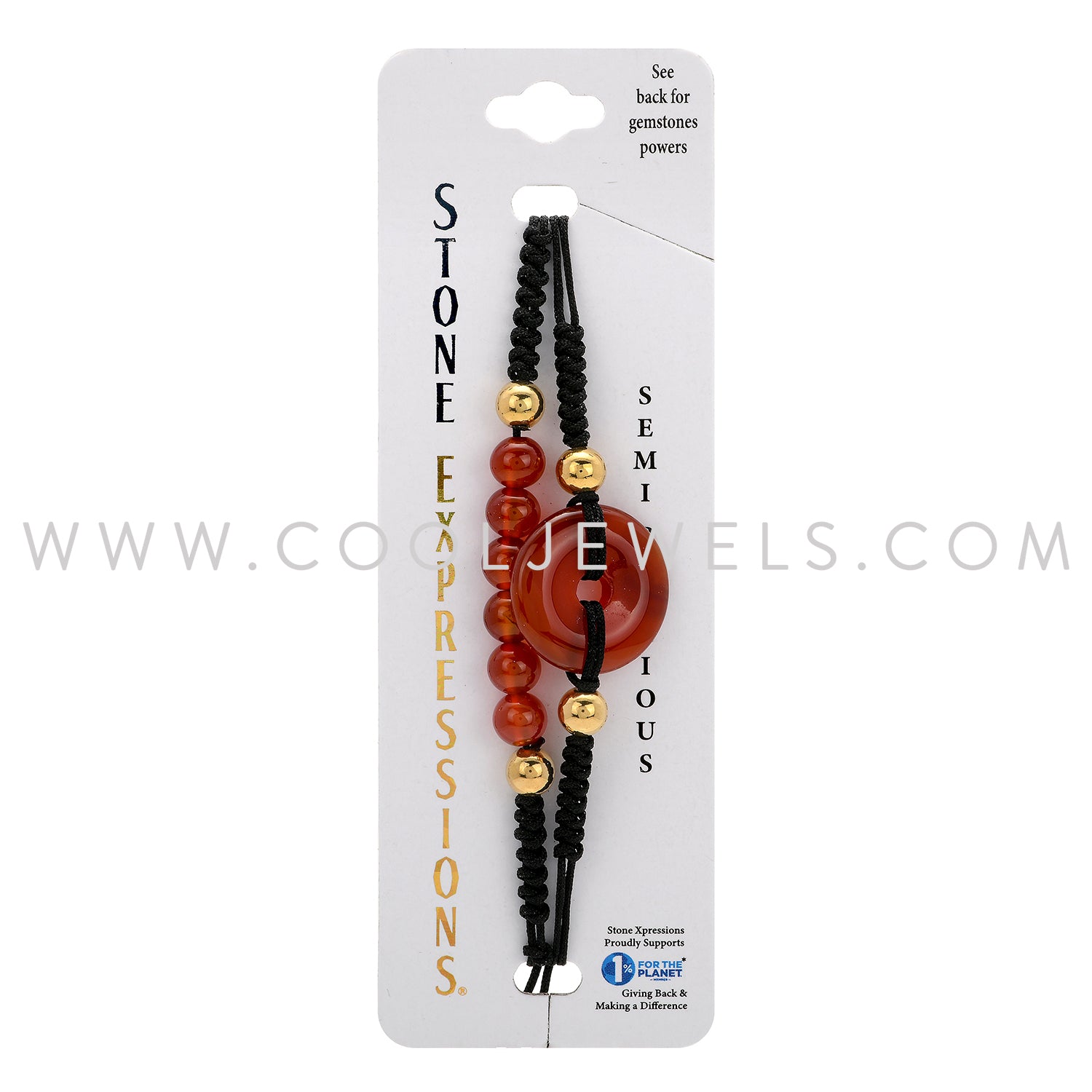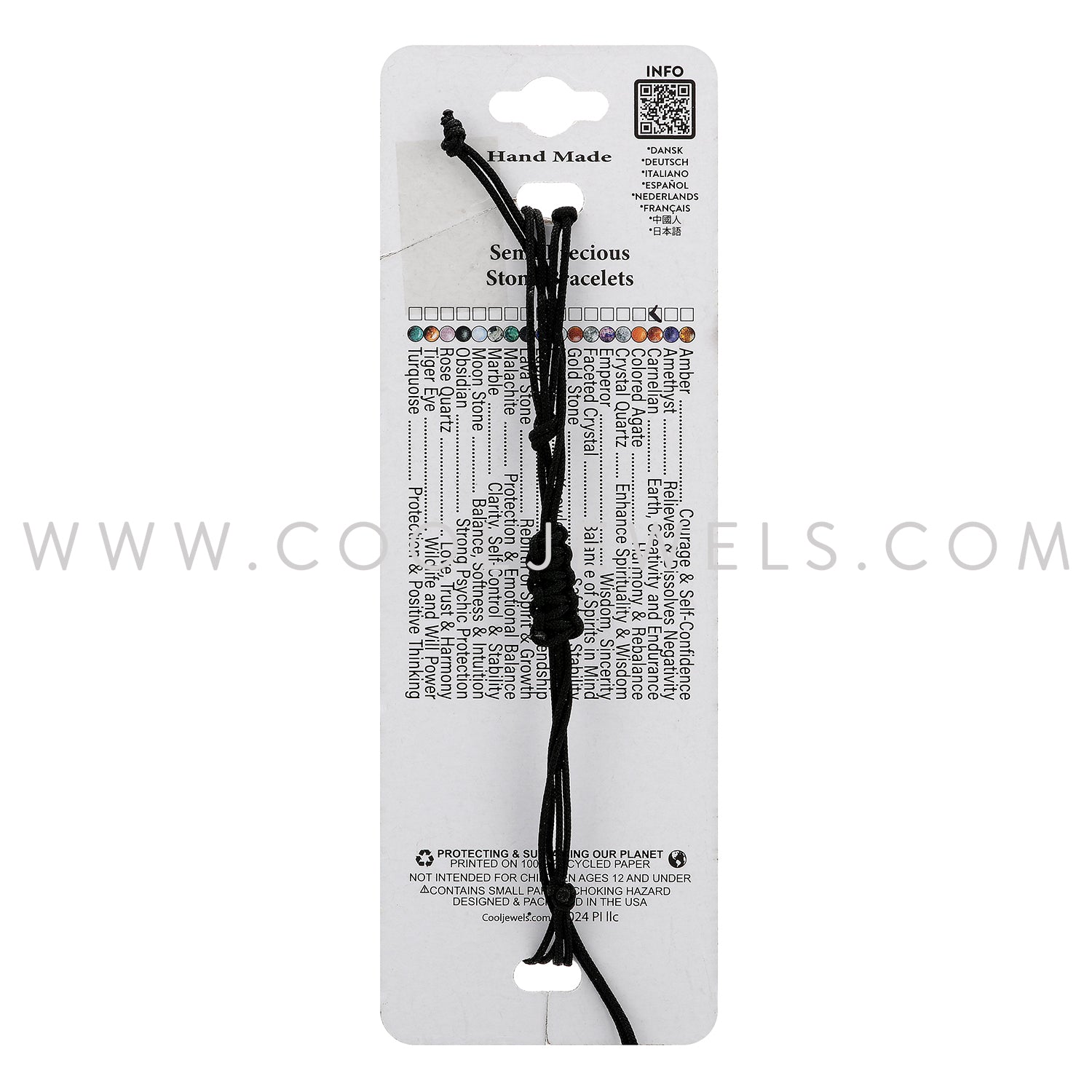 (SET OF 2) BLACK SLIDER CORD BRACELET WITH STONE DONUT & STONE BEADS ASSORTED - CARDED