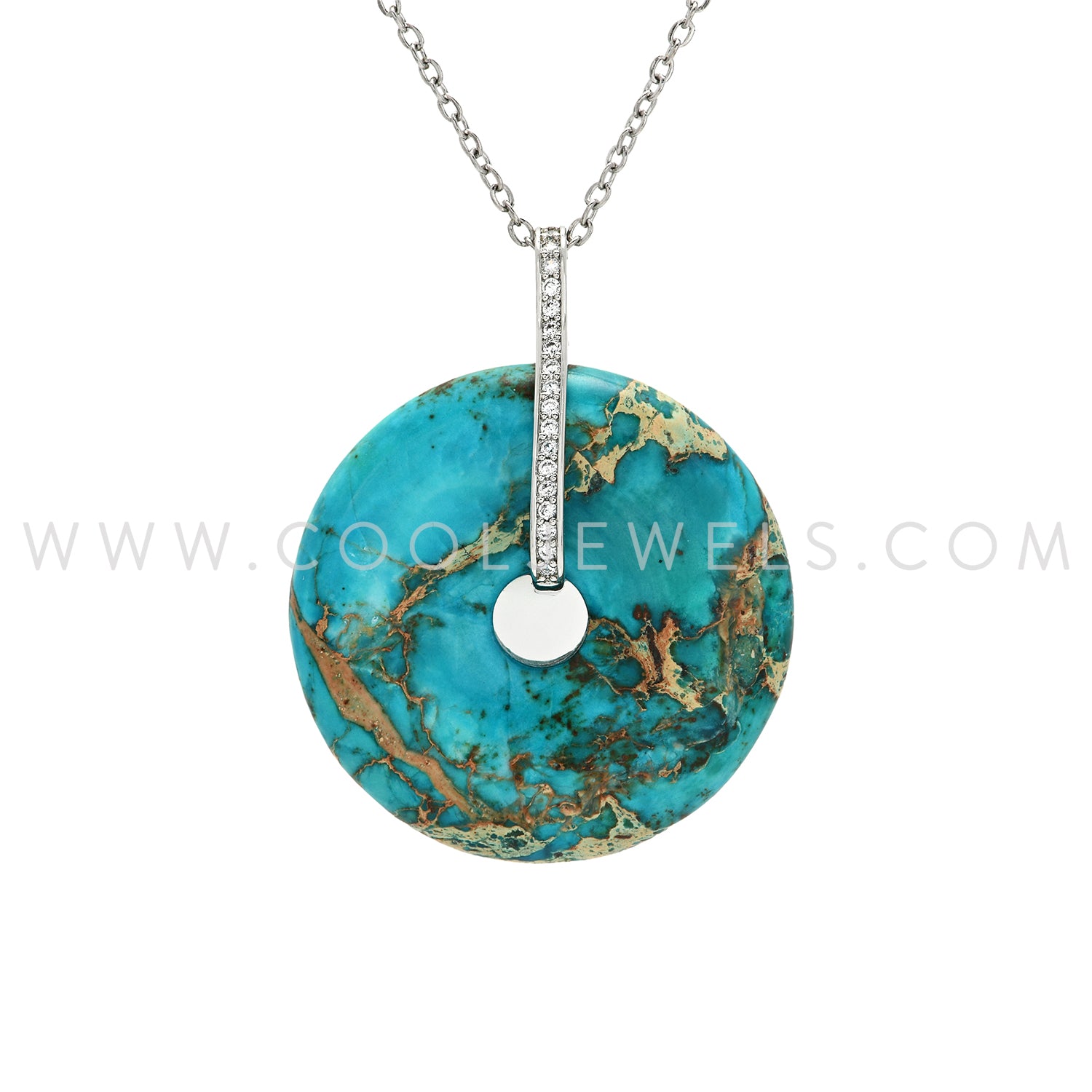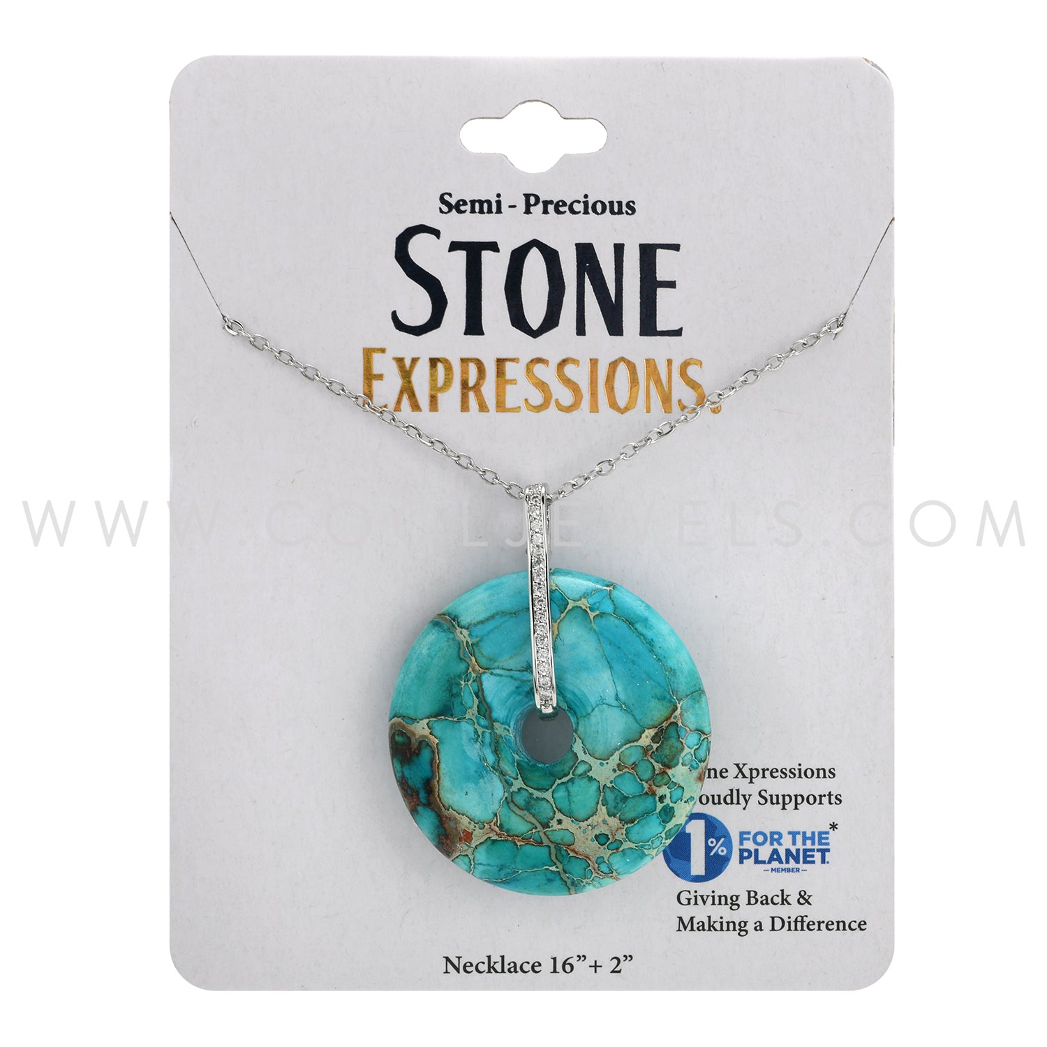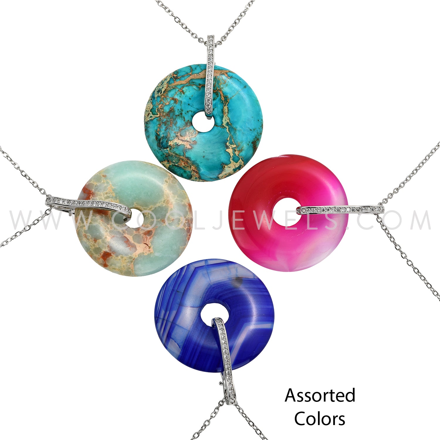 LINK CHAIN NECKLACE WITH STONE DONUT PENDANT ASSORTED - CARDED